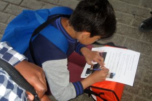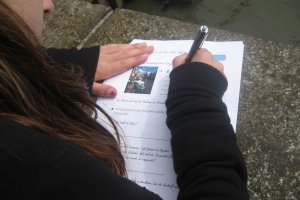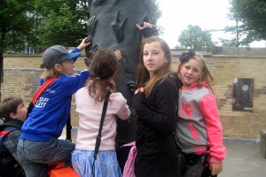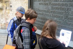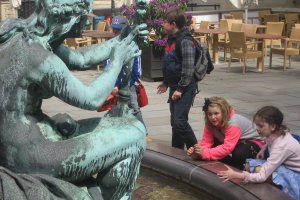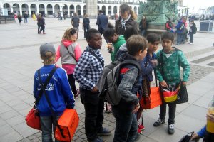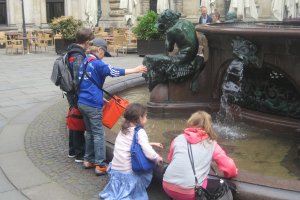 Von dort schwirrten wir in 4 Gruppen mit jeweils 5 Kindern und einem Erwachsenen im Abstand von 10 Minuten aus und versuchten in den nächsten 2 Stunden, unsere Rallye-Bögen mit den unterschiedlichsten Aufgaben und Fragen zu Hamburger Menschen, Figuren, Gebäuden und Gewässern mit möglichst richtigen Antworten und Infos auszufüllen.