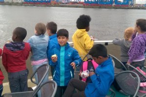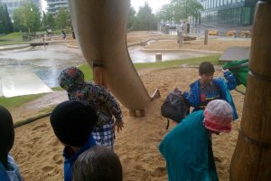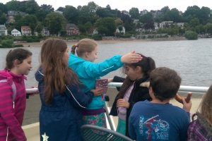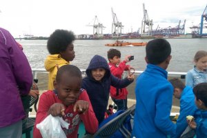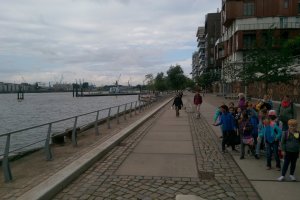 In der HafencityWir die 3b und 3a waren Mittwoch in der Hafencity. Wir sind mit dem Boot, einer Fähre, gefahren. Als wir endlich angekommen sind, hat Mülli uns gesagt : „ Bitte geht nicht ins Wasser rein!“ Dann hat Hegi gesagt: „Okay, dann könnt ihr spielen gehen.“ Der Spielplatz war groß. Wir konnten in die Gebüsche reinklettern, in Häusern spielen, schaukeln, auf einem Trampolin springen und auf Klettergerüsten toben. Plötzlich hat es geregnet.