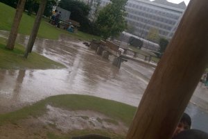 Wir haben noch versucht uns unterzustellen, aber der Regen war zu stark. Wir haben geschrien und gequietscht und sind plitschnass zur neuen U-Bahn geflüchtet. Dort haben wir uns vor den Fahrkartenautomaten trockene Kleidung angezogen. Aber wir sind alle glücklich nach Hause in die Schule gefahren und keiner hat sich beschwert. Es war sehr schön und am nächsten Tag waren alle bis auf Marschi wieder gesund und munter in der Schule!