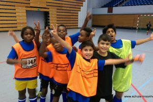 In unserer Gruppe trafen wir auf die Schulen aus Kirchdorf, Ochsenwerder, Eppendorf und den Edwin-Scharff-Ring. Das erste Spiel hatten wir gleich gegen unseren stärksten Gegner aus Kirchdorf. Nach 1,5 Stunden Bus- und Bahnfahrt kamen wir nicht richtig in Schwung und das Spiel endete 1:1 -unentschieden. Da sowohl Kirchdorf als auch wir jedes weitere Spiel gewannen, war klar, dass wir im letzten Spiel so viele Tore wie möglich schießen mussten, um im Torverhältnis besser als Kirchdorf zu sein und somit den wichtigen ersten Platz zum Einzug in die Finalrunde im Februar zu erreichen. Also haben wir gestürmt wie die Weltmeister und ein sensationelles 6:0 (in 10 Minuten!!!) vorgelegt! Das konnte Kirchdorf nicht aufholen und der erste Platz ging damit wirklich sehr verdient an uns!