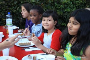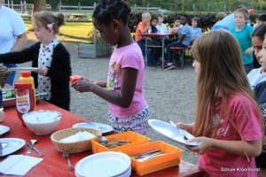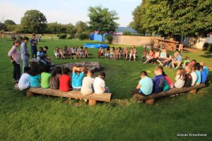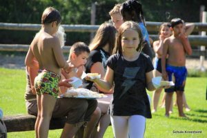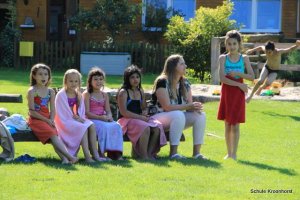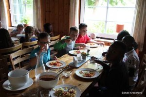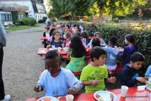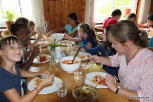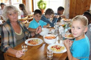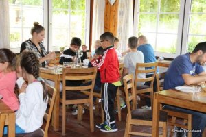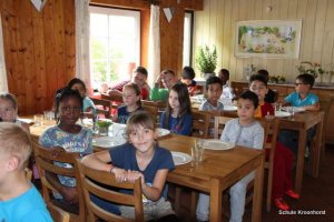 Das Abendessen liegt hinter uns. Nach dem ausgiebigen Badeerlebnis waren wir sehr hungrig. Nun dürfen wir noch draußen spielen. Einige Kinder sind mit Frau Marschall und Frau Schust sind auf Ortserkundung gegangen. Alle sind sehr glücklich.