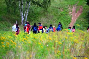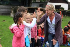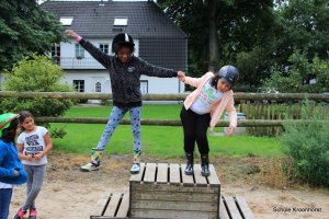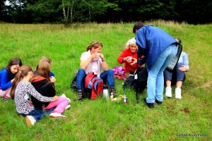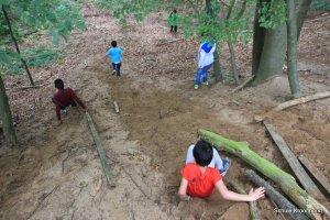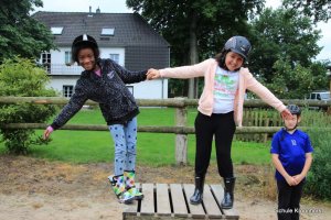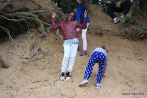 Am Nachmittag ging's zu Fuß zur Kieskuhle. Die Kieskuhle ist ca 3 km vom Hof entfernt und ein Natur-Abenteuerspielplatz. Das Gelände war sehr hügelig und es hat Spaß gemacht, auf die Hügel zu klettern und wieder herunterzurutschen.