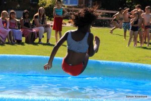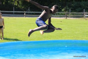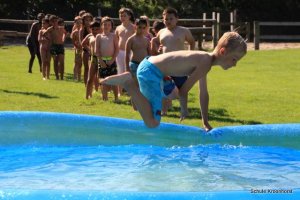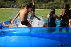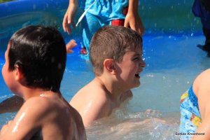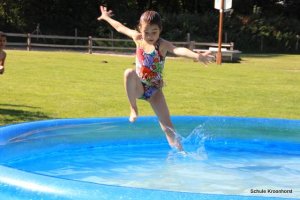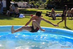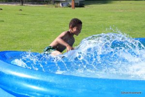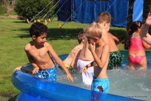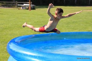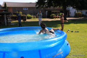 Wir sind gut angekommen. Die Fahrt war toll. Die Zimmer sind bezogen, das Mittagessen sehr lecker und heute Nachmittag wurde das Planschbecken aufgebaut. Wir haben hier viel Spaß.