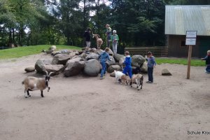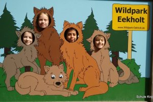 Heute waren wir den ganzen Tag im Wildpark Eekholdt. Obwohl der Fußmarsch von insgesamt ca. 12 km ganz schön anstrengend war, haben wir heute viel erlebt. Es war besonders interessant, viel über die verschieden Tierarten im Park zu erleben. Im Park leben Waschbären, Steinmarder, Otter, Seeadler, Rotwild, Damwild, Wölfe und viele andere Tiere.