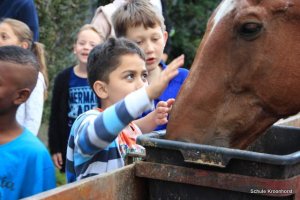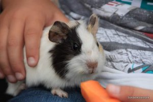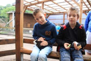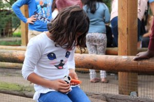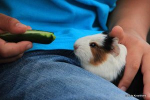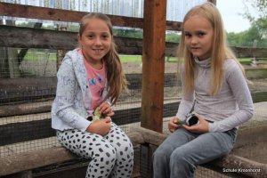 Heute Morgen ist wieder das Füttern angesagt. Besonderen Spaß haben wir beim Füttern der kleinen Meerschweinchen.