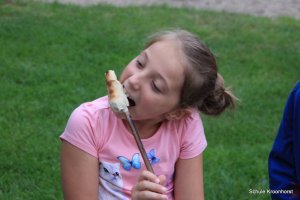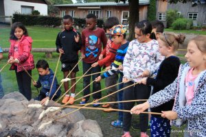 Nach dem Abendessen haben wir uns am Lagerfeuer ein Stockbrot gebacken. Das hat wieder viel Spaß gemacht und war super lecker. Aber nun ist es Zeit, sich für den nächsten Tag auszuruhen. Von 21.30 bis 8.00 Uhr ist Nachtruhe.