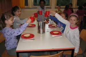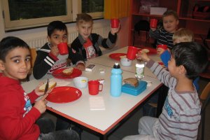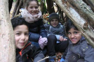 Aber auch das Waldgelände ist riesig und lädt zum Bauen von Häusern aus Ästen und Zweigen ein. Es gibt viele Spielgeräte draußen und zur Stärkung zwischendurch drei Mal was zu essen.