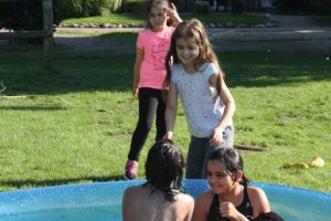Am Montag sind wir mit dem Elitebus zum Klinthof gefahren. Wir haben gespielt und dann sind wir in den Pool gegangen. Dann haben wir Mittag gegessen. Anschließend sind wir wieder raus gegangen und haben weiter gespielt. Einige Kinder und Lehrerinnen sind spazieren gegangen. Dann sind wir schlafen gegangen.