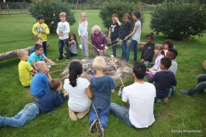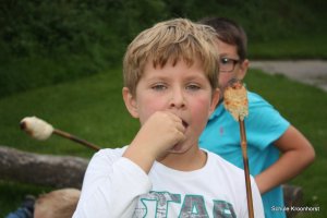 Am Dienstagmorgen haben wir eine Tierfütterung gemacht. Nach der Tierfütterung haben wir gefrühstückt. Nach dem Frühstück haben wir Bogenschießen und Reiten gemacht. Das konnte sich jeder aussuchen. Dann haben wir gespielt. Nach dem Spielen gab es Mittagessen. Nach dem Mittagessen sind wir zur Kiesgrube gewandert. Da war das richtig toll! Dann sind wir zurück gegangen und haben auf dem Klinthof gespielt. Nach dem Spielen und dem Abendessen haben wir am Lagerfeuer Stockbrot gemacht.