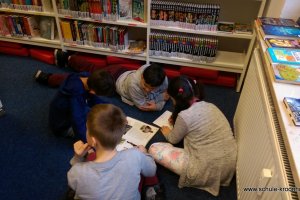 Am 6.11.2015 ist die Klasse 4a in die Bücherhalle gegangen. Frau Hegener und Frau Michels haben uns begleitet. Wir haben sowas wie eine Schnitzeljagd gemacht. Wir haben einen Zettel bekommen und da standen Fragen drauf. Dann mussten wir sie beantworten. Wir konnten die Fragen nur beantworten, wenn wir die Informationen in speziellen Büchern, die zu unserem Thema passten, gefunden haben. Der uns das erklärt hat, hieß Jens. Wir haben an diesen Tag sehr viel darüber gelernt, was Schachbücher sind und was Geschichten sind und wie wir Informationen finden.Das war unser Ausflug in die Bücherhalle!