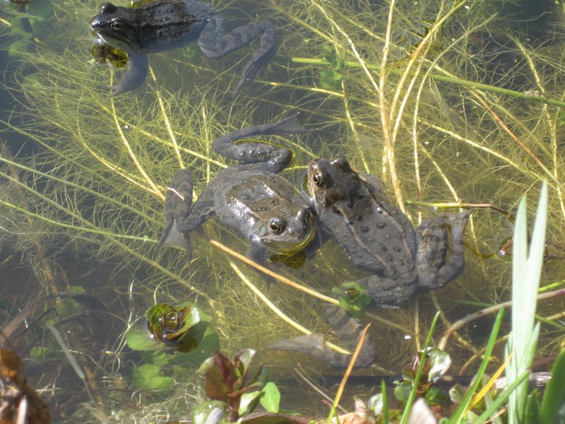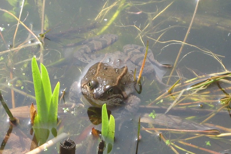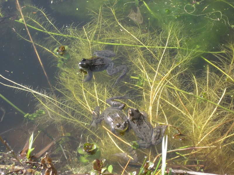 Heute haben wir 21 Frösche in den Teich gesetzt.