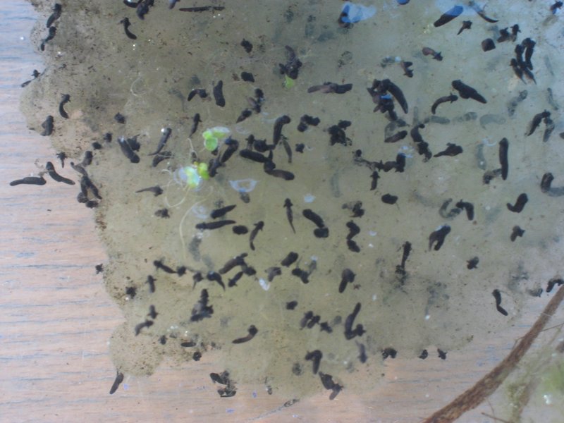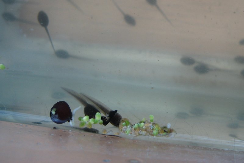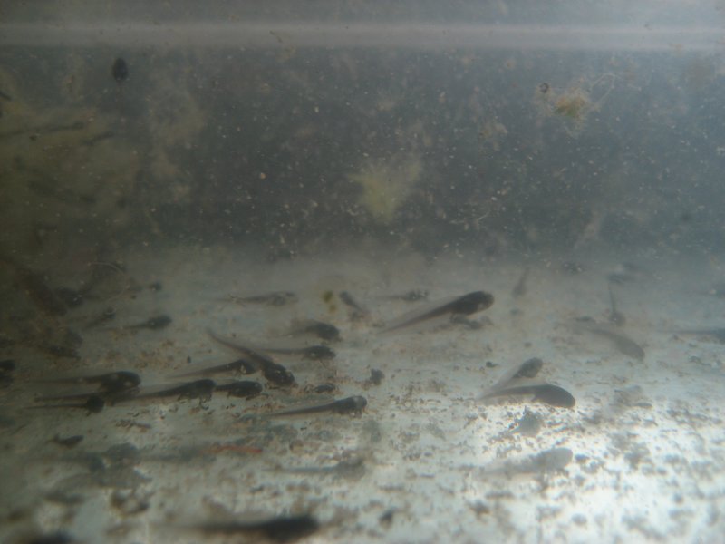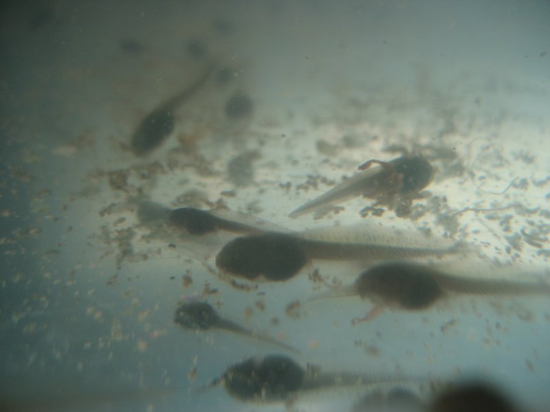 Unsere Kaulquappen entwickeln sich prächtig. Einige haben schon Hinterbeine.