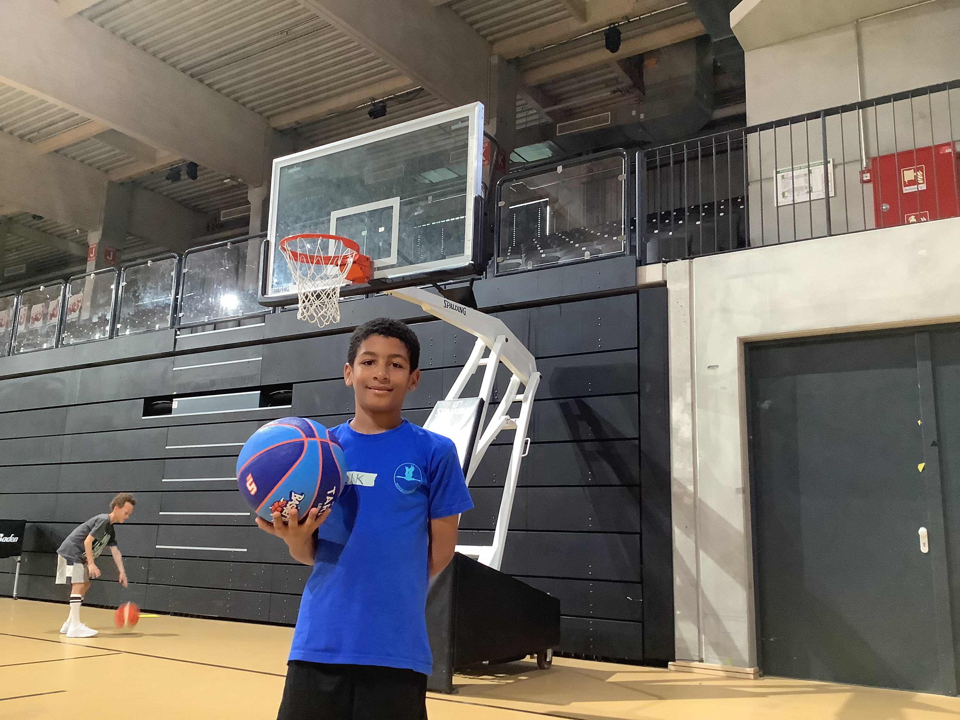 Hier meisterten die Schülerinnen und Schüler verschiedene Aufgaben: dribbeln auf diverse Weisen, passen und freilaufen sowie werfen auf den Korb von nah wie fern. Nach einer kurzen Pause ging es mit einem Turnier weiter.
