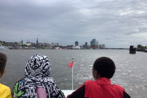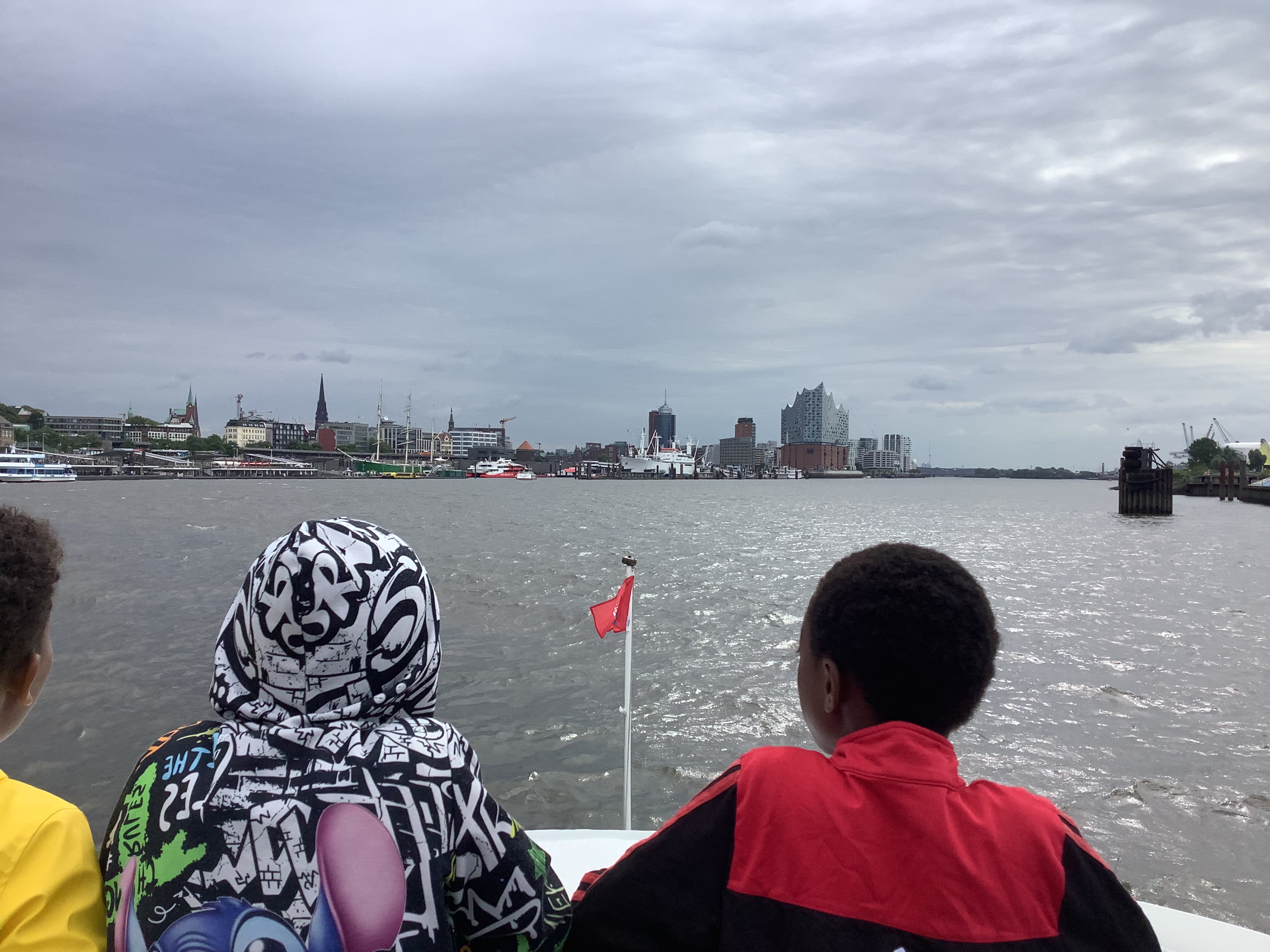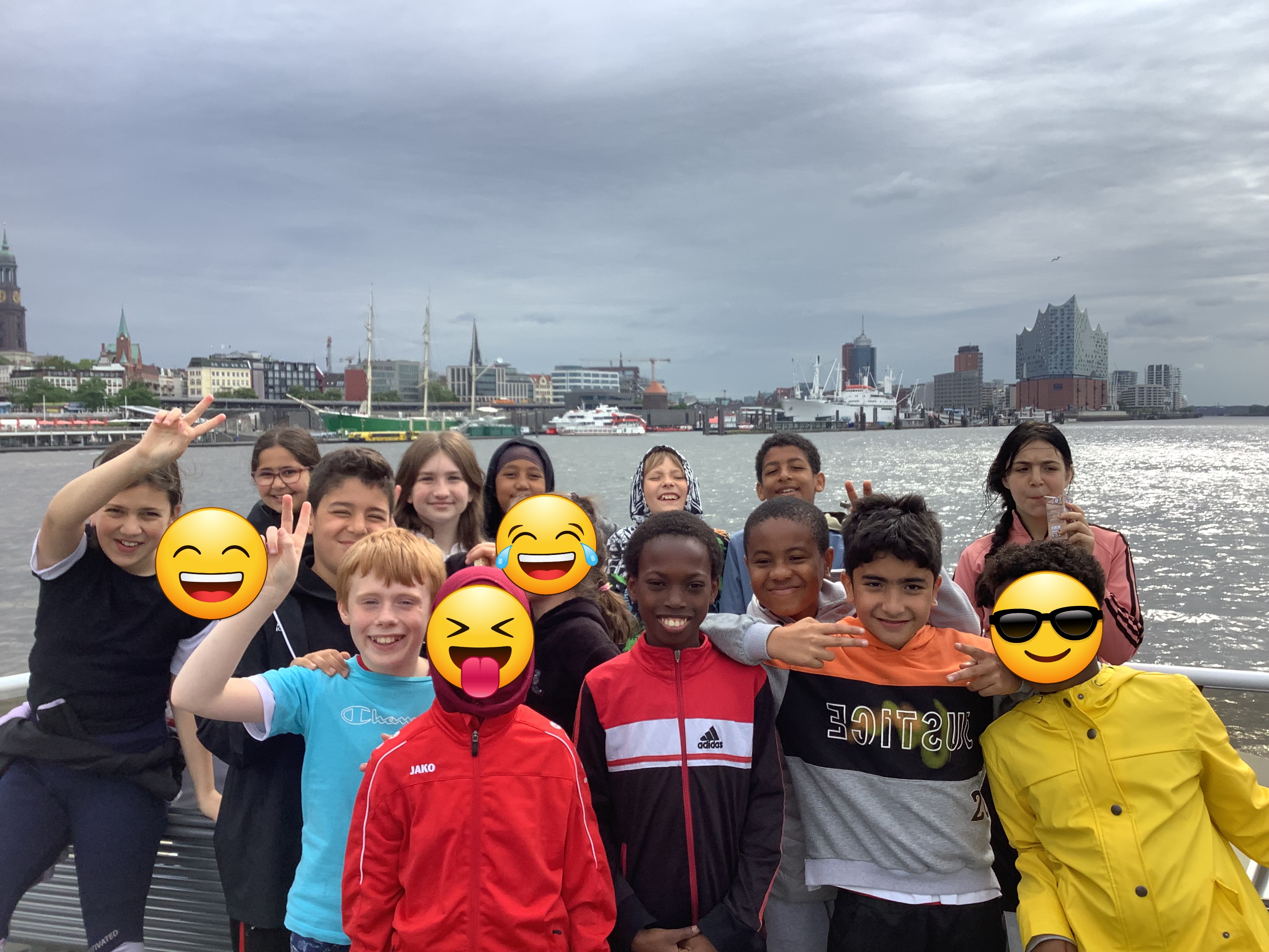 Am Morgen machte sich die 4b mit Frau Brümmer und Herrn Röseler auf den Weg. Die Anreise war schon ein Abenteuer: Erst mit der Bahn nach Altona, dann zu Fuß über den Altonaer Balkon zum Dockland, von dort mit der Fähre zu den Landungsbrücken und schließlich mit dem Bus zum Spielort.