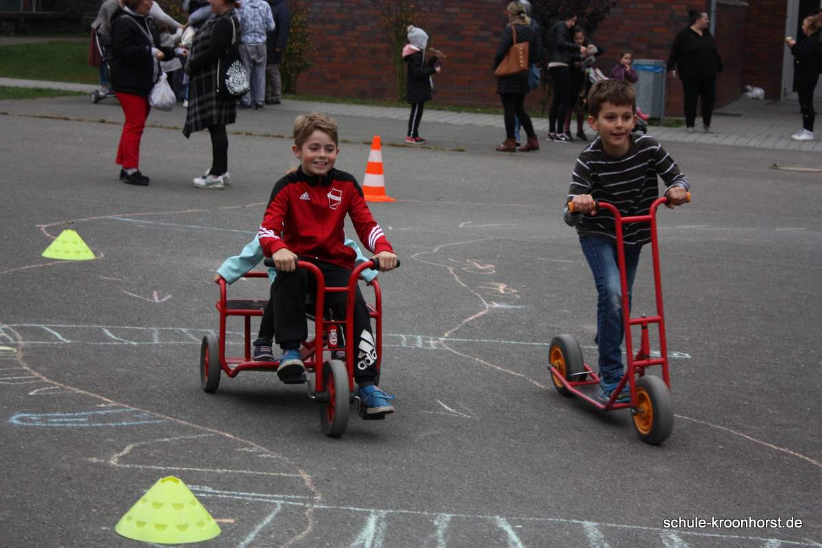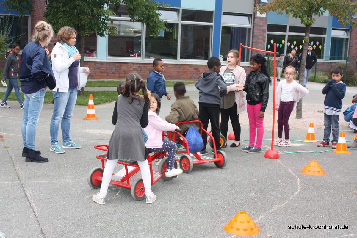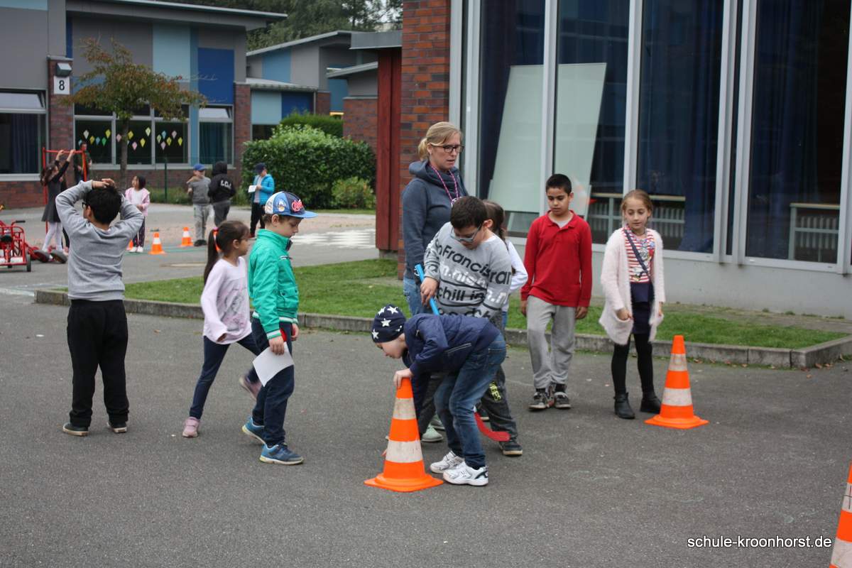 Am 28. September war in der Schule Kroonhorst wieder viel los!!! Ob Fahrzeug-Parcour, Basketball, Torwandschießen, Dosen werfen, an den vielen Spielstationen war für jeden etwas dabei. Wer alle Stationen durchgespielt hatte, wurde mit einer kleinen Überraschung belohnt.