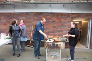 Auch für den kleinen Hunger wurde gesorgt. Wer etwas Herzhaftes wollte, konnte sich ein vom Schulleiter persönlich ein Würstchen grillen lassen. Wer gern Süßes wollte, war am Kuchenstand der vierten Klassen bestens aufgehoben. Grillwürstchen, Kuchen und Torten, Kaffee und Säfte - alles fand reißenden Absatz.