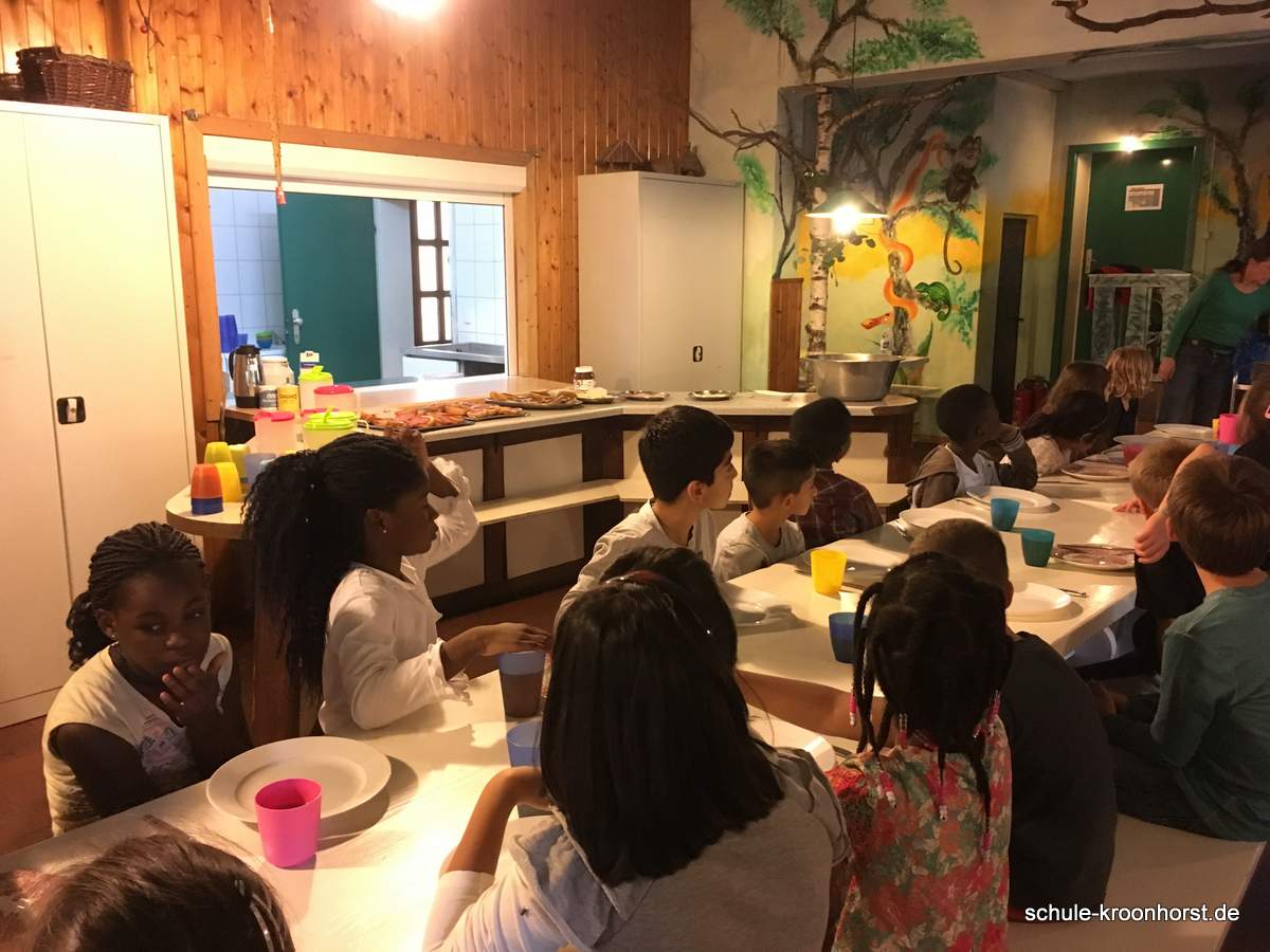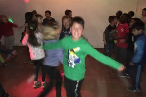 Wir haben Disco gemacht. Die Klassen 3a, 3b und 3c waren mit dabei und die Lehrer. Musik haben Robert und Sinja gemacht Lichter waren da auch.