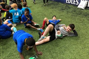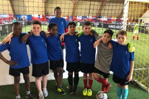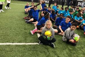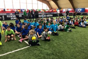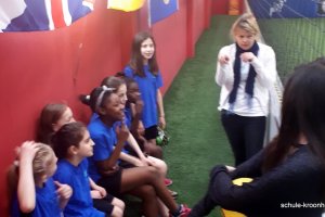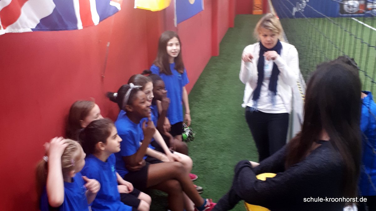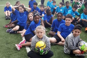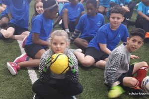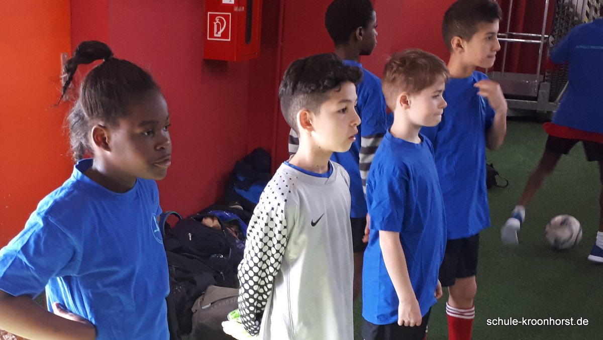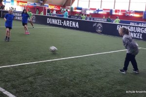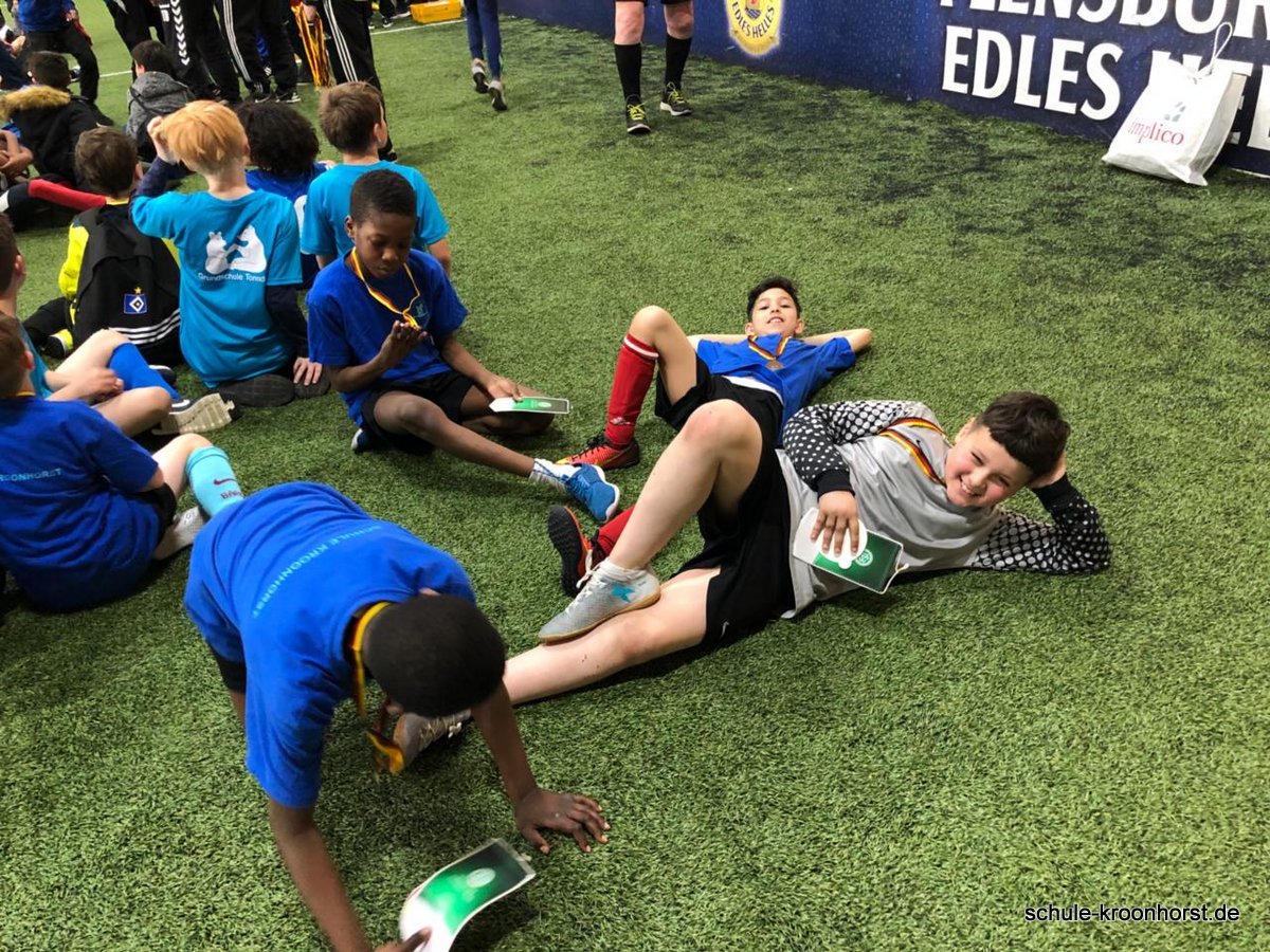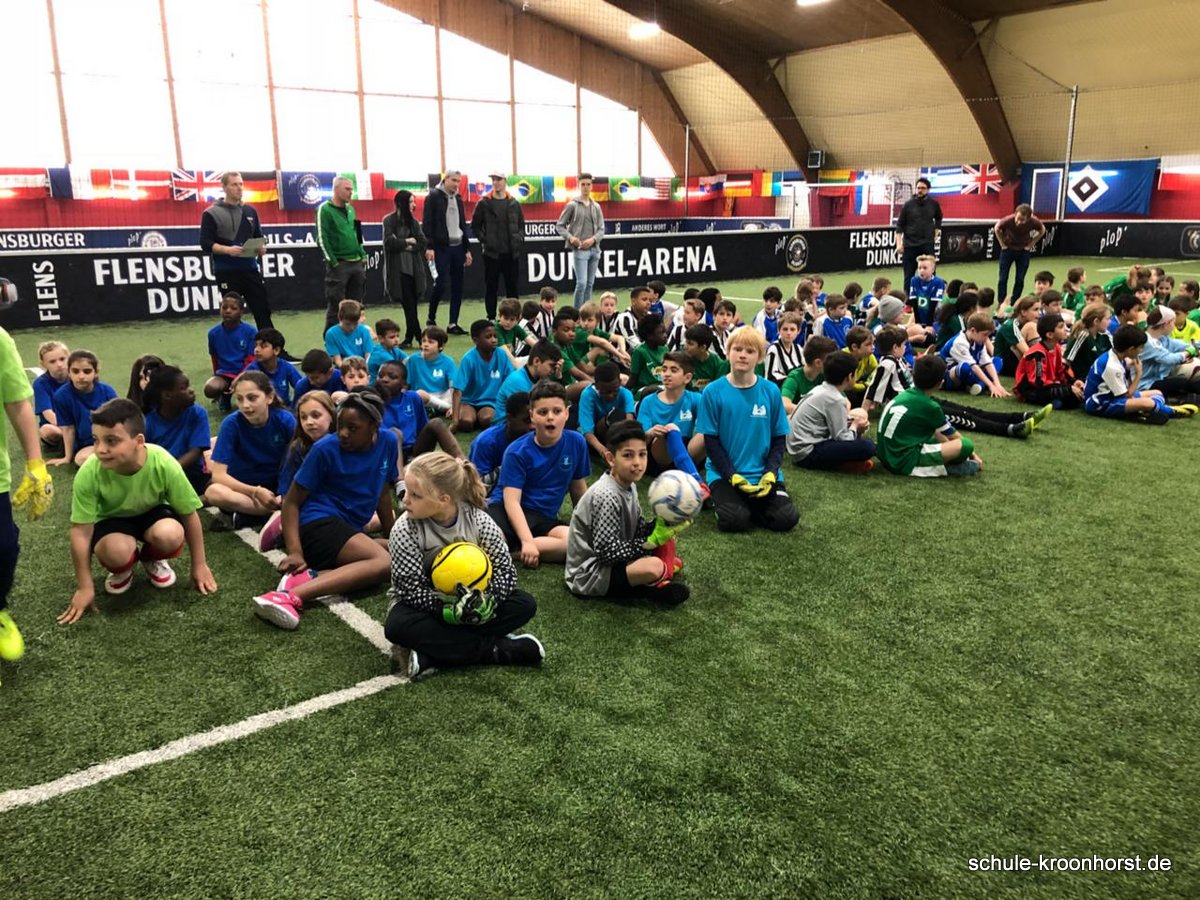 Mit insgesamt 16 erwartungsvollen Fußballerinnen und Fußballern machte sich unsere Auswahl der dritten und vierten Klasse auf den Weg in die Soccerhalle Kieler Straße. Dort erwarteten uns etwa 200 Schülerinnen und Schüler, die wie wir mit viel Freude auf den Turniertag hinfieberten. Auf dem modernen Untergrund, einem Kunstrasen, spielten unsere Teams jeweils in einer Gruppe gegen andere Grundschulen aus ganz Hamburg.