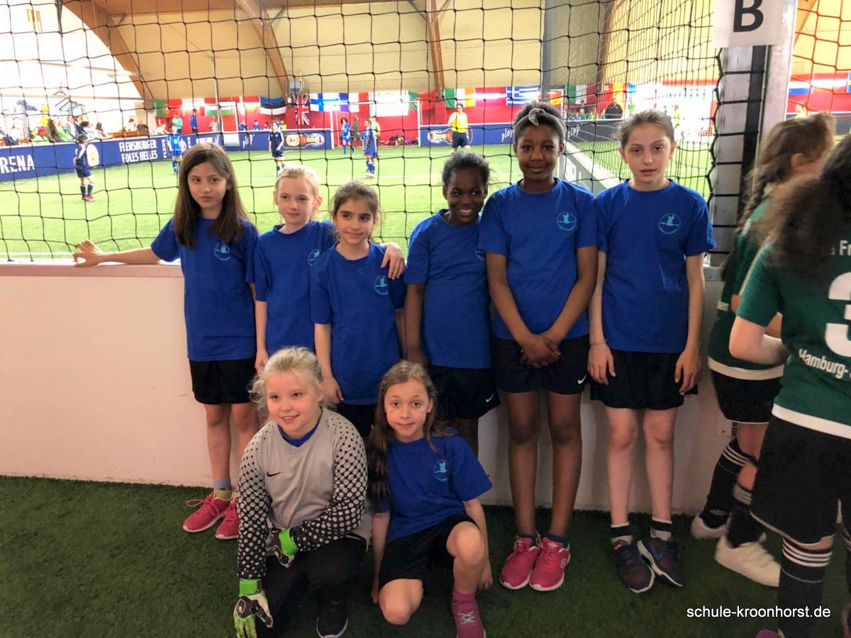 Auch die Mädchen forderten ihre Gegnerinnen in jedem Spiel. In ihren sechs Spielen konnten die Mädchen nur zweimal knapp besiegt werden. Drei Unentschieden mit der klaren Chance, diese Spiele verdientermaßen zu gewinnen, bestätigten das ausgeglichene Teilnehmerfeld. Das gewonnene Spiel war begeisternd und von großem Jubel der Mädchen auf dem Feld und der zuschauenden Jungs begleitet. Der Abschluss mit dem fünften Platz war erfreulich und Motivation für die Mädchen, gerne und mehr Fußball zu spielen.