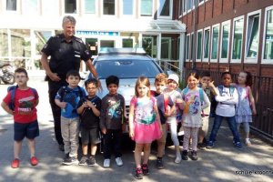 “Wie fängst du einen Dieb?“ und “Woher weißt du ob jemand ein Dieb ist“, waren einige von vielen Fragen mit denen die Kinder den Polizisten durchlöcherten. Als Highlight durfte sich jeder Schüler selbst einmal als “Polizist“ fühlen und in den Peterwagen mit Sirene setzen.