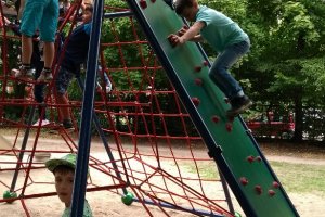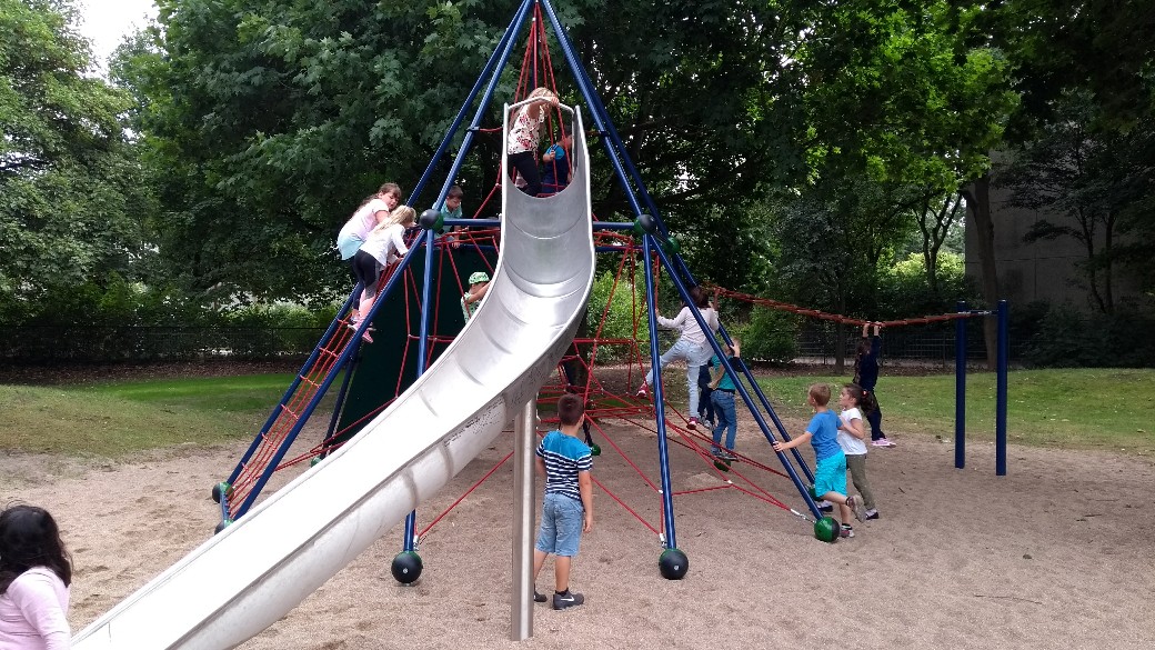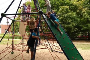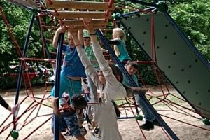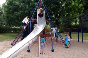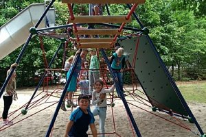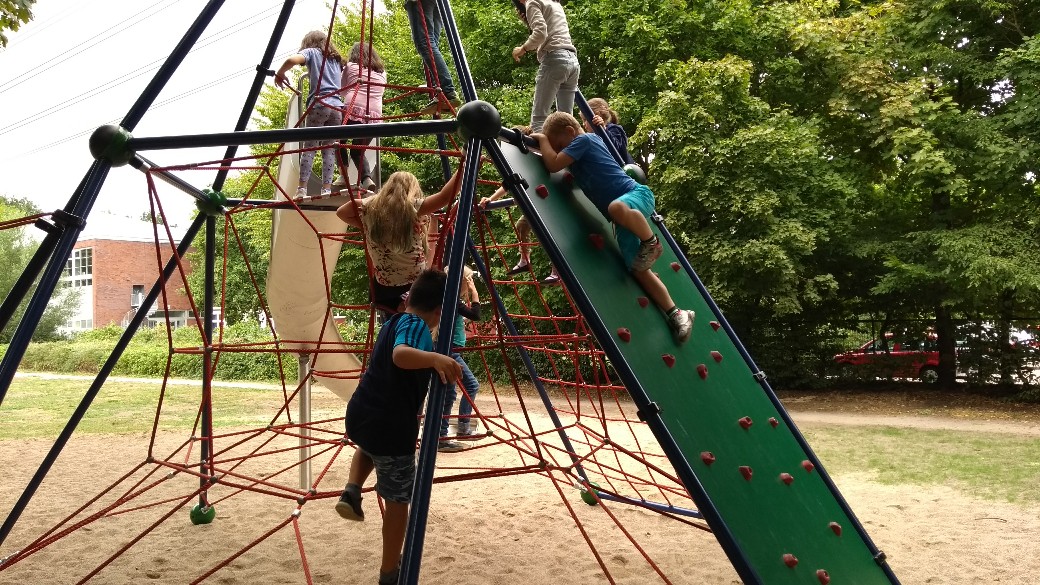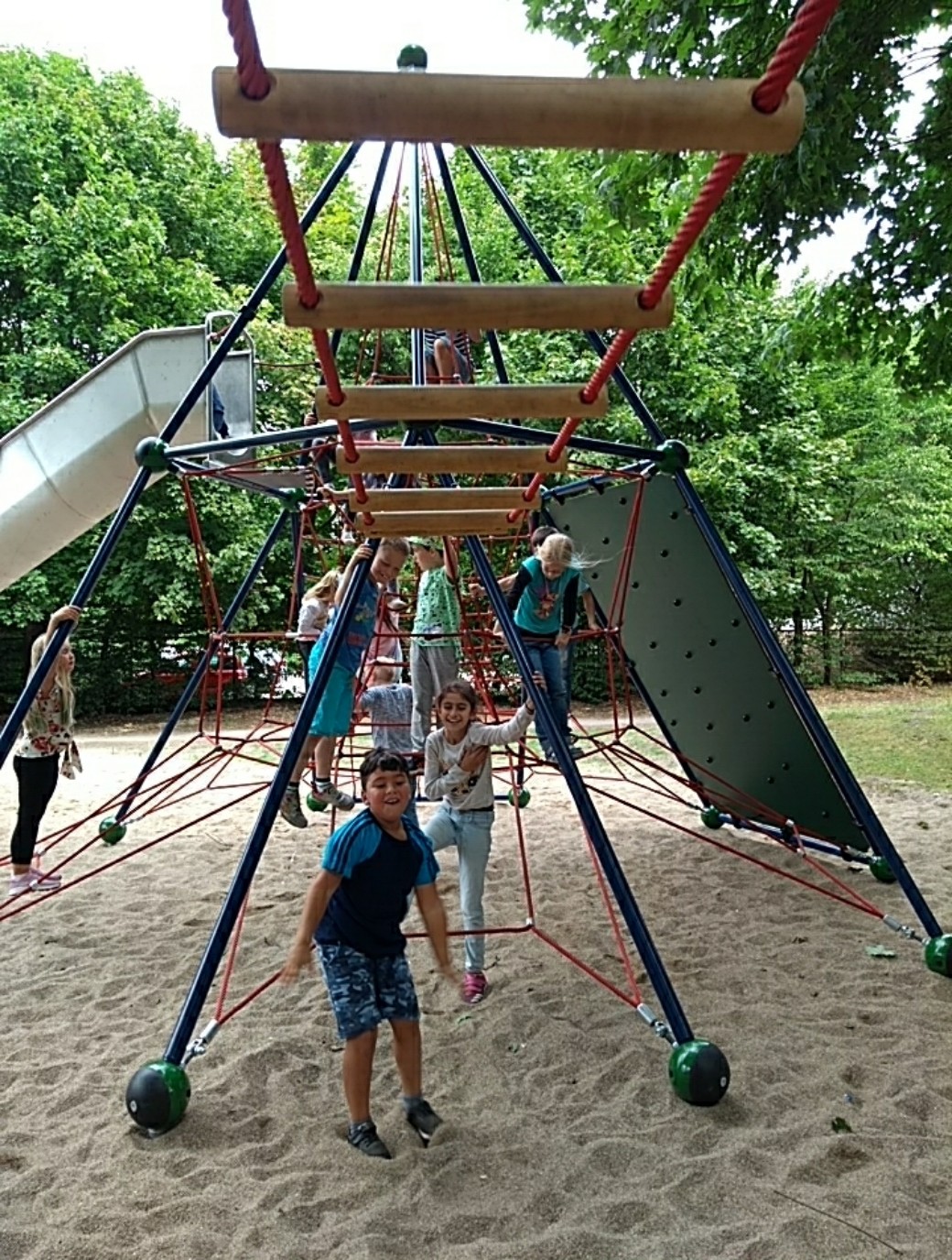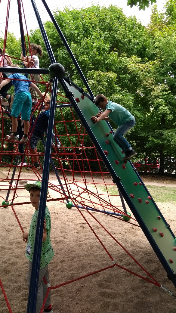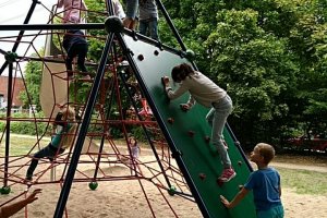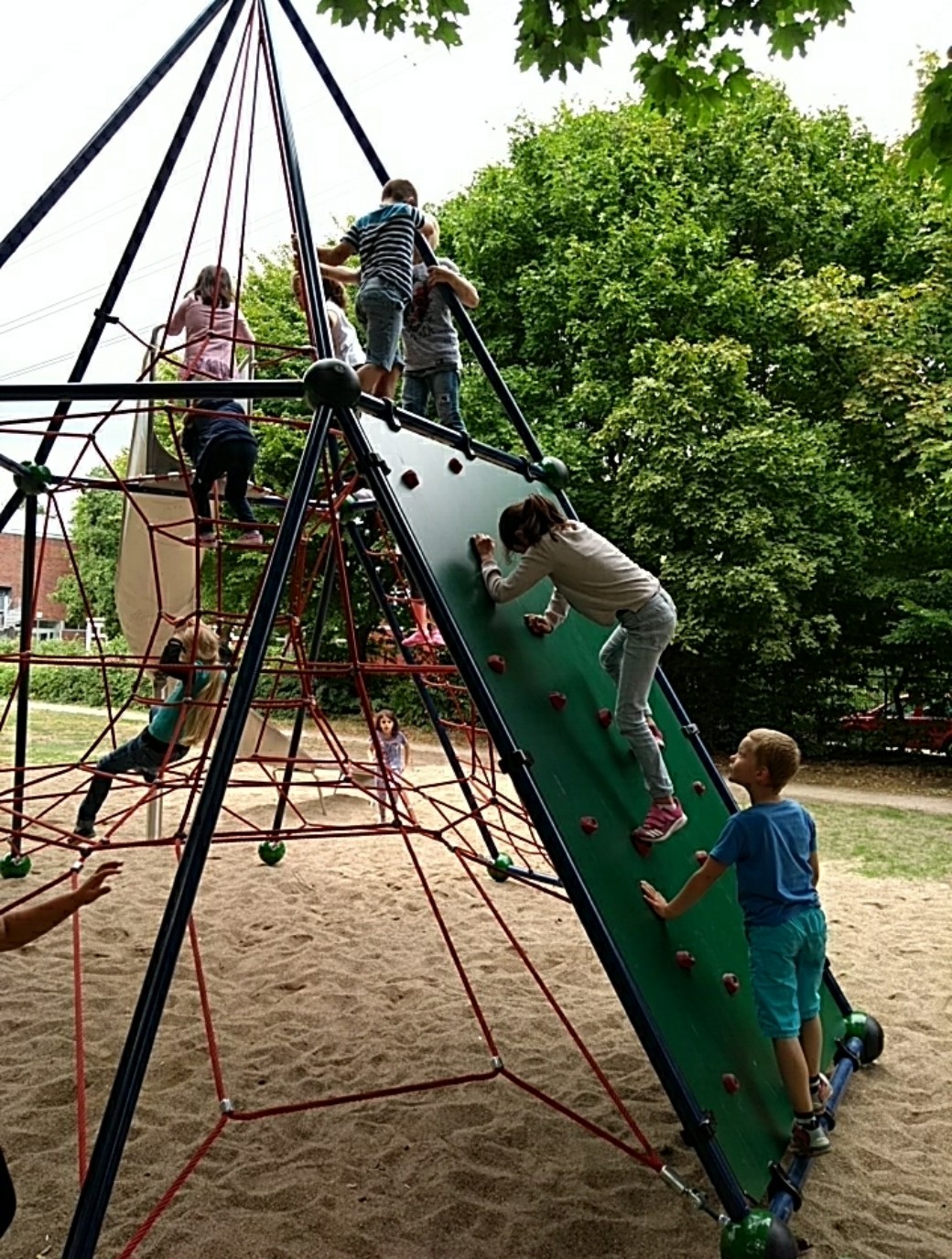 Außerdem haben wir auf unserem Außengelände ein neues Klettergerüst. Klettern, Rutschen, Hangeln, Springen .... alles ist möglich. Die Kinder haben sichtlich Spaß.