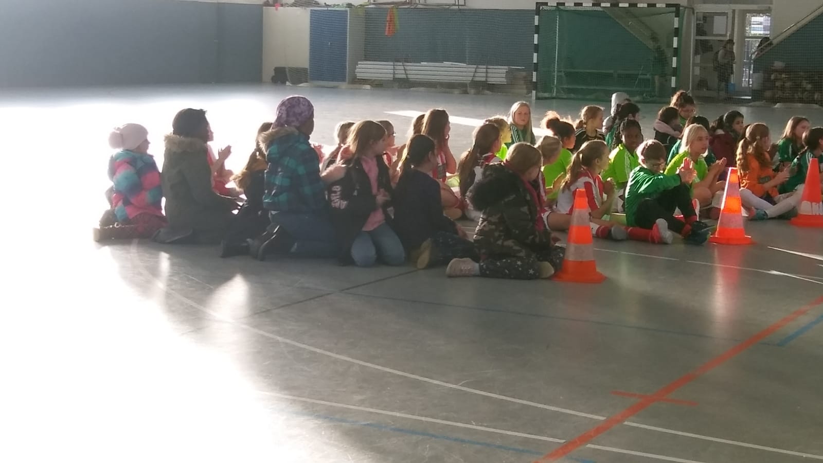 Wir schießen fast ein Tor, aber daneben. Das Christianeum ist besser als wir, aber sie haben noch kein Tor geschossen. Jipppieee! Maksalina schießt fast ein Tor. Lilli verhindert ein Tor. Knapp war ein Tor für Christianeum, aber nicht geschafft. Gar keiner hat ein Tor geschossen, 0:0!