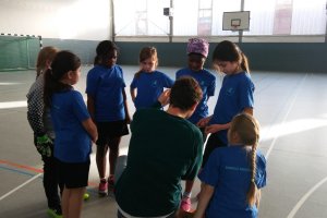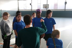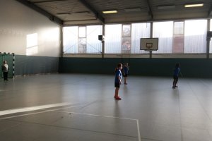 Wir werden in unserem ersten Spiel gegen die Schule Frohmestraße spielen. Lilli aus der 4c ist die Torwartin. Chava aus der 3a und Mahnaz aus der 4a sind Abwehr. Abegirl und Maksalina aus der 4a sind im Sturm. Die gegen uns spielen, also Frohmestraße, sind stärker, aber sie haben noch kein Tor geschossen. Fast ein Tor für uns. Mahnaz und Chava wechseln. Lilli beschützt das Tor. Lilli hat wieder ein Tor verhindert. Jetzt haben die anderen geschossen, 0:1. Das erste Spiel von uns ist vorbei.