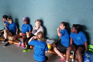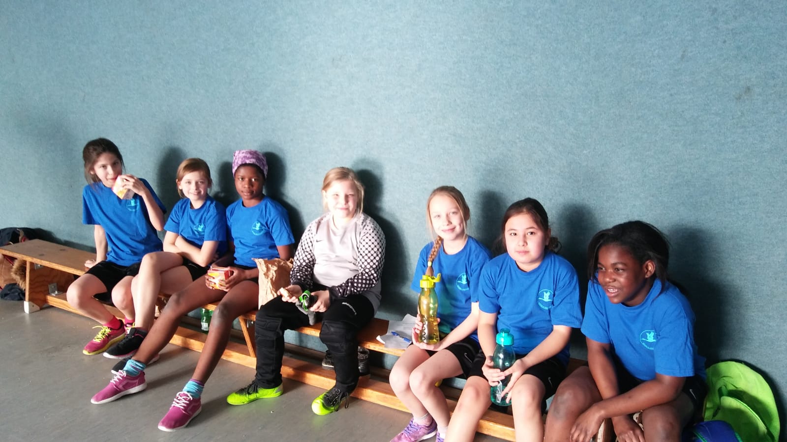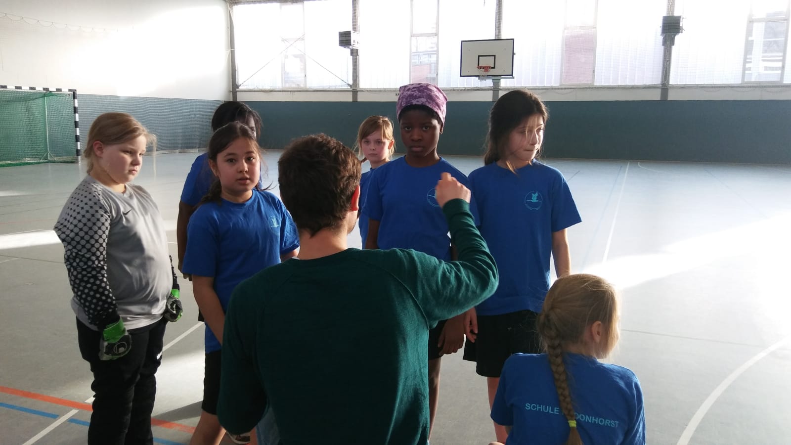 Abegirl, Jana, Isabell, Mahnaz, Christabel, Maksalina und Lilli waren am Montag, den 14.1.2019, mit Frau Ernst und Herrn Röseler in der Sporthalle des Gymnasium Hochrad.