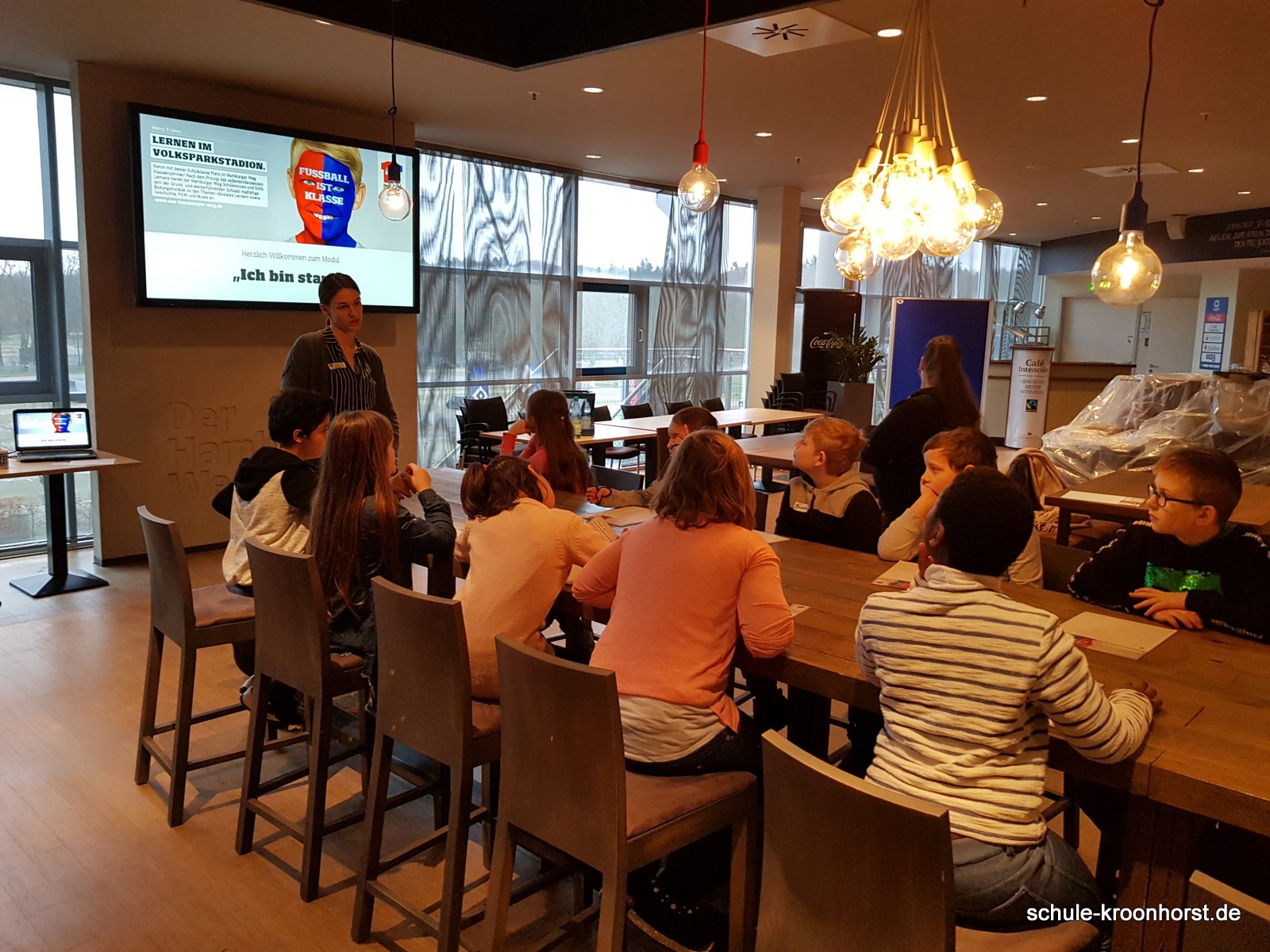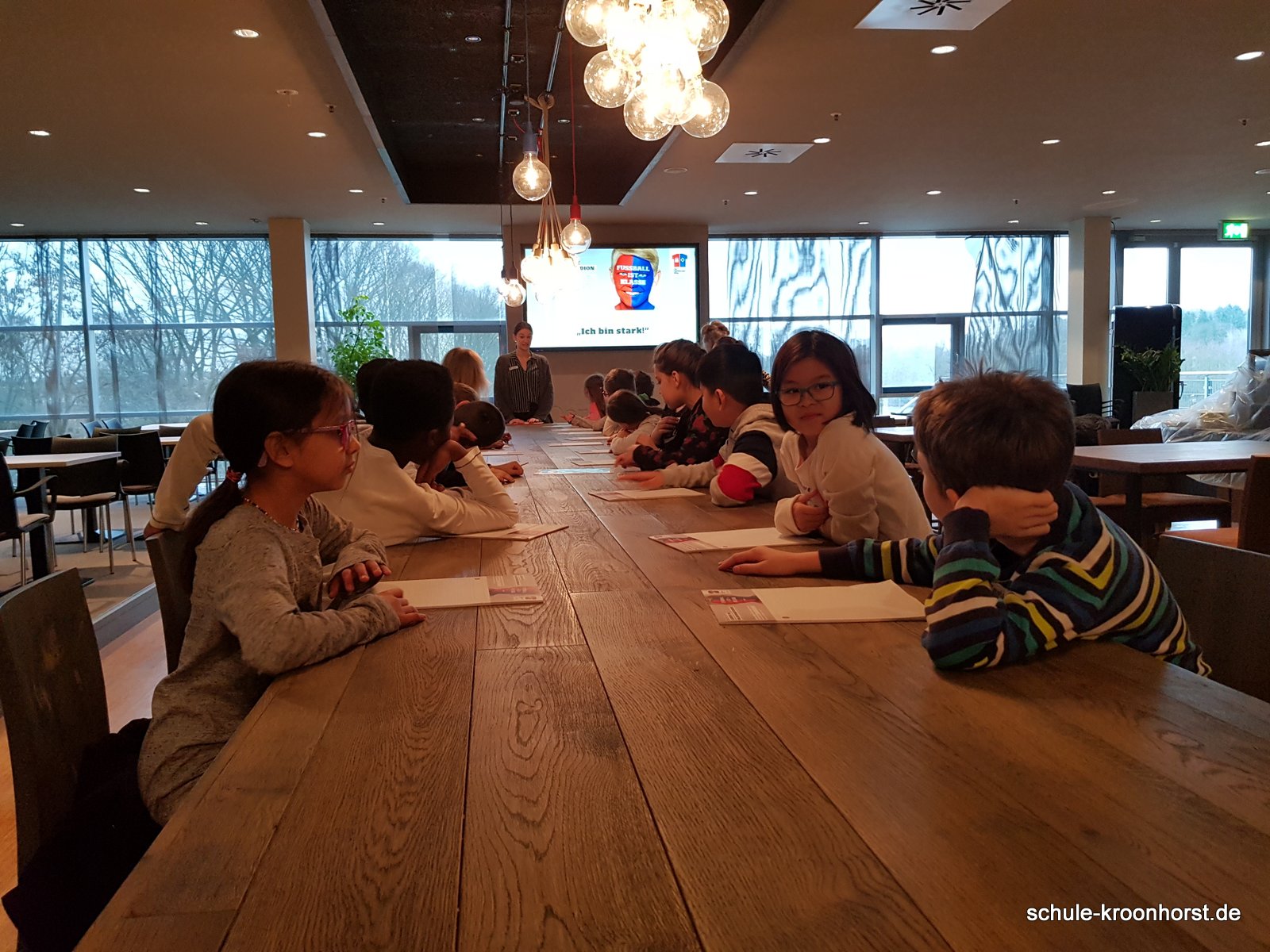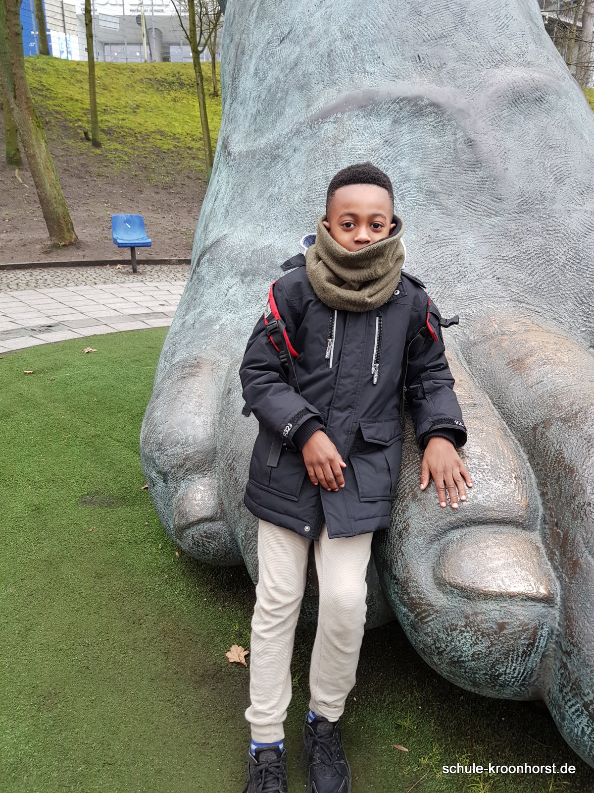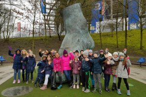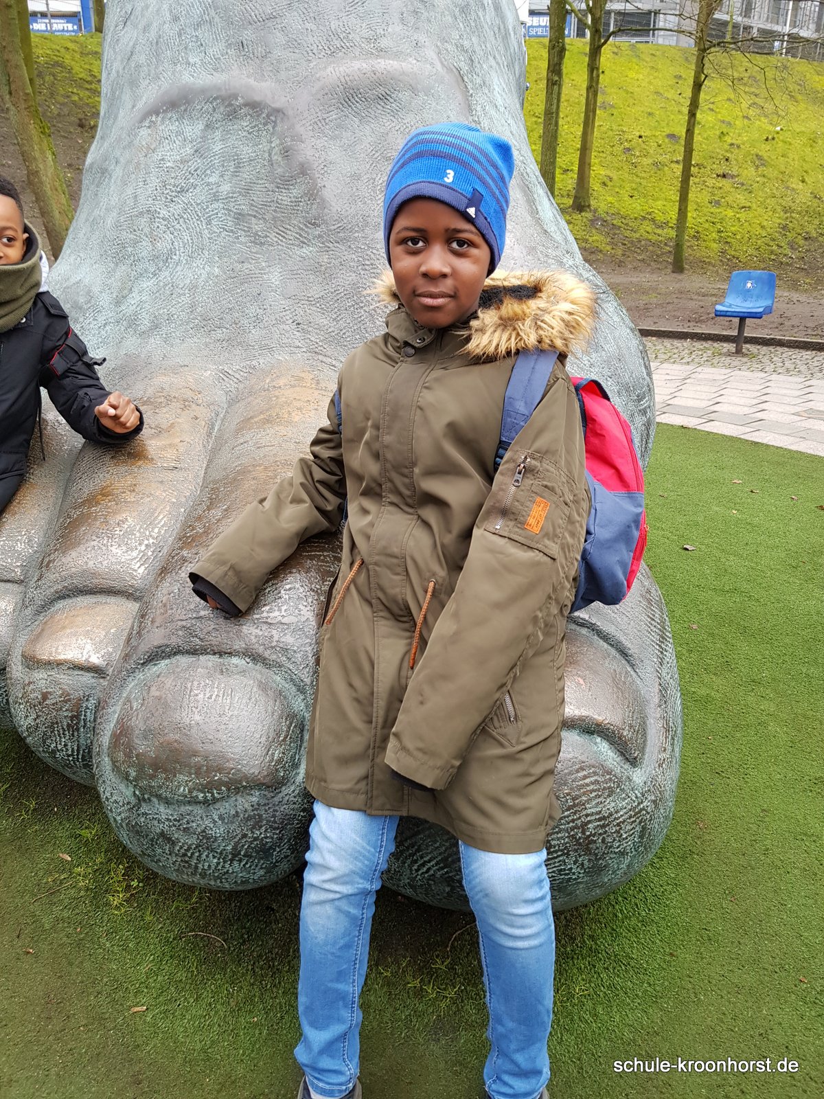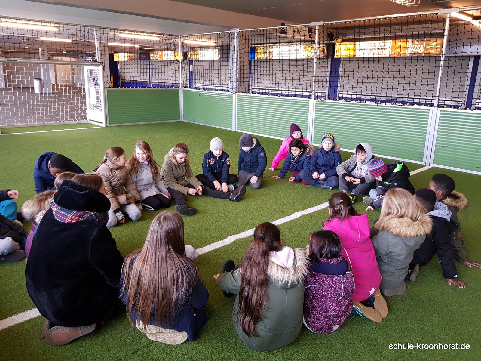 Am Freitag, den 22.2.2019 waren wir mit sieben Kindern aus der 3c und 15 aus der 3a, sowie Frau Albrecht, Frau Ernst und Frau Hegener beim Hamburger HSV. Wir sind mit dem Bus gefahren. Am Anfang haben wir den riesigen Fuß von Uwe Seeler gesehen. Danach mussten wir in der Kälte 10 bis 15 Minuten warten. Dann hat uns Katrin ins HSV Klassenzimmer gebracht.