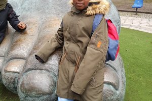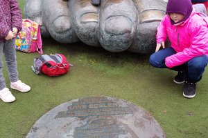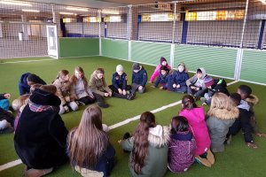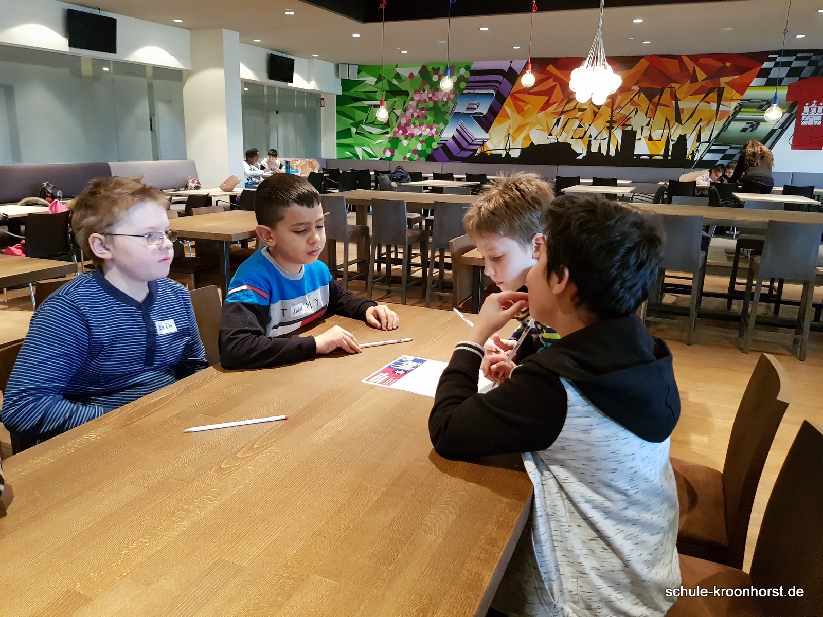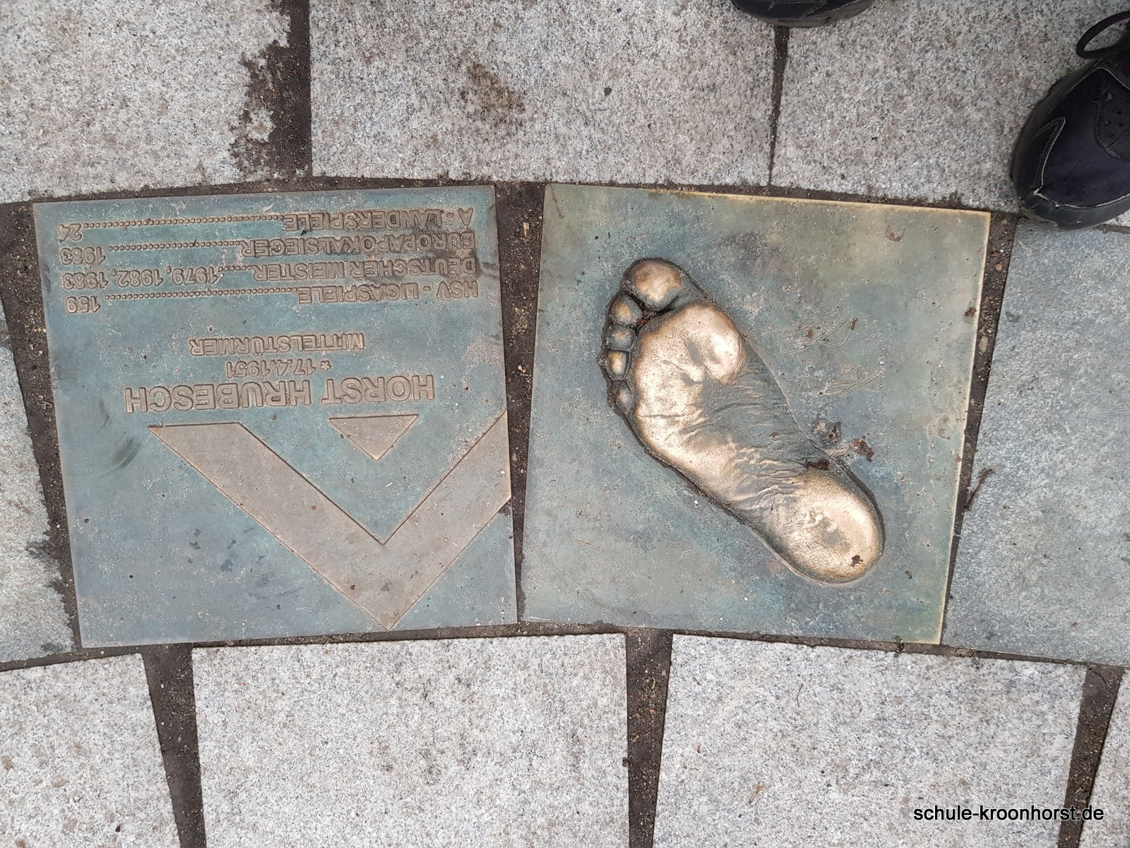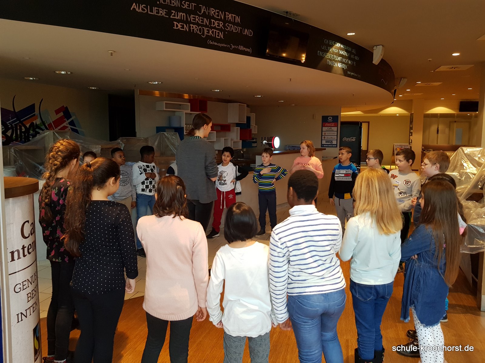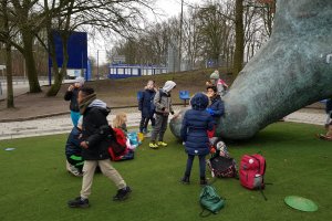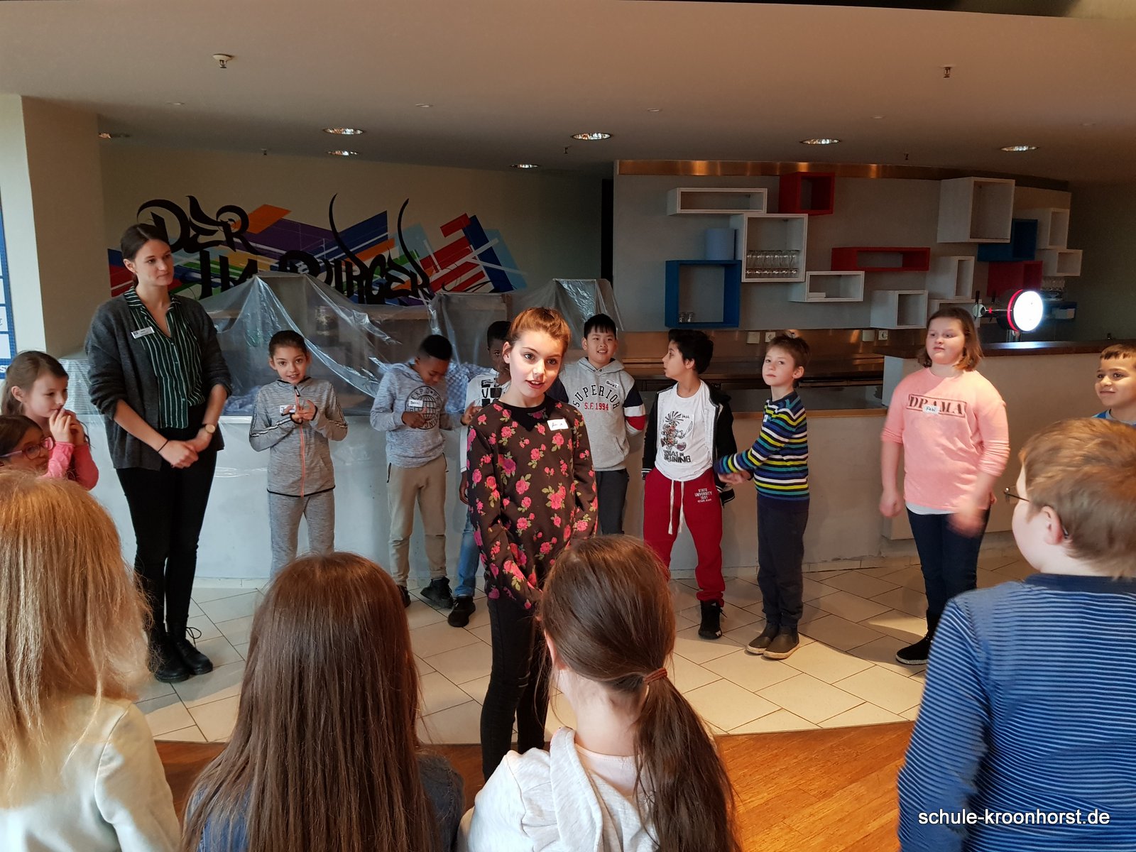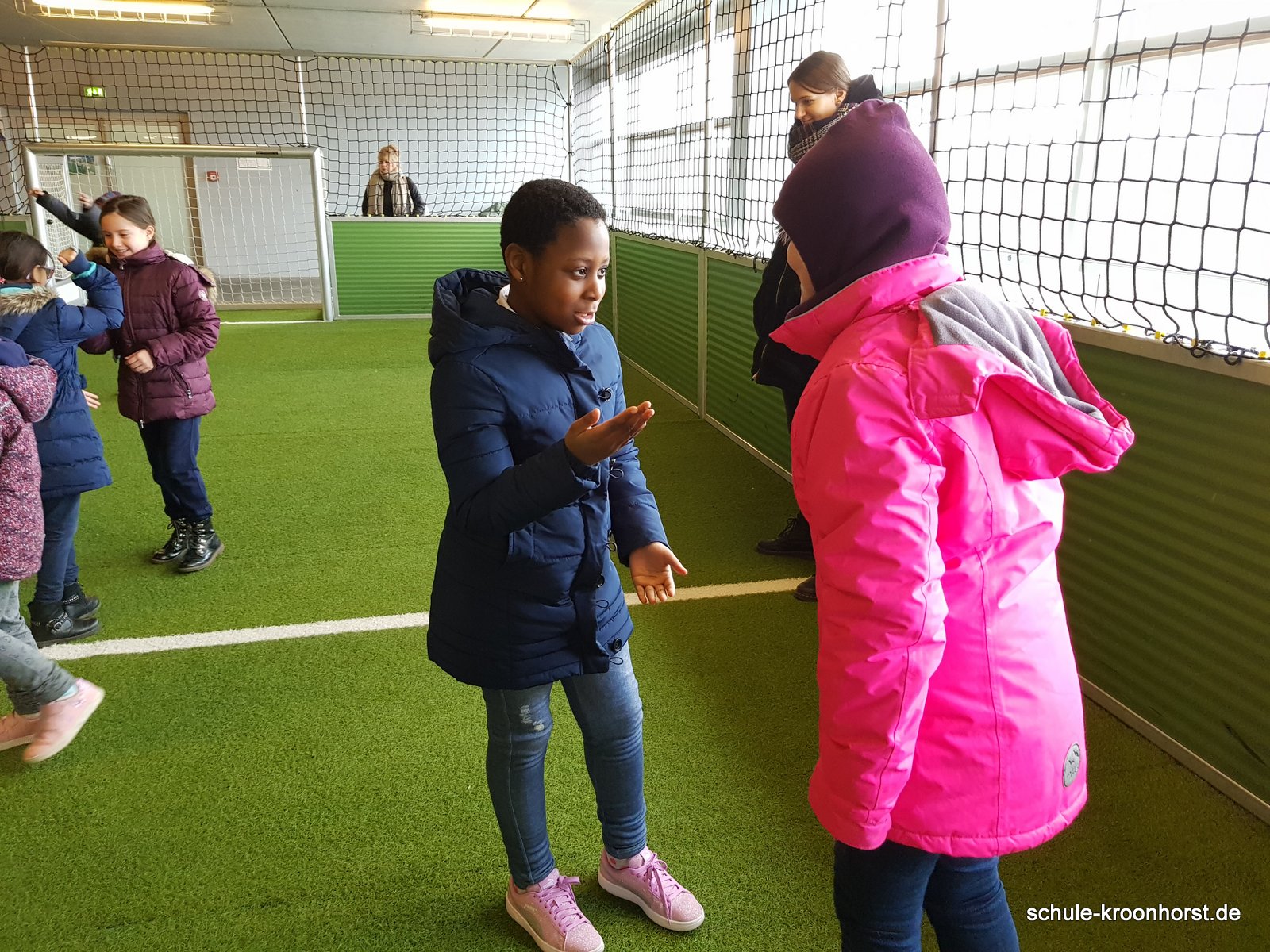 Am Freitag, den 22.2.2019 waren wir mit sieben Kindern aus der 3c und 15 aus der 3a, sowie Frau Albrecht, Frau Ernst und Frau Hegener beim Hamburger HSV. Wir sind mit dem Bus gefahren. Am Anfang haben wir den riesigen Fuß von Uwe Seeler gesehen. Danach mussten wir in der Kälte 10 bis 15 Minuten warten. Dann hat uns Katrin ins HSV Klassenzimmer gebracht.