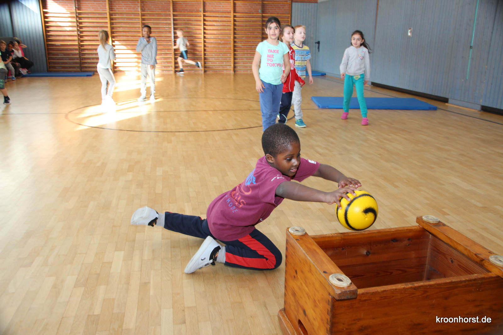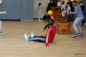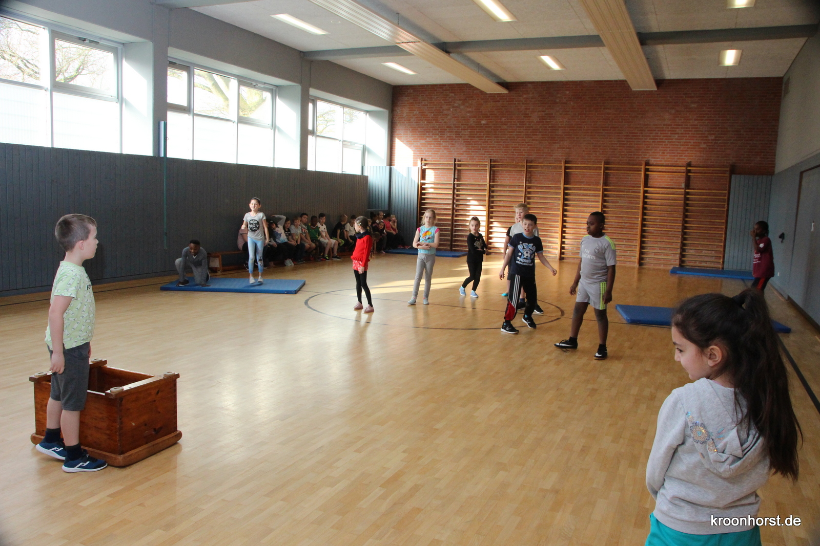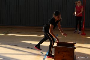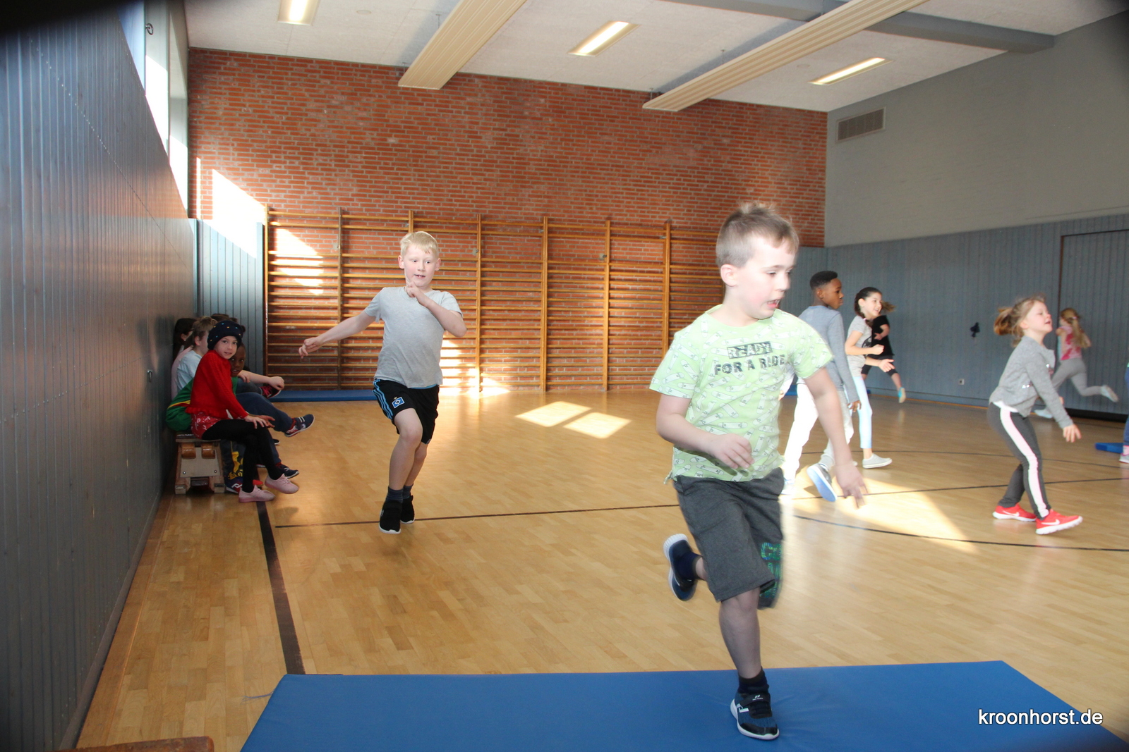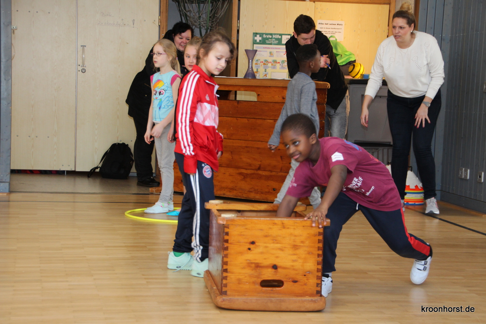 Am folgenden Freitag wurden die beiden Vorschulklassen, der Jahrgang Eins sowie Zwei erneut in die kleine Sporthalle eingeladen. Diesmal war jeder Schüler individuell gefordert. An unterschiedlichen Stationen testeten unsere Jüngsten die eigene Beweglichkeit, Koordination und Geschicklichkeit. Stolz über das eigene Können, trugen die Schüler den Laufzettel mit der erfolgreichen Teilnahme in ihren Händen.