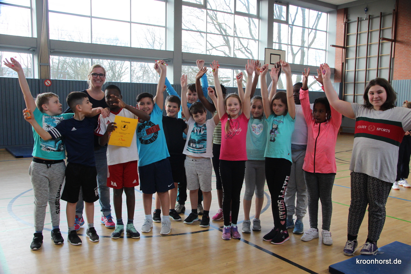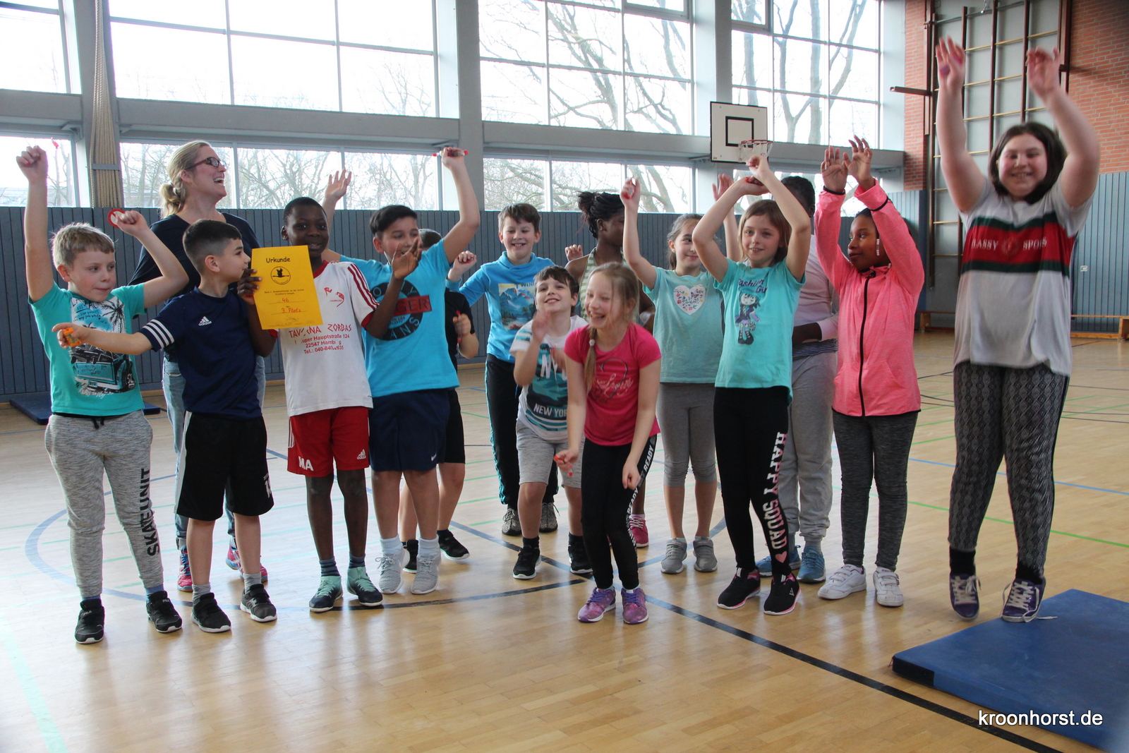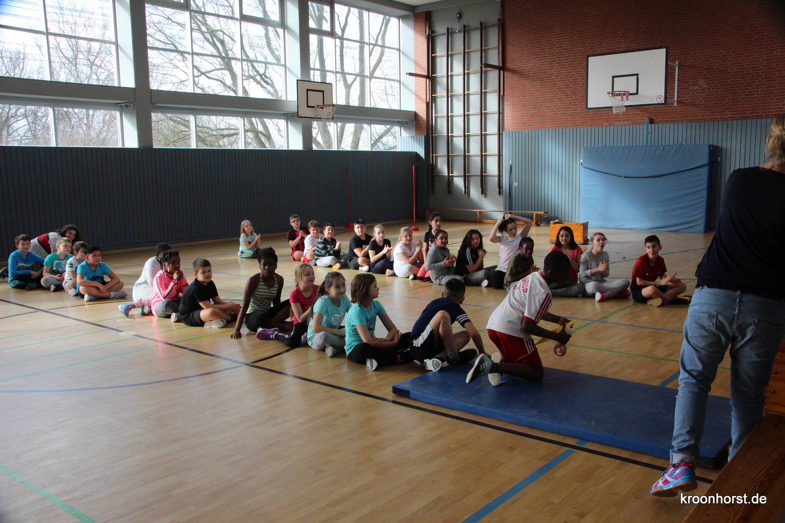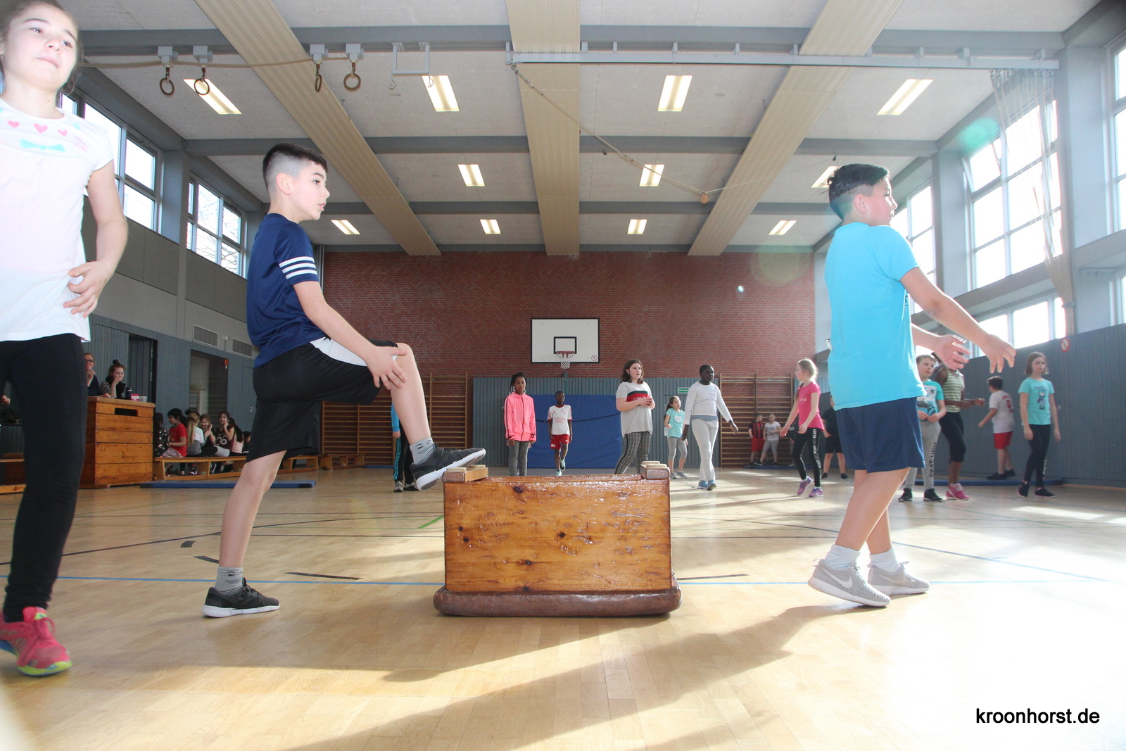 Am folgenden Freitag wurden die beiden Vorschulklassen, der Jahrgang Eins sowie Zwei erneut in die kleine Sporthalle eingeladen. Diesmal war jeder Schüler individuell gefordert. An unterschiedlichen Stationen testeten unsere Jüngsten die eigene Beweglichkeit, Koordination und Geschicklichkeit. Stolz über das eigene Können, trugen die Schüler den Laufzettel mit der erfolgreichen Teilnahme in ihren Händen.
