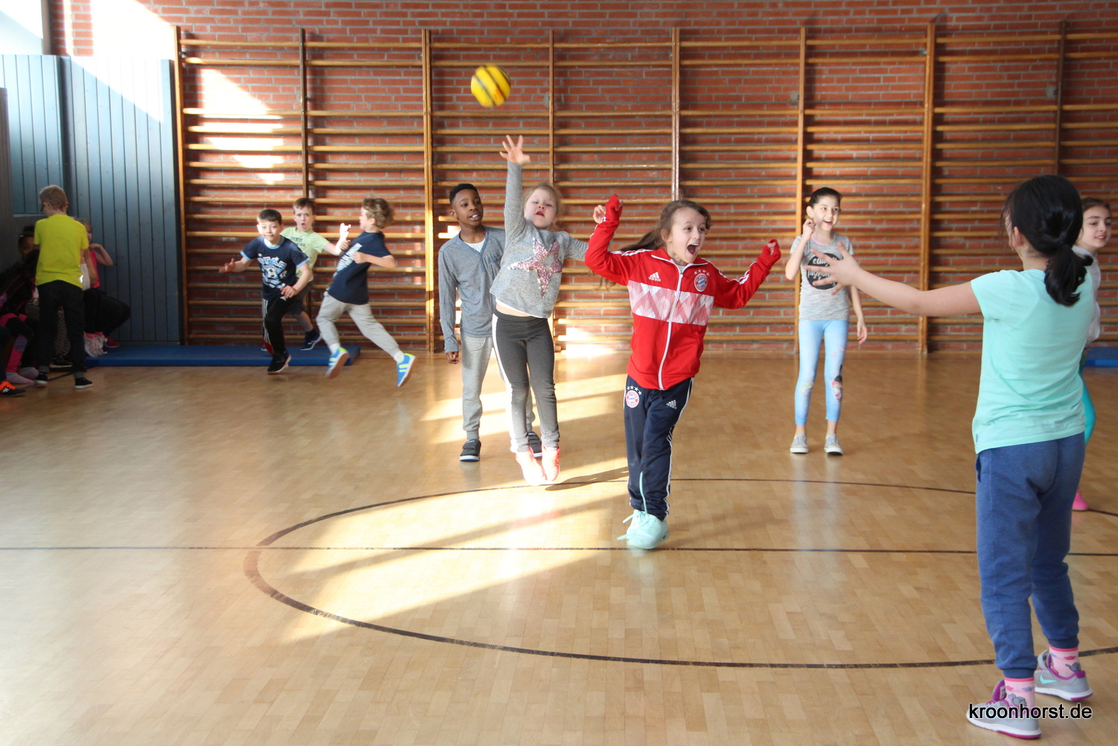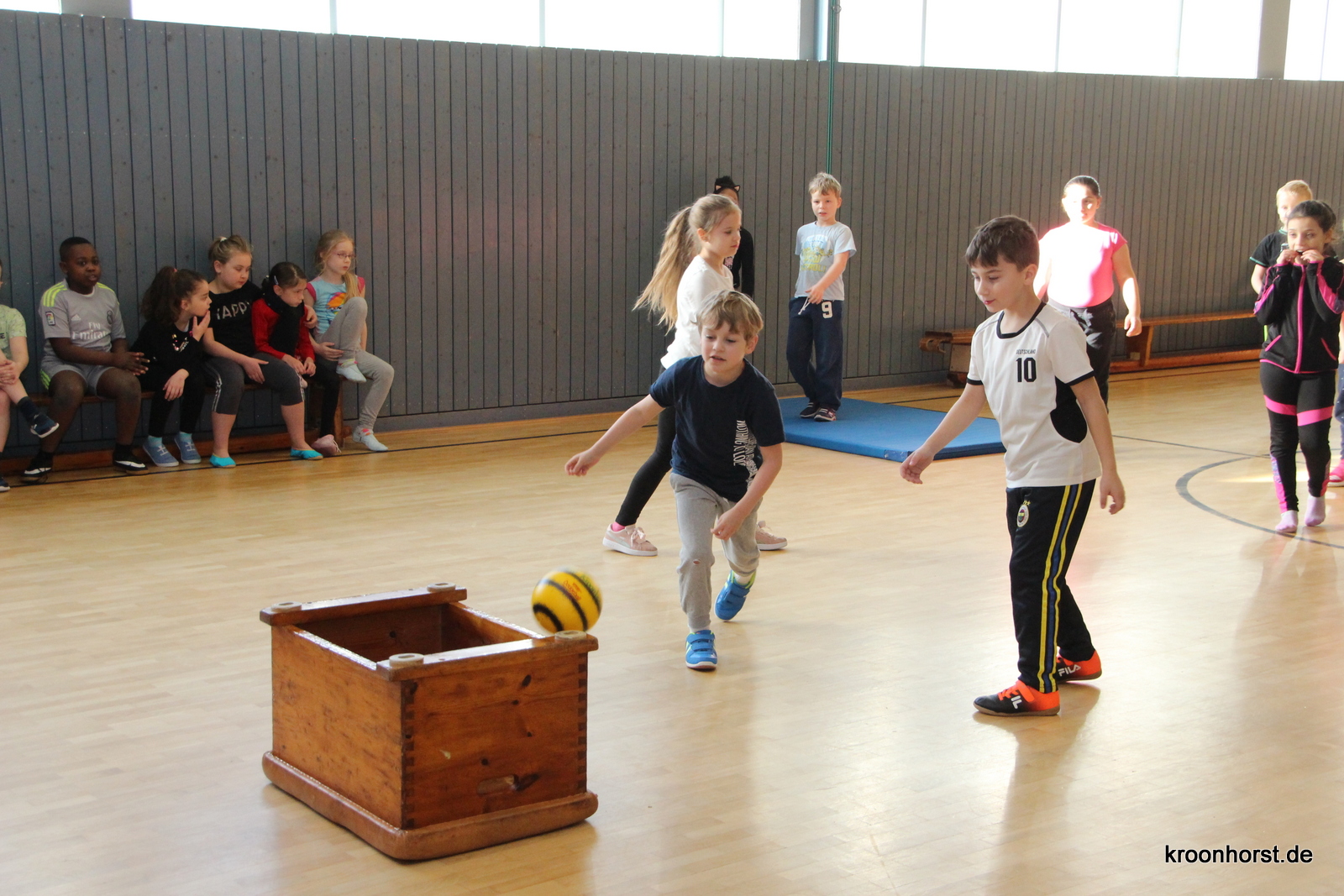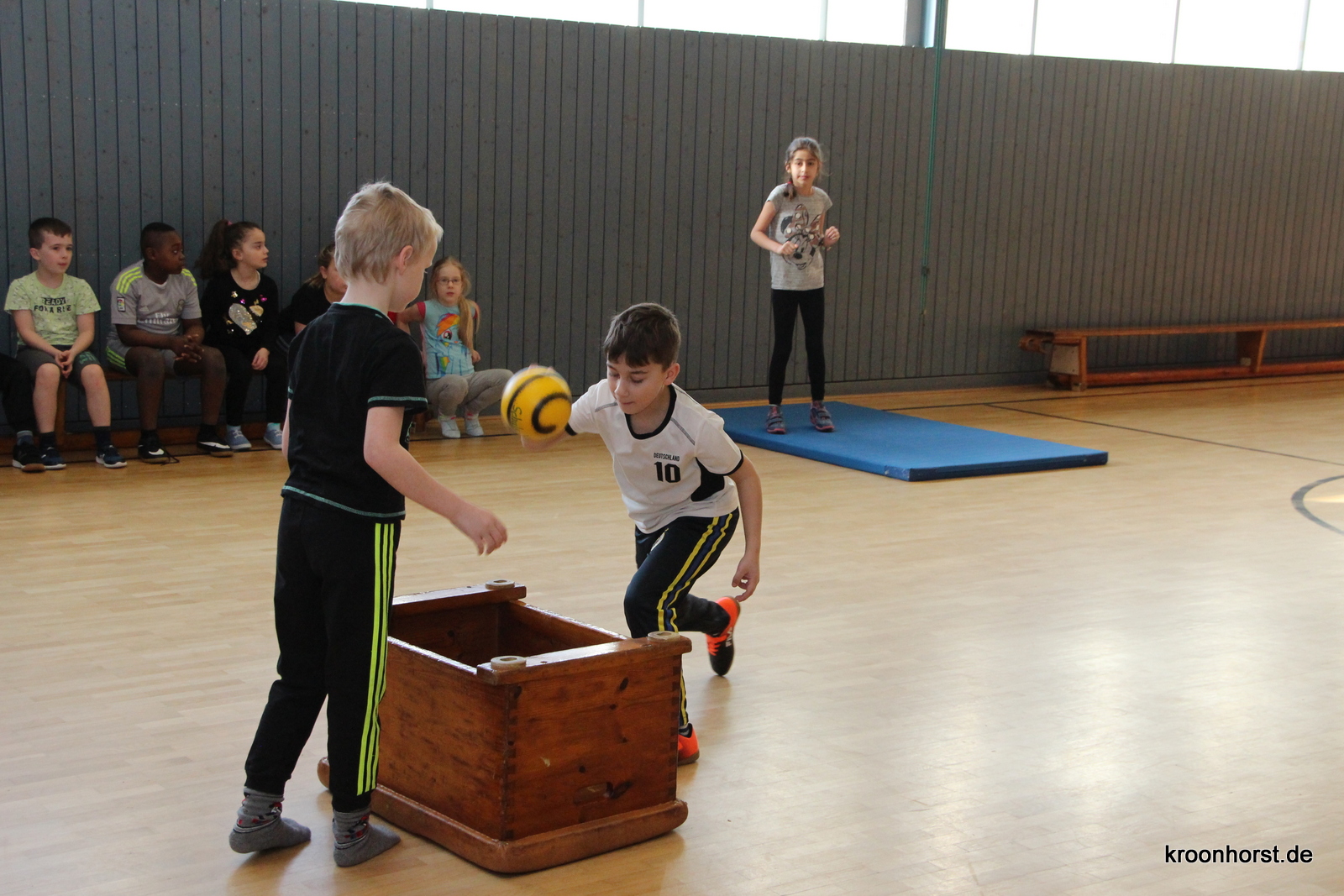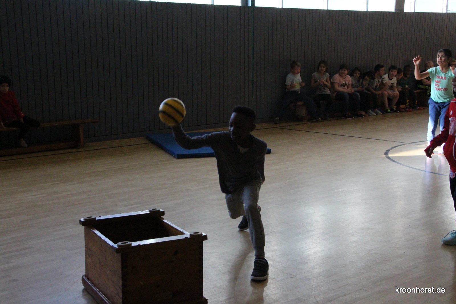 Die kleine Sporthalle diente als Austragungsort für das Duell im klassischen Brennball zwischen der 2a und der 2b. "Oben" in der großen Sporthalle trugen die dritten Klassen und im Anschluss der Jahrgang Vier ihr Turnier in der selben Spielform aus. Um erfolgreich zu sein, mussten die Schüler sowohl ihr körperliches Geschick als auch Teamwork beweisen: Schnelligkeit in den Läufen, eine gute Übersicht beim Fangen und Werfen und ein funktionierendes Zusammenspiel mit den Klassenkameraden. Besonders gut gelang dies der 2b, der 3a und der 4c. Diese Klassen erzielten in den Vergleichen die meisten Punkte.
