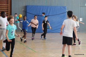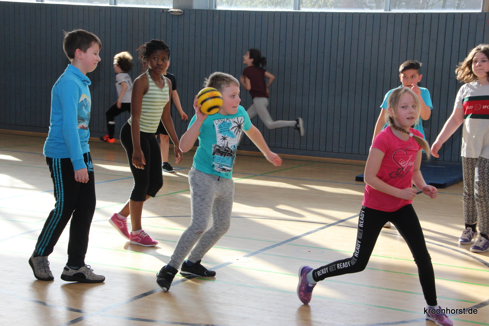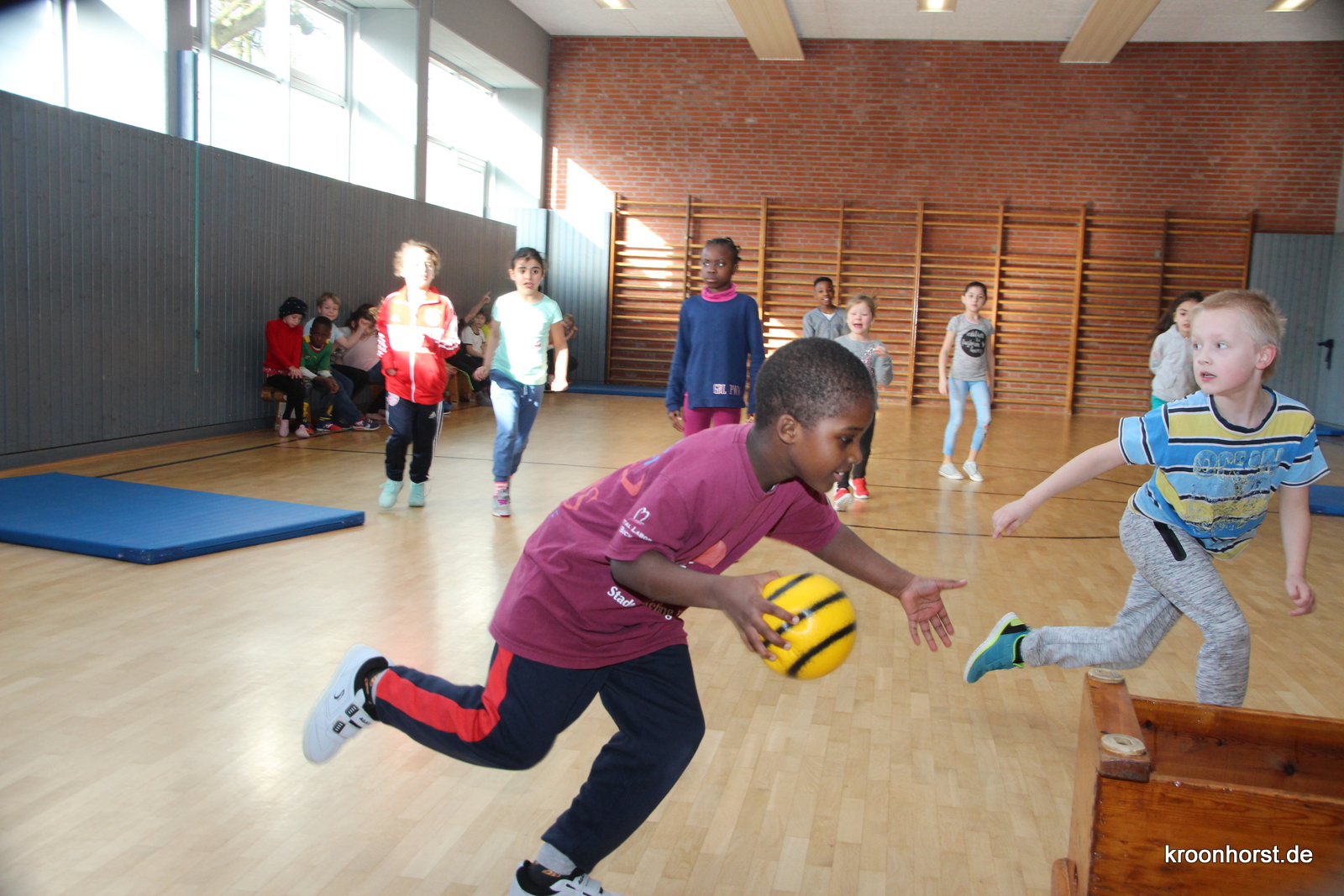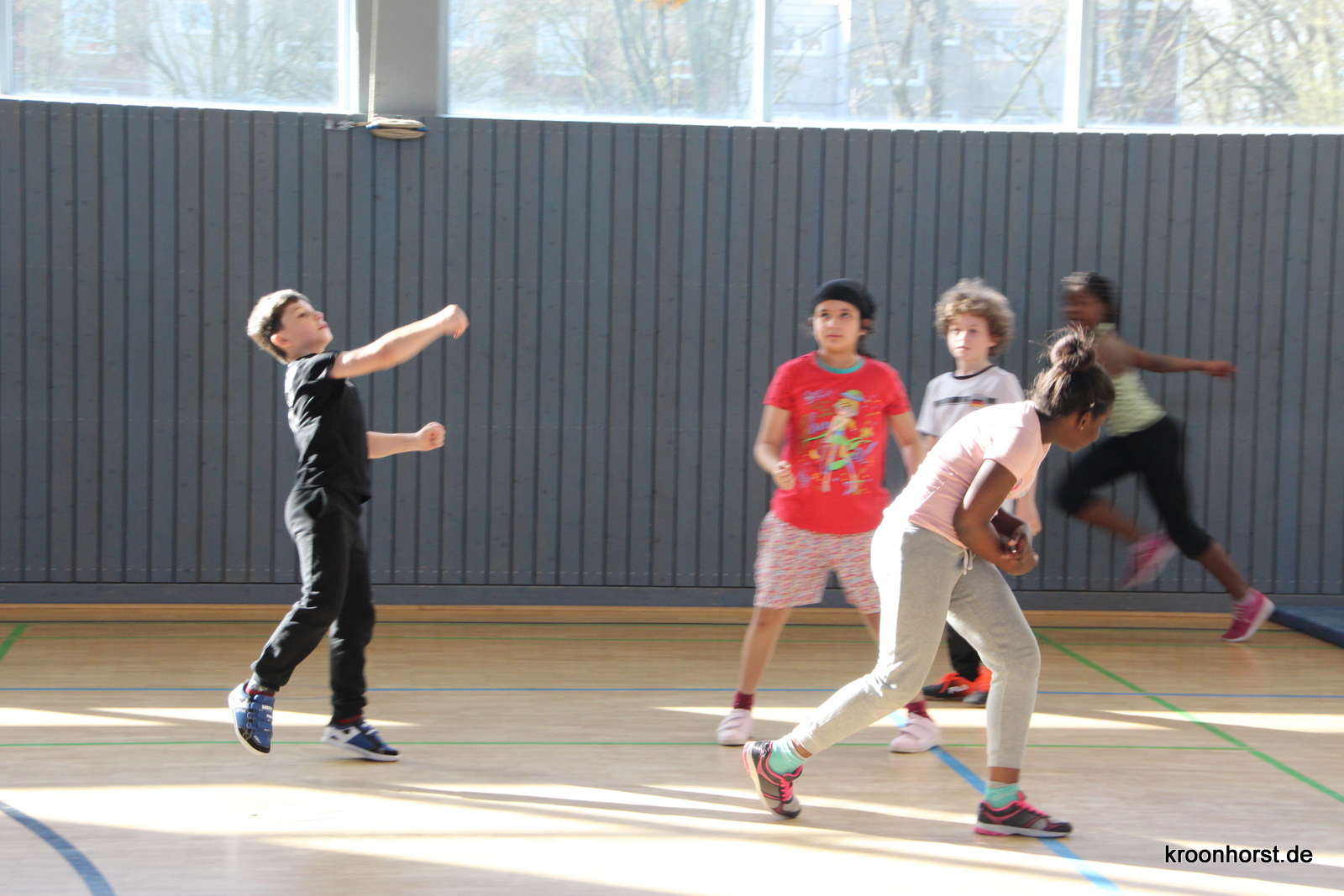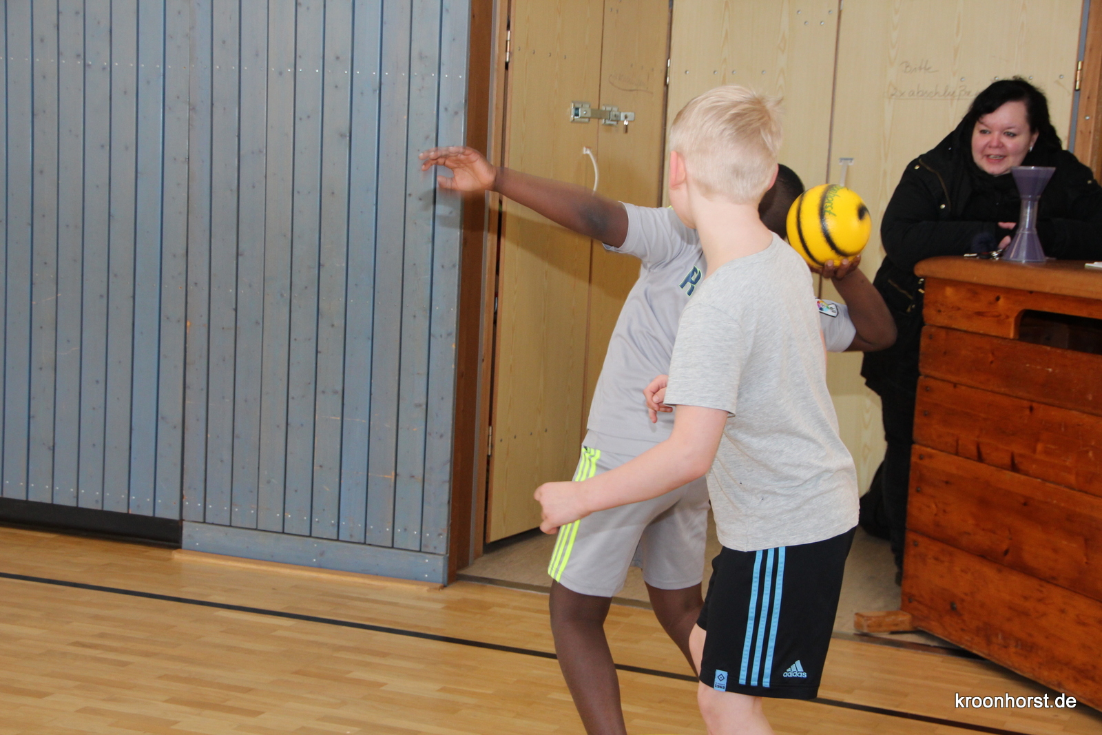 Die kleine Sporthalle diente als Austragungsort für das Duell im klassischen Brennball zwischen der 2a und der 2b. "Oben" in der großen Sporthalle trugen die dritten Klassen und im Anschluss der Jahrgang Vier ihr Turnier in der selben Spielform aus. Um erfolgreich zu sein, mussten die Schüler sowohl ihr körperliches Geschick als auch Teamwork beweisen: Schnelligkeit in den Läufen, eine gute Übersicht beim Fangen und Werfen und ein funktionierendes Zusammenspiel mit den Klassenkameraden. Besonders gut gelang dies der 2b, der 3a und der 4c. Diese Klassen erzielten in den Vergleichen die meisten Punkte.