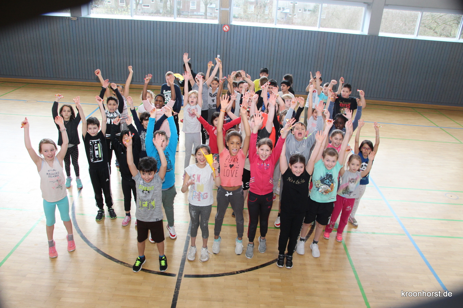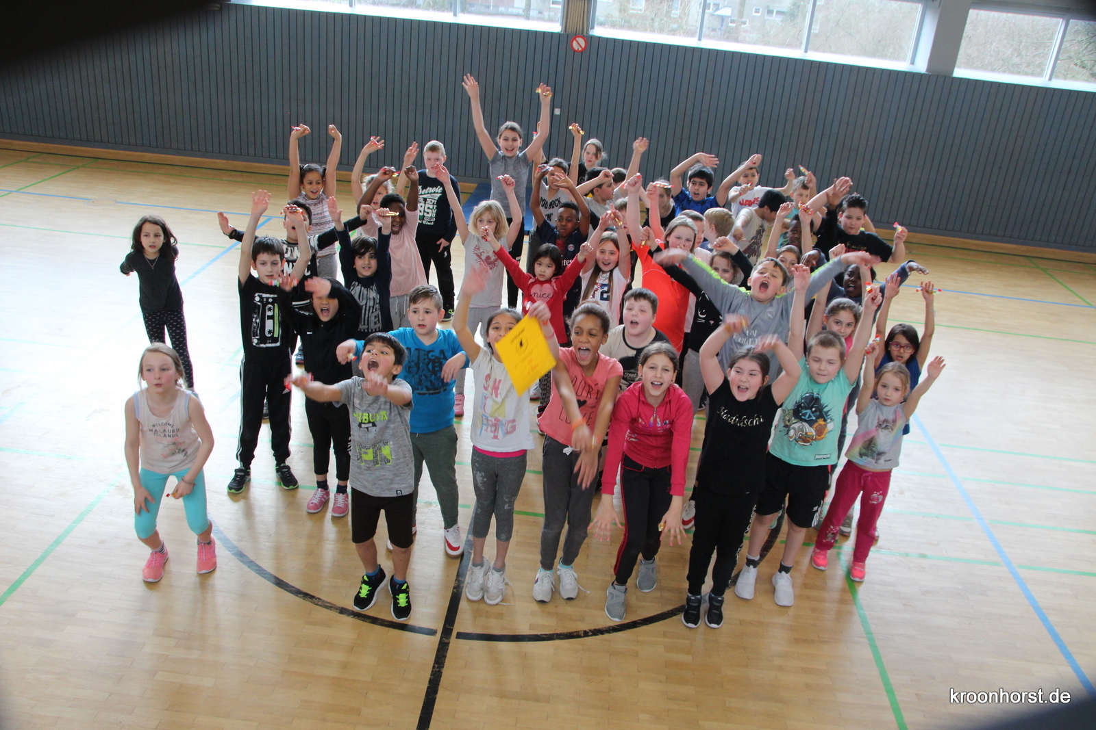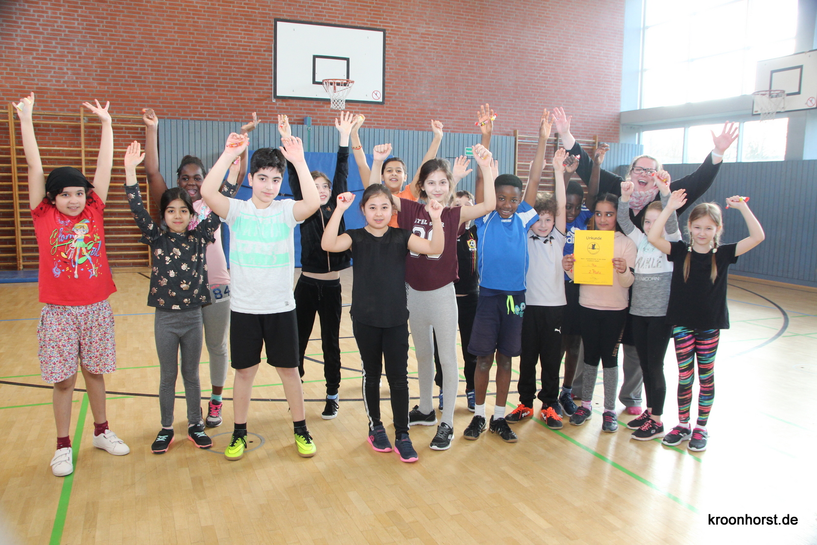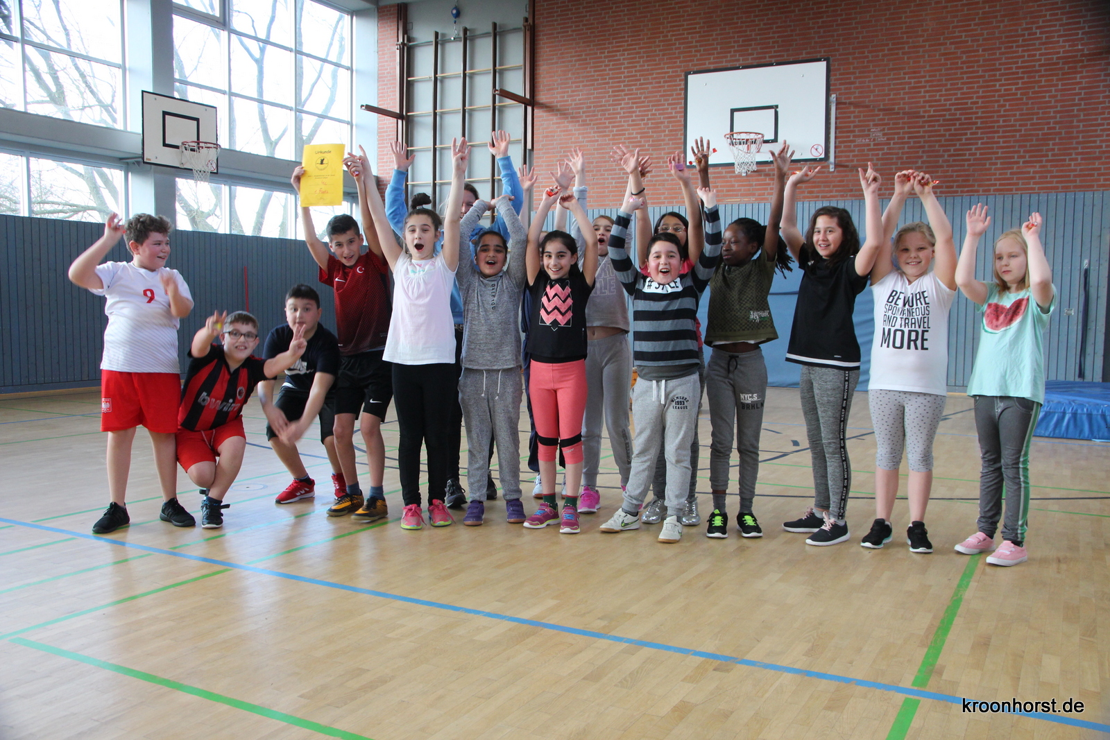 Parallel fand in der großen Sporthalle die nächste Auflage des schulinternen Fußballturniers statt. Traditionell treffen dabei jahrgangsübergreifend sowohl bei den Jungs als auch bei den Mädchen die dritten auch auf die vierten Klassen. Die große Fairness und der hohe Einsatz während des Turniers waren besonders erfreulich. Auch spielerisch zeigten mehrere der jungen Fußballer und Fußballerinnen ihr Talent in diesem Sport. Im Endresultat freuten sich die Jungs aus der 4c über den Turniersieg. Bei den Mädchen triumphierte die 4a.