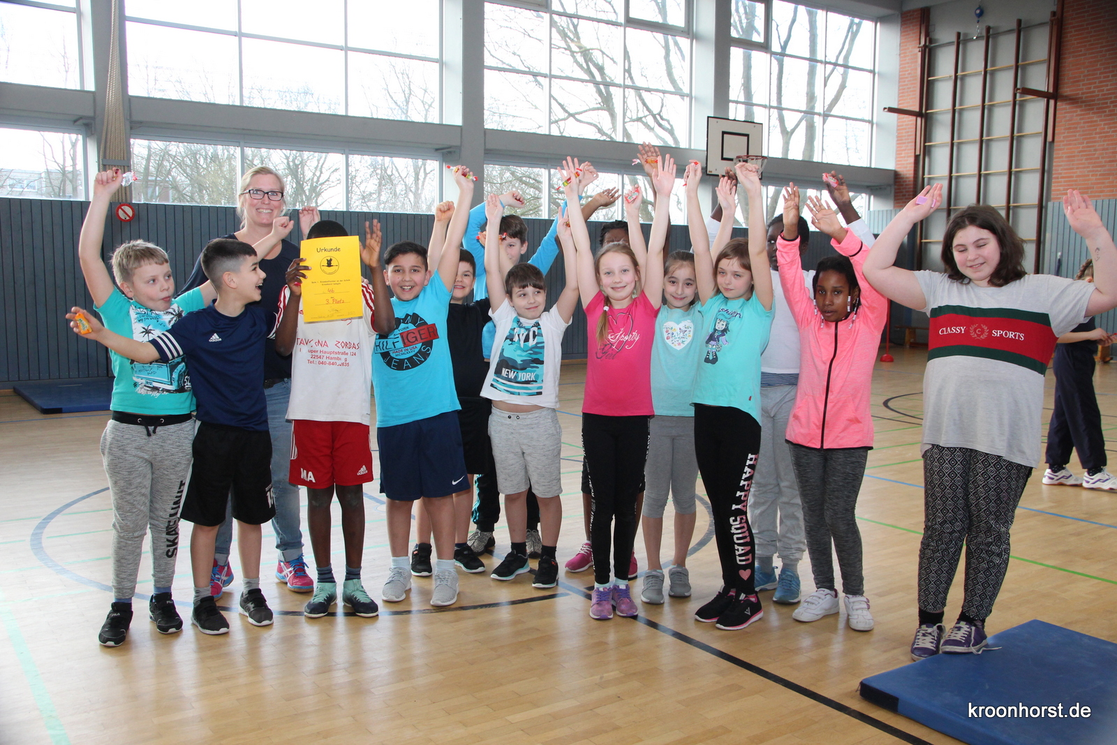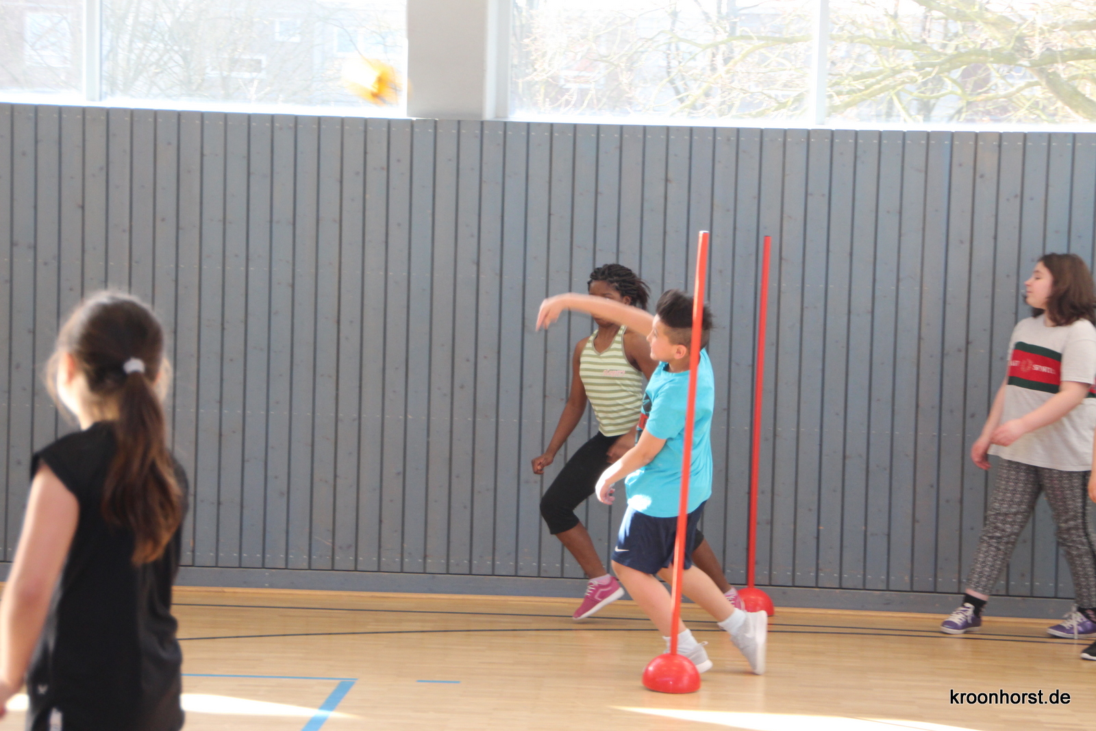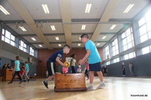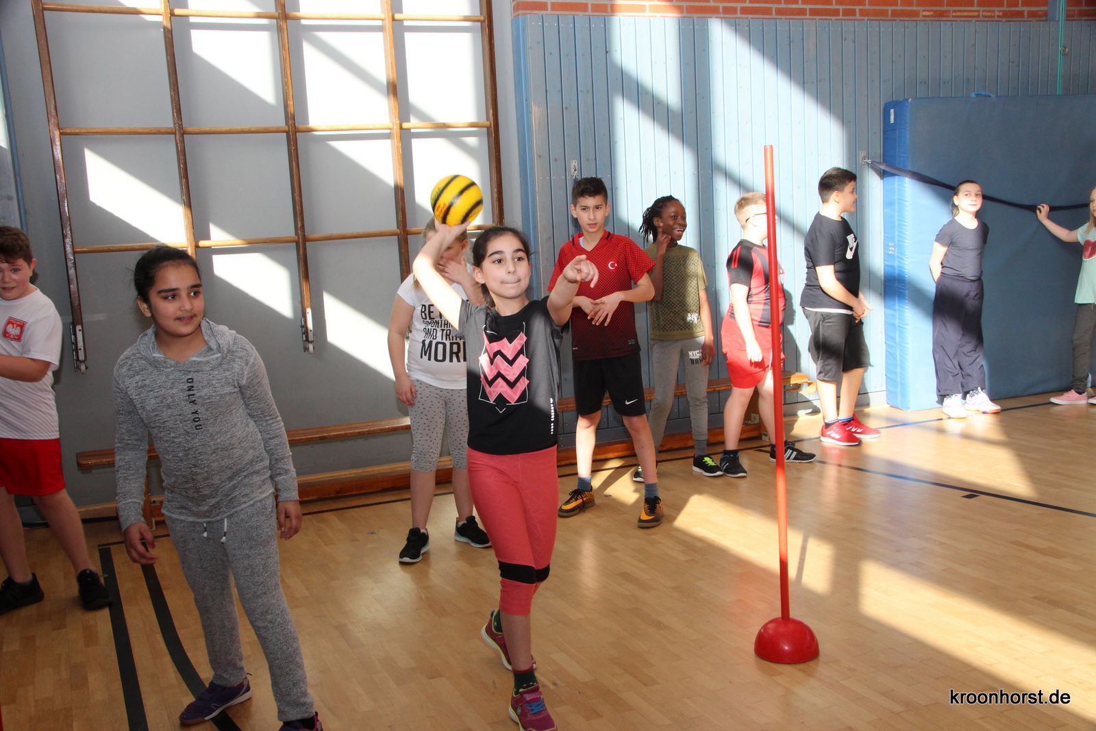Zunächst am Dienstag standen für unsere Jüngsten aus Klasse Eins bis hoch zu Jahrgang Vier verschiedene Wettbewerbe an. Hier waren die einzelnen Klassen als Team und Gemeinschaft gefordert.