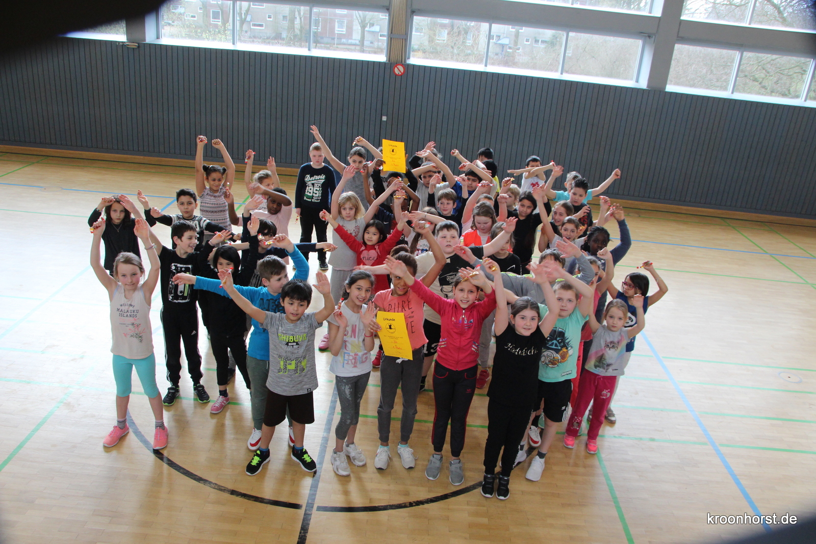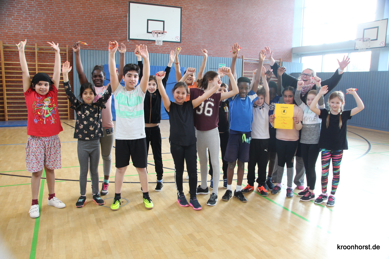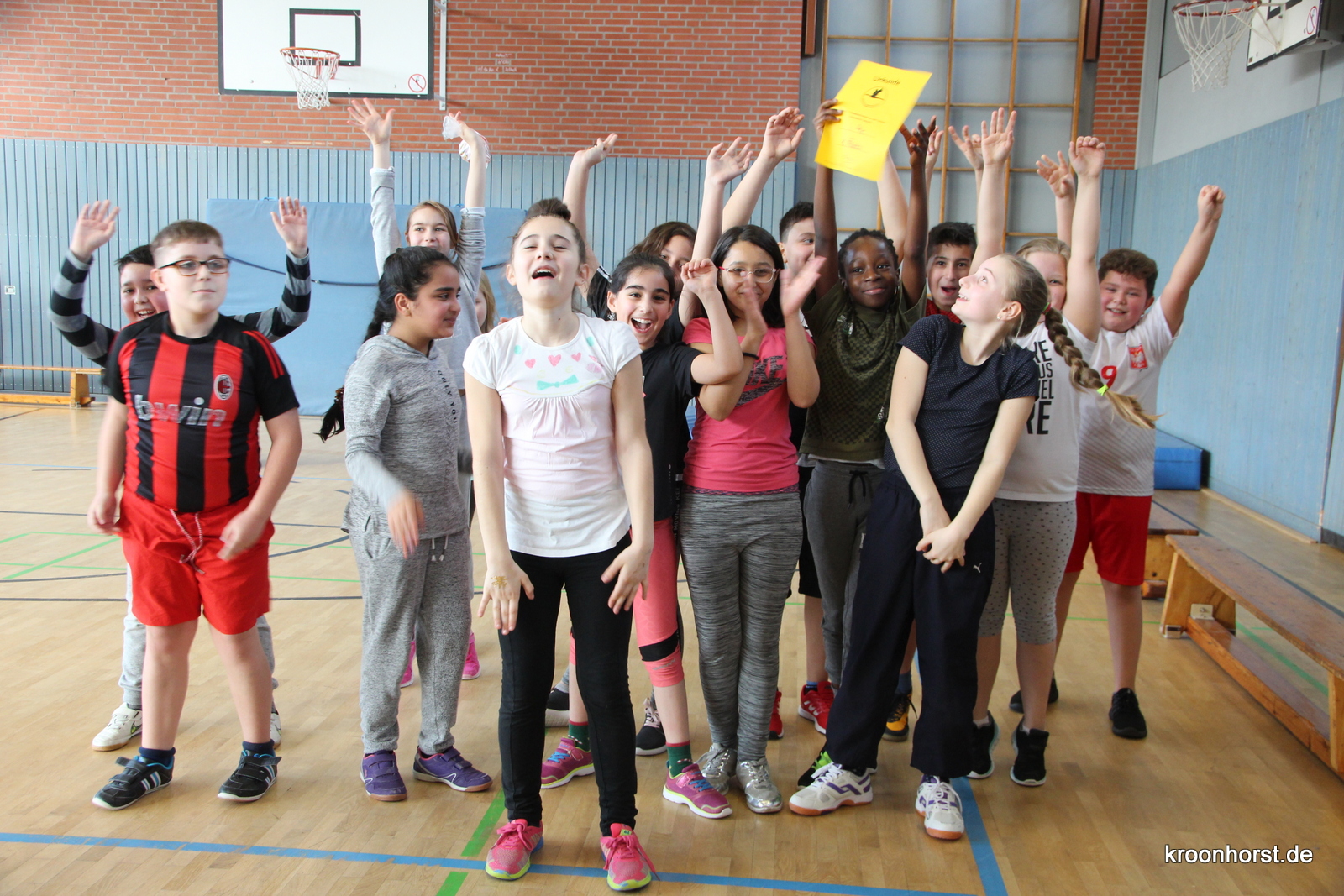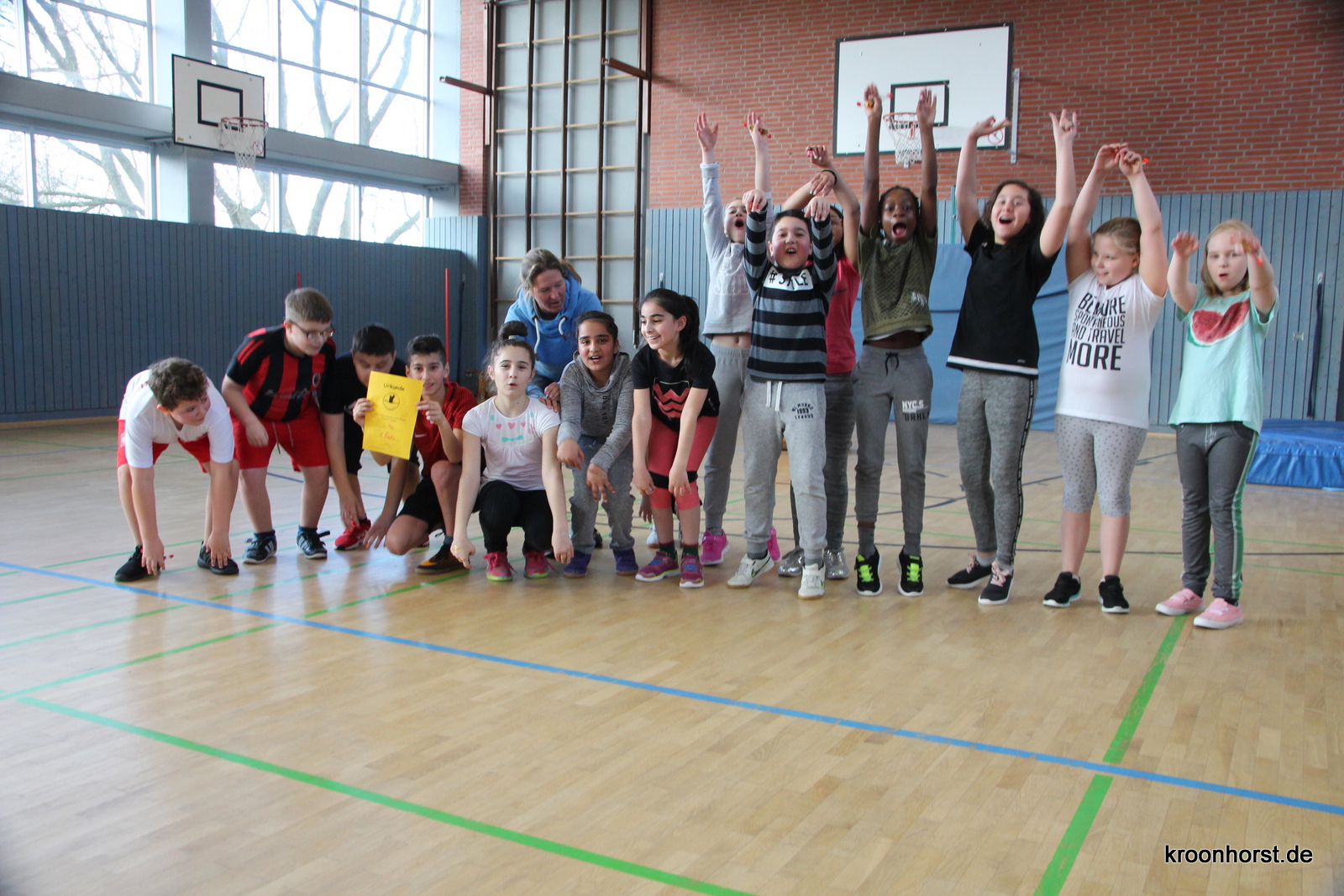Zunächst am Dienstag standen für unsere Jüngsten aus Klasse Eins bis hoch zu Jahrgang Vier verschiedene Wettbewerbe an. Hier waren die einzelnen Klassen als Team und Gemeinschaft gefordert.
