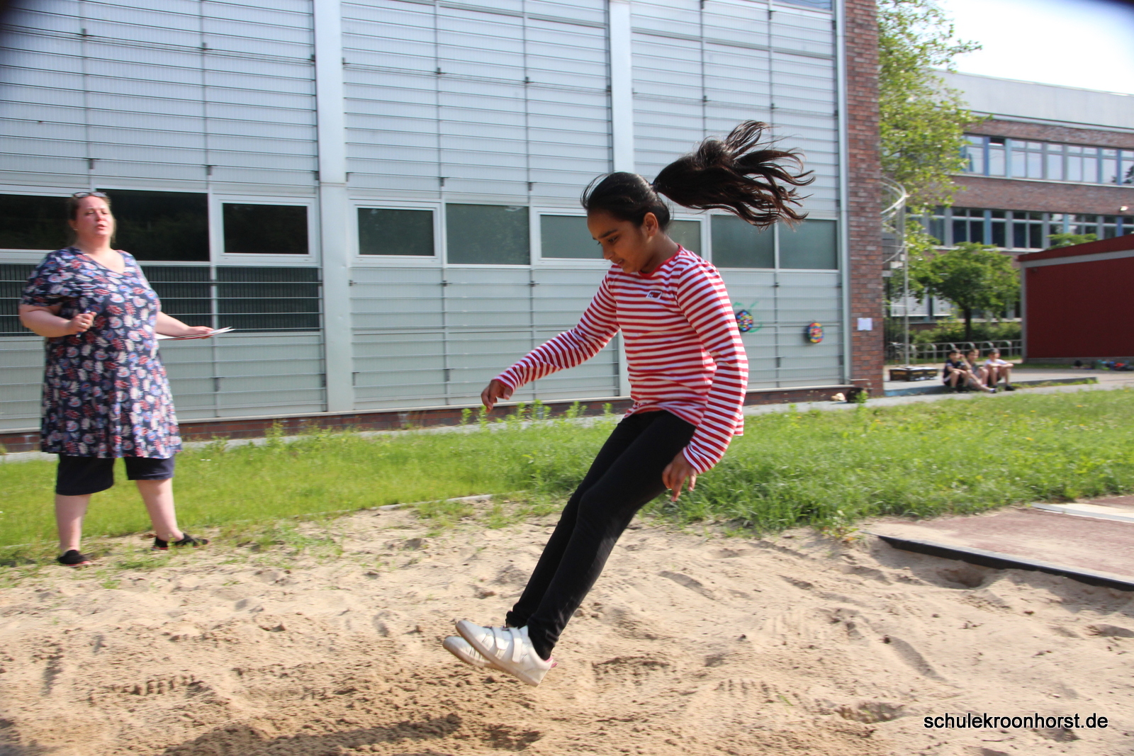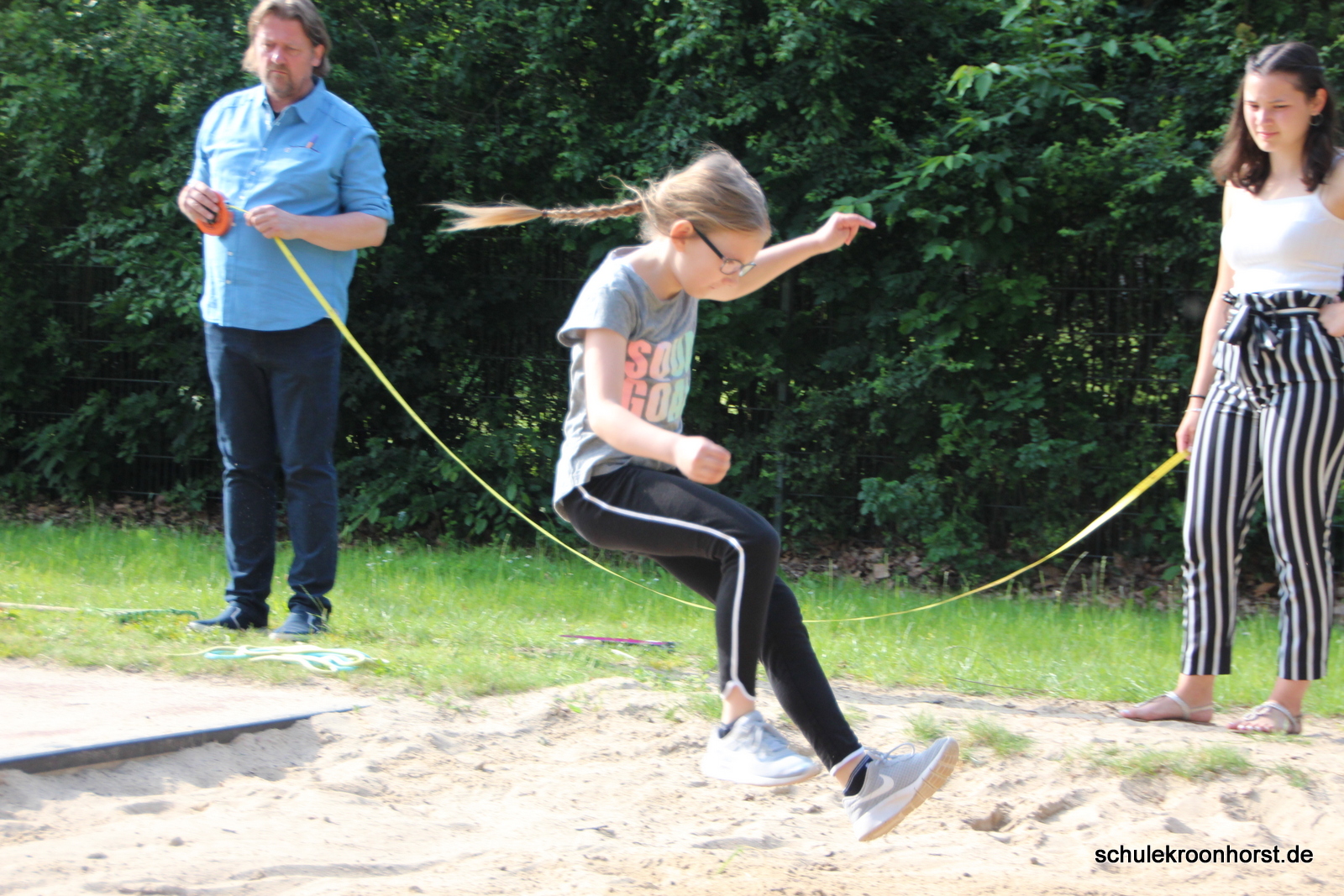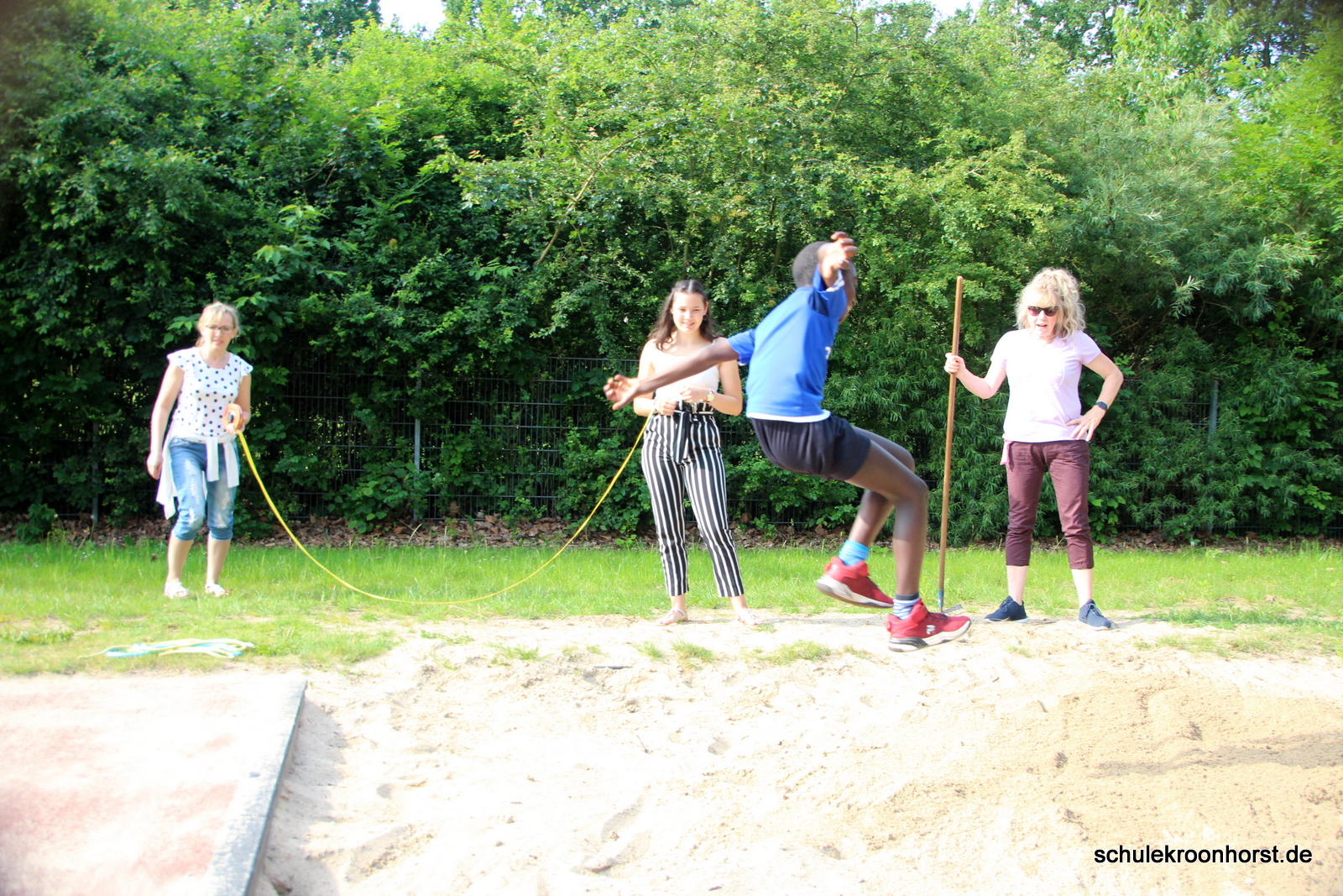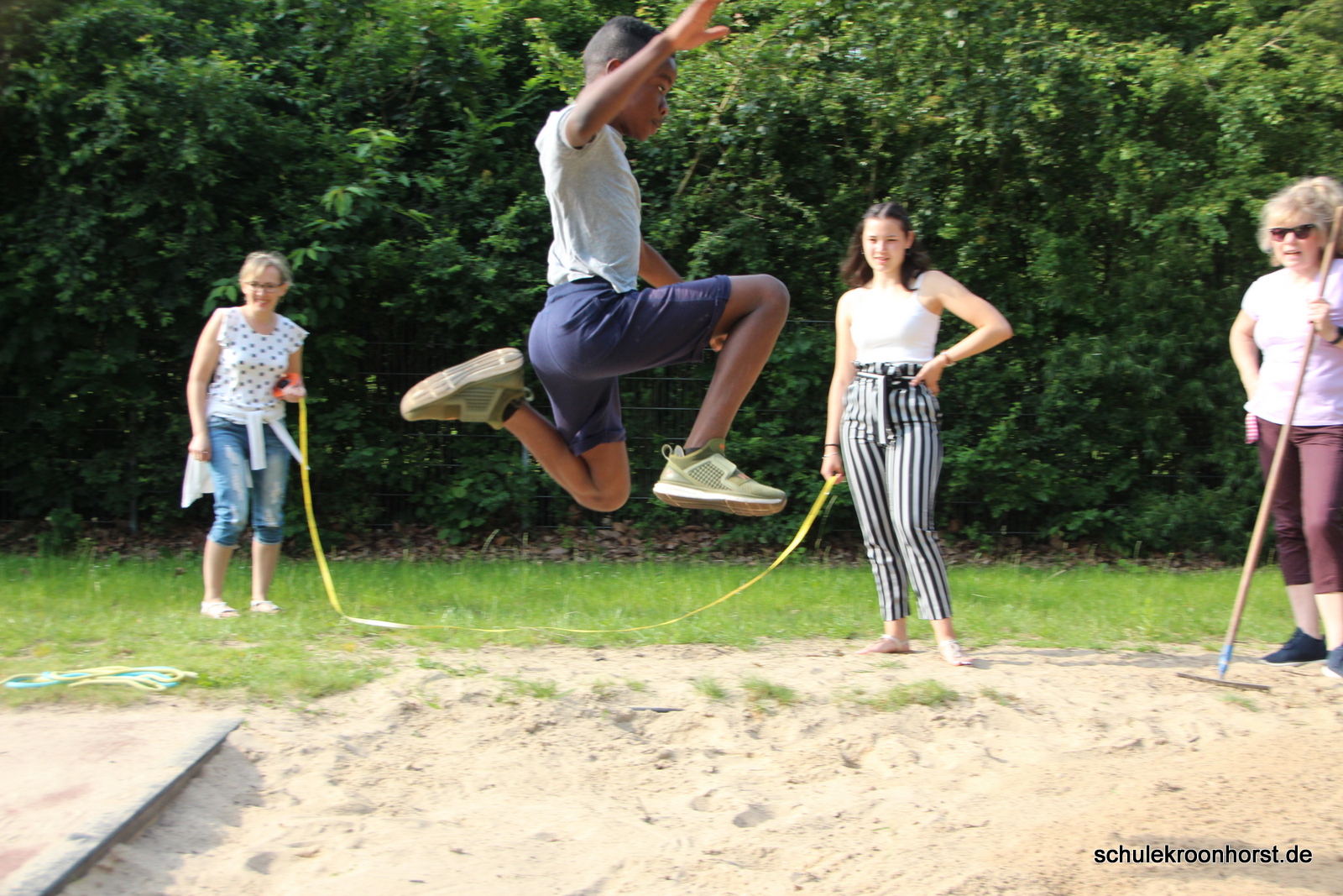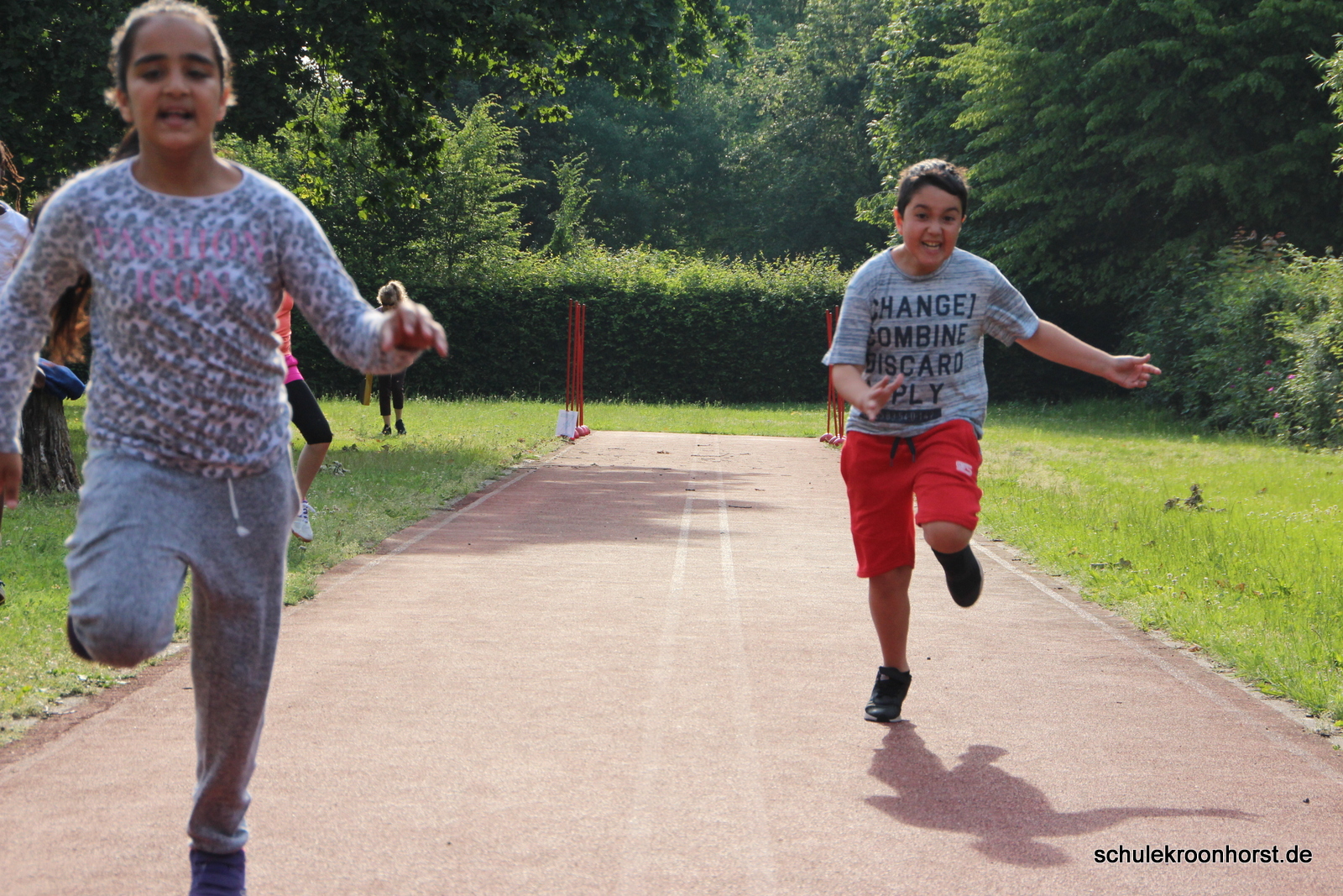 Das gab es noch nie am Kroonhorst. Mit viel Musik und spannender Moderation und Anfeuerung durch Frau Held und Frau Puls wurden die diesjährigen Bundesjugendspiele zu einem Sport- und Spaßfest.