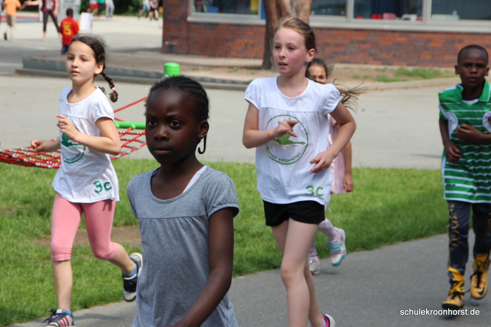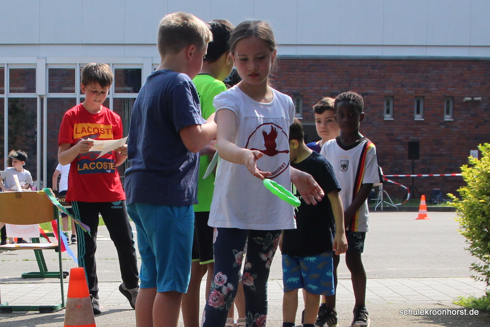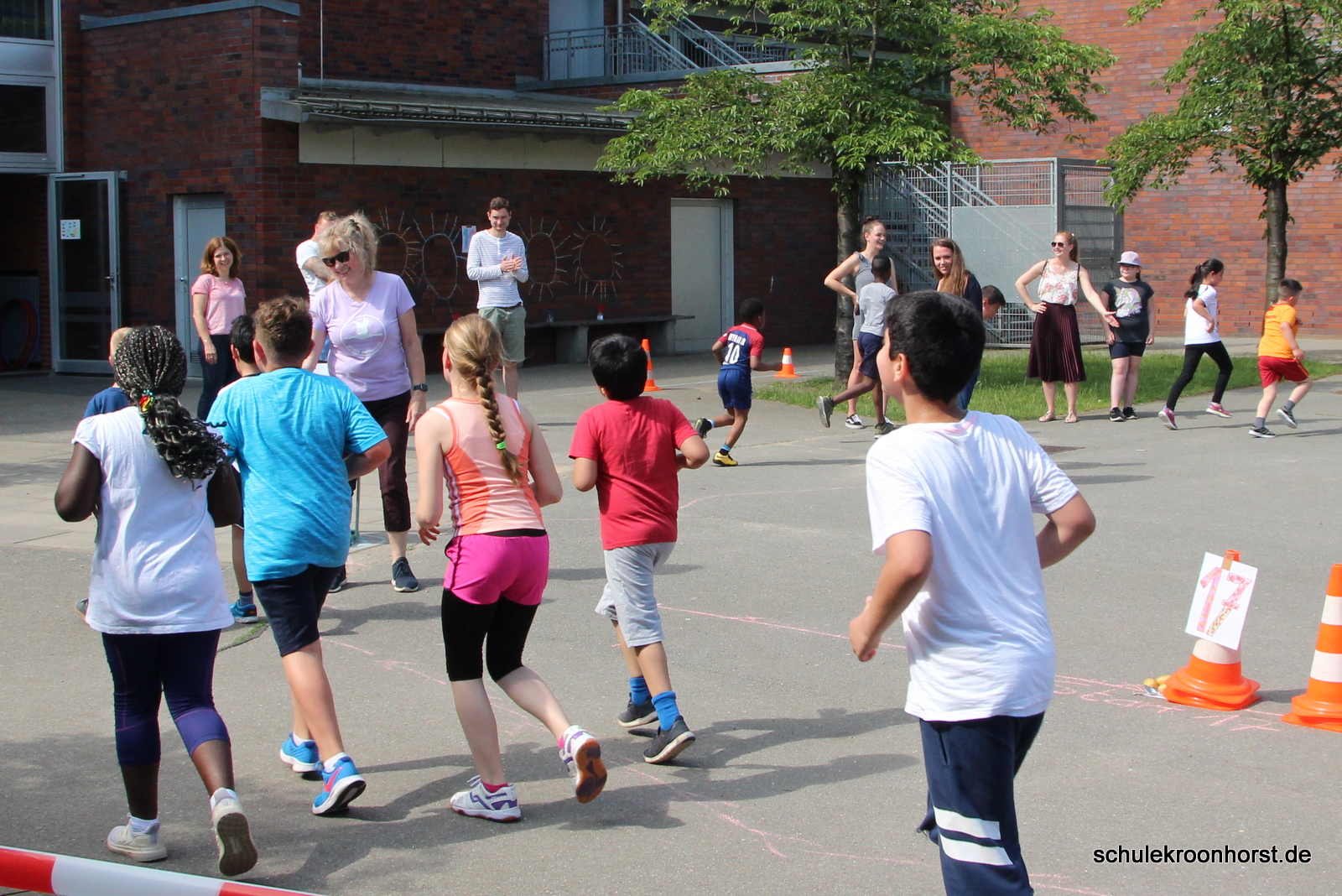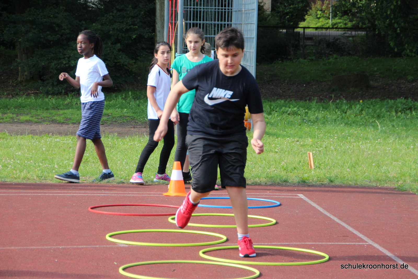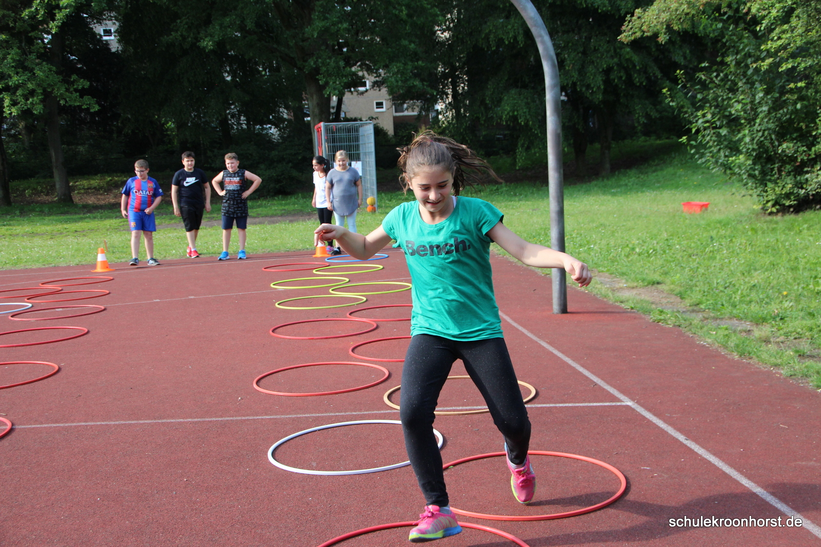 Das gab es noch nie am Kroonhorst. Mit viel Musik und spannender Moderation und Anfeuerung durch Frau Held und Frau Puls wurden die diesjährigen Bundesjugendspiele zu einem Sport- und Spaßfest.