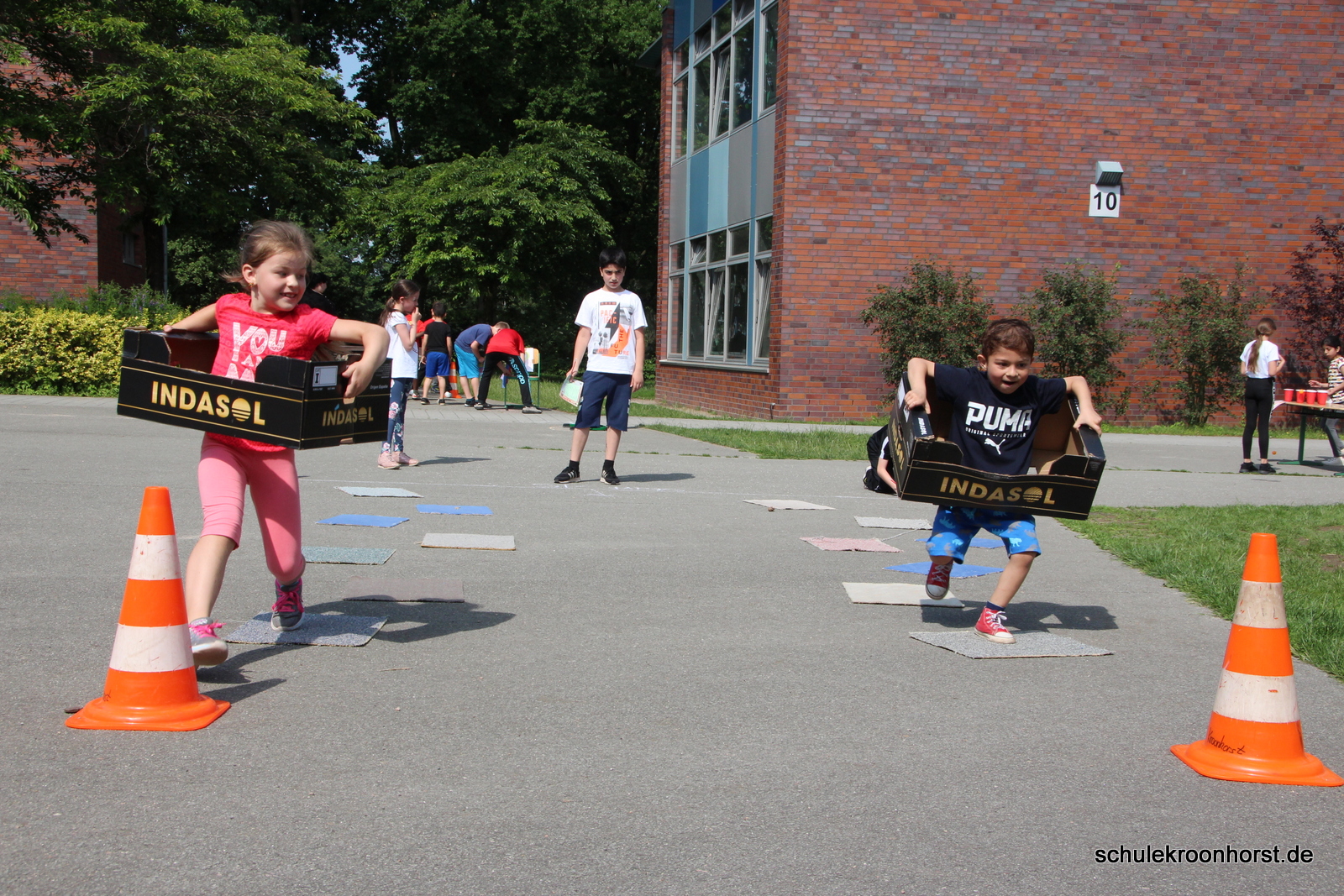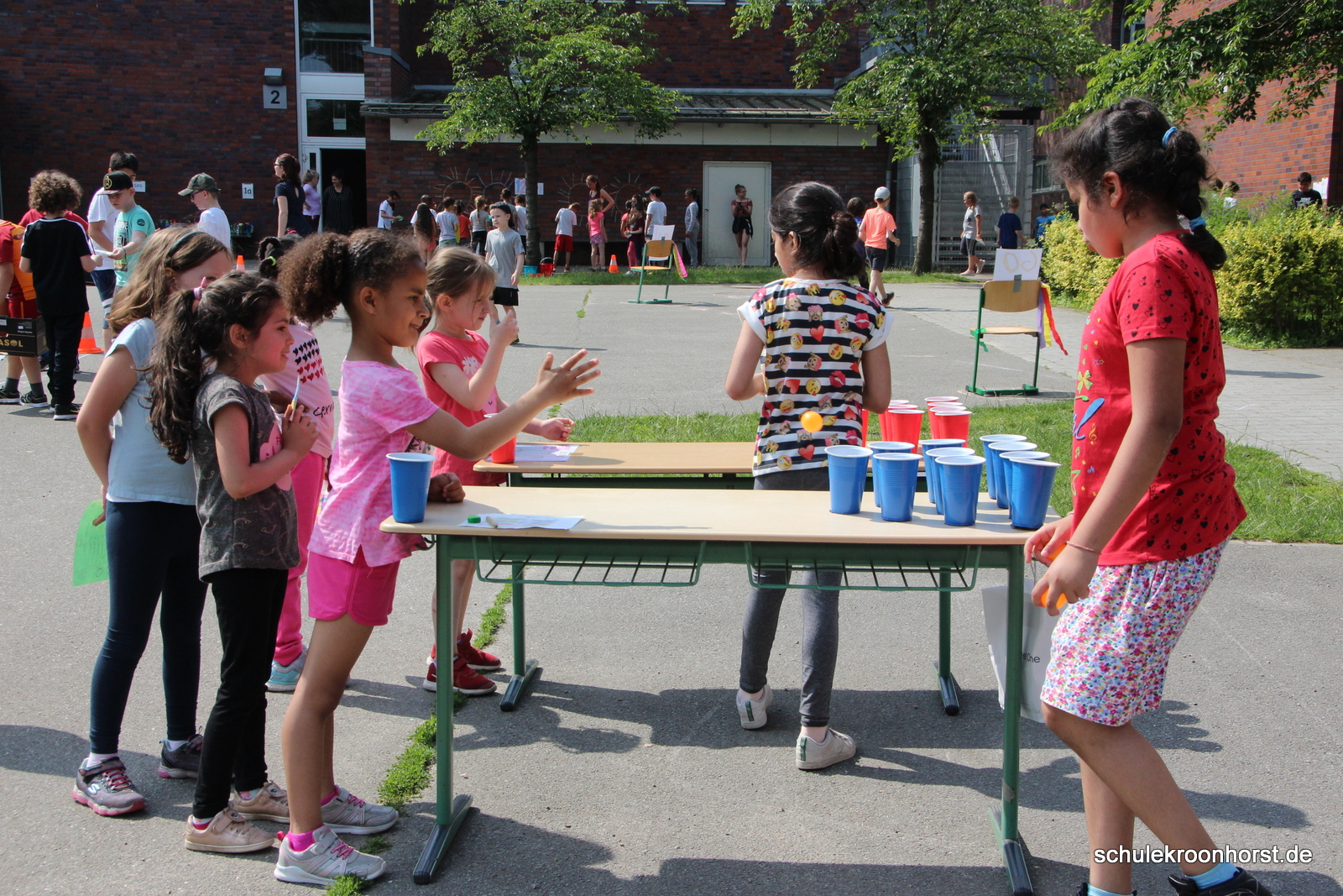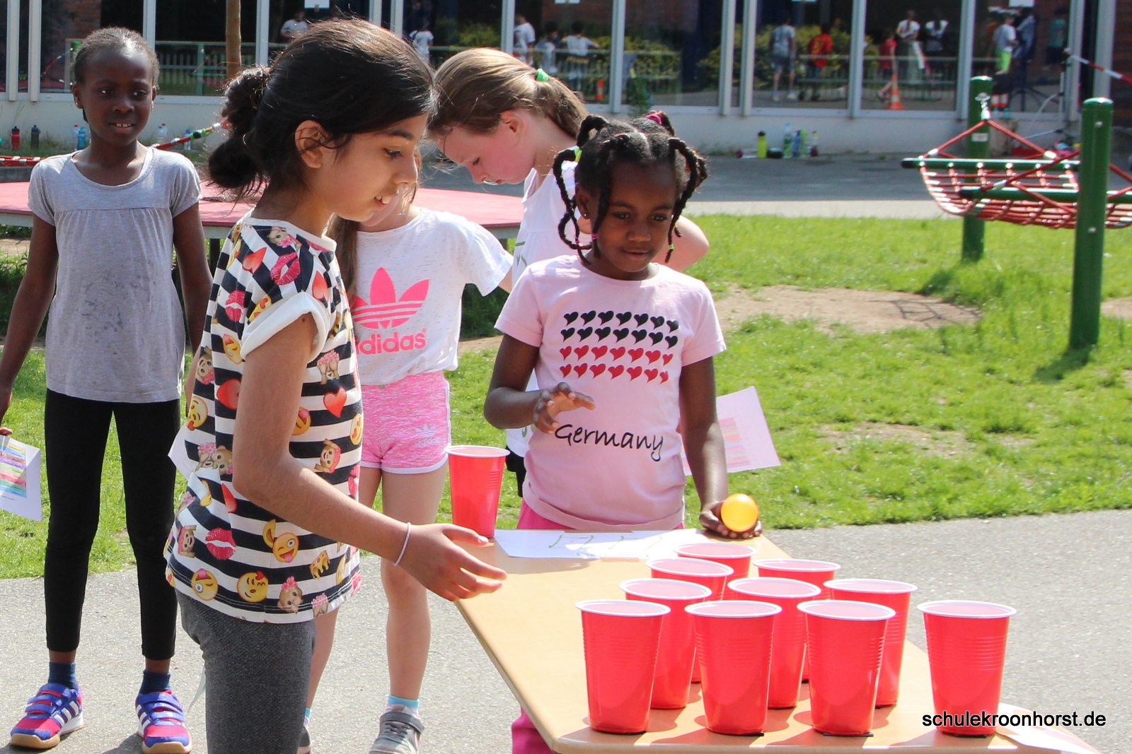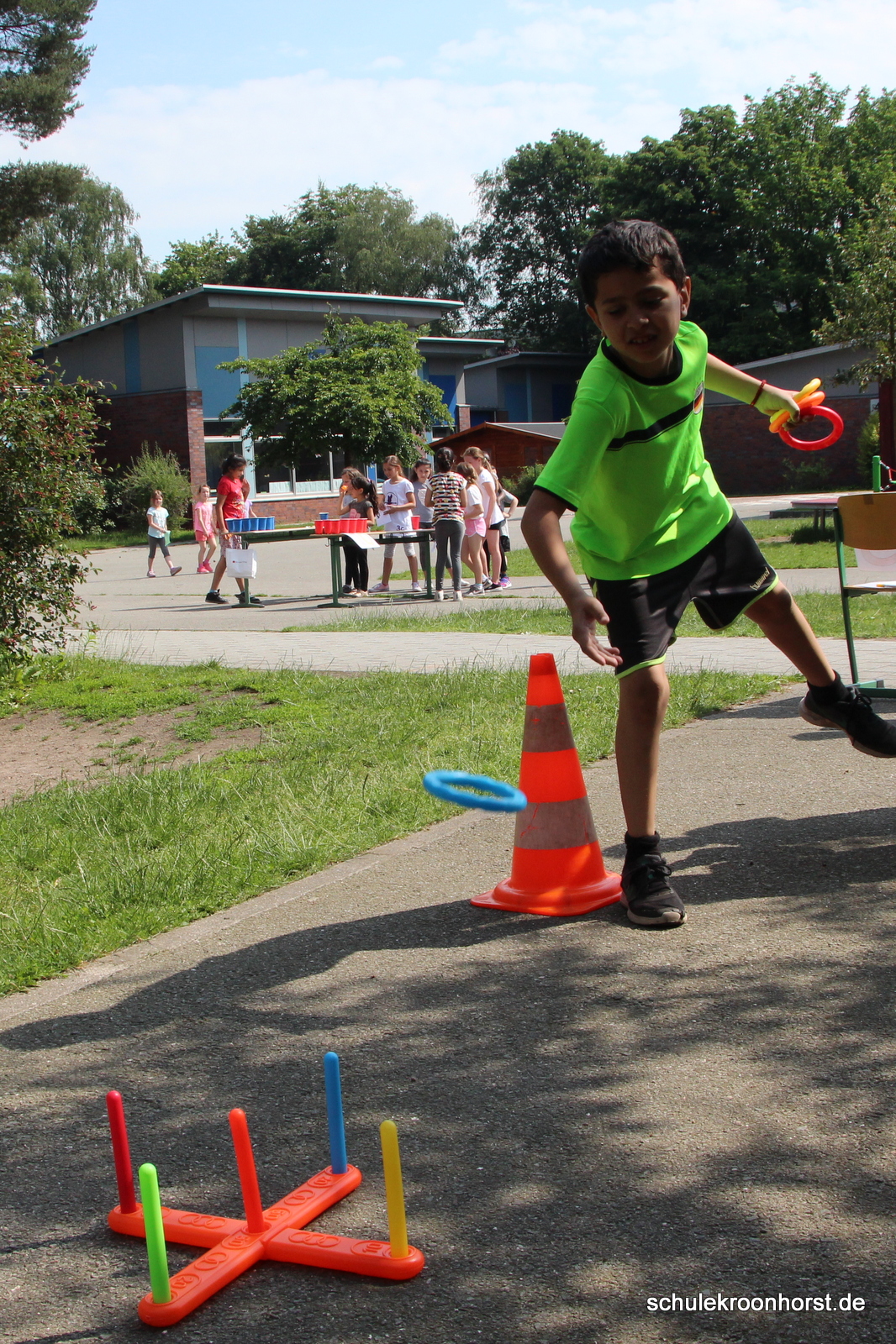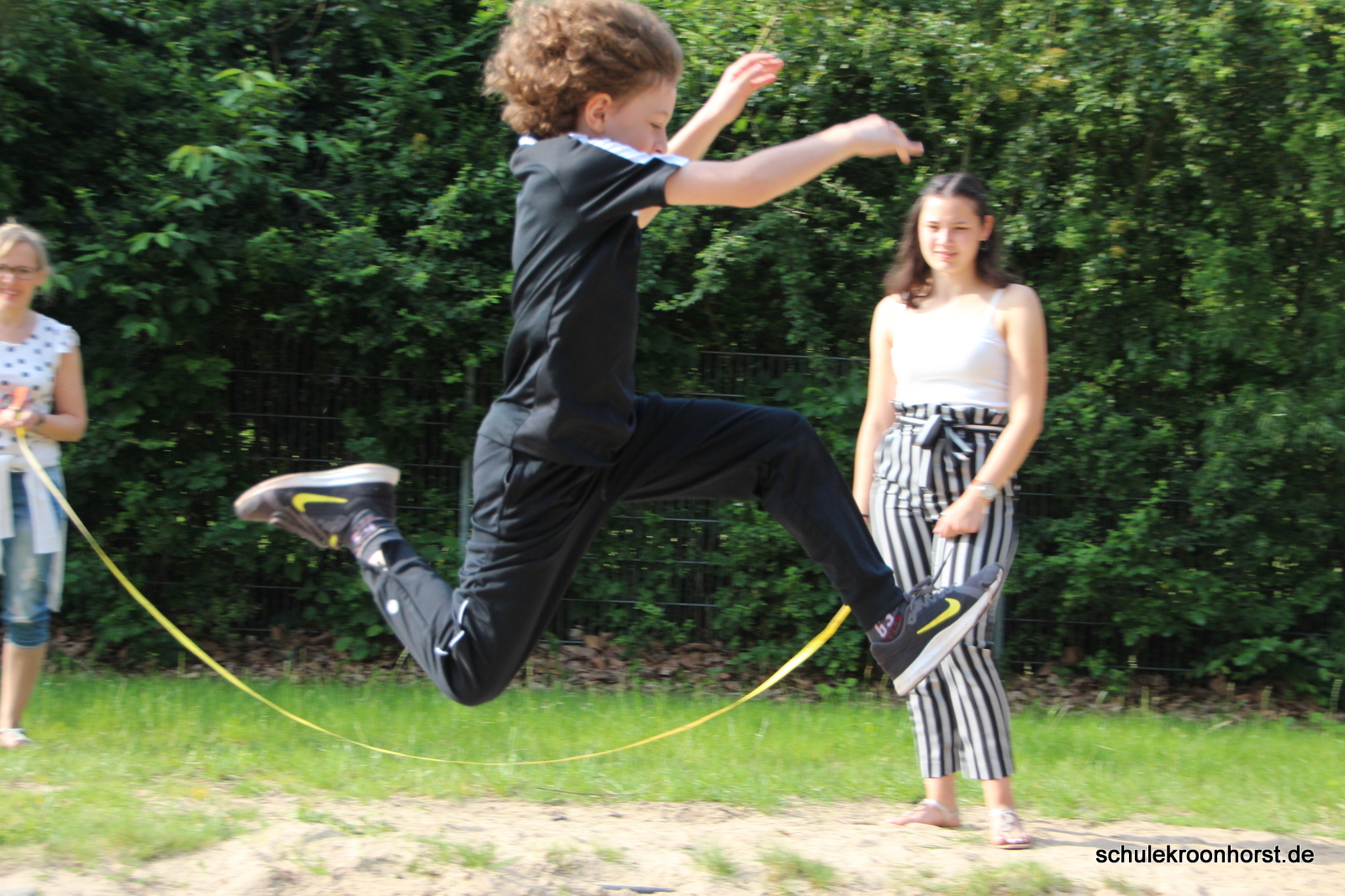 Das gab es noch nie am Kroonhorst. Mit viel Musik und spannender Moderation und Anfeuerung durch Frau Held und Frau Puls wurden die diesjährigen Bundesjugendspiele zu einem Sport- und Spaßfest.