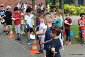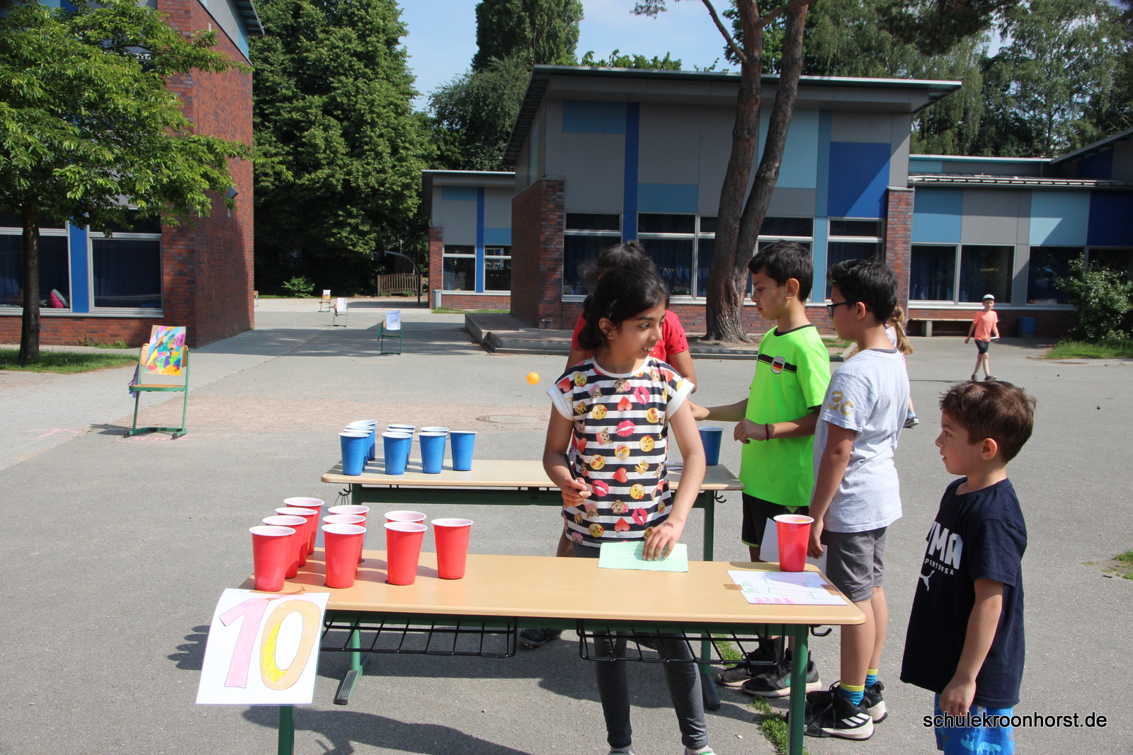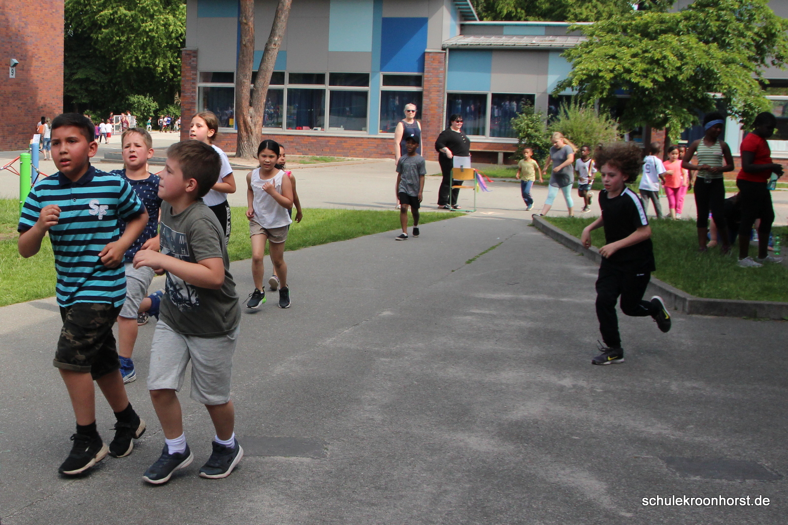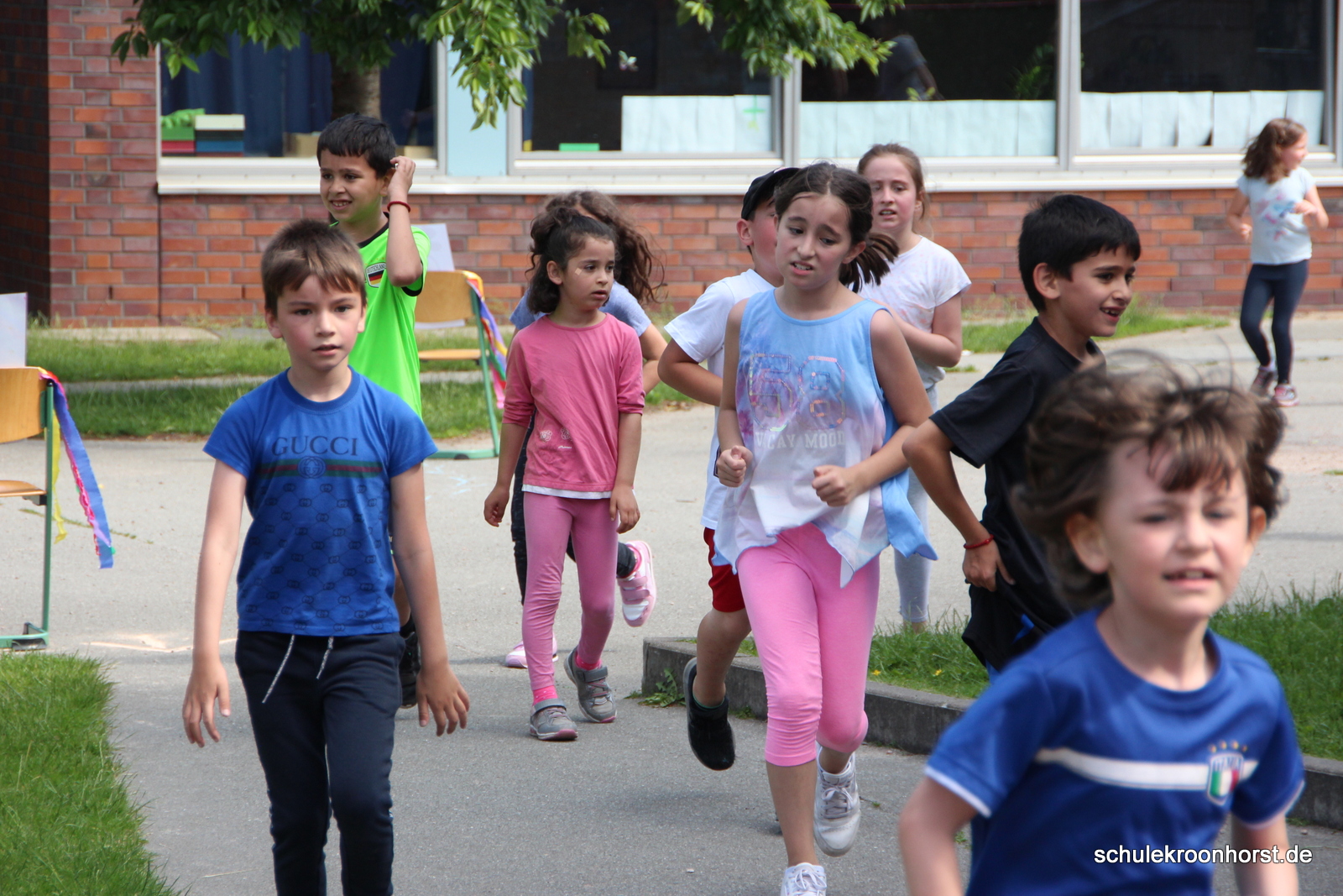Der Höhepunkt des Tages war der gemensame Ausdauerlauf aller Schülerinnen und Schüler unserer Schule. Dabei war das Ziel: Jedes Kind läuft zahlenmäßig so viele Minuten wie es an Jahren alt ist! Anschließend konnten alle an vielen tollen Sportstationen ihr Können unter Beweis stellen. Und die Viertklässler standen dabei Pate. Toll habt ihr das gemacht.