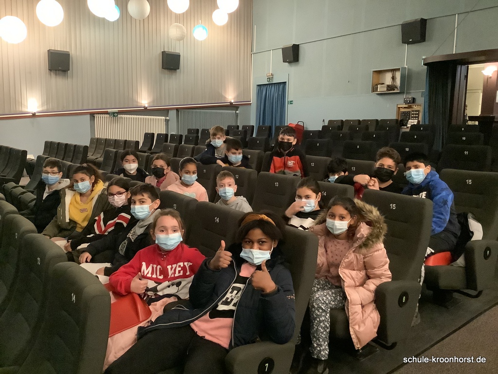 Nach einer gefühlten Ewigkeit und voller Vorfreude durften sich unsere Schülerinnen und Schüler aus der Vierten Klasse auf einen gemeinsamen Ausflug freuen. Begleitet von Frau Hartmann, Herrn Voß und Herrn Röseler trotzten die 4a, 4b und 4c den Witterungsbedingungen eines typischen Tages im November und machten sich zusammen auf den Weg. Zielort war das ebenfalls in Osdorf gelegene Elbe- Filmtheater. Dort wurde uns im Rahmen der Hamburger Schulkinowoche eine Vorstellung des Films „Meine wunderbar seltsame Woche mit Tess“ geboten. Das Kino war an diesem Vormittag ausschließlich für die Kroonhorster geöffnet, so dass wir freie Platzwahl im großen Saal genießen durften. Der preisgekrönte holländische Film wurde mit großen Augen und viel Interesse verfolgt, denn die Themen Verliebtsein und Freundschaft nehmen im Leben unserer ältesten Schülerinnen und Schüler einen immer wichtiger werdenden Platz ein. Umso schöner zu erleben, dass die Geschichte um die jungen Protagonisten Sam und Tess bei vielen unserer Viertklässler den richtigen Nerv getroffen hat. Bei der abschließenden Reflektionsrunde zeigten fast alle Kroonhorster Daumen nach oben. Endlich wieder unterwegs, gemeinsam und mit vielen anregenden Gedanken blicken wir sehr zufrieden auf den langersehnten Ausflug zurück.