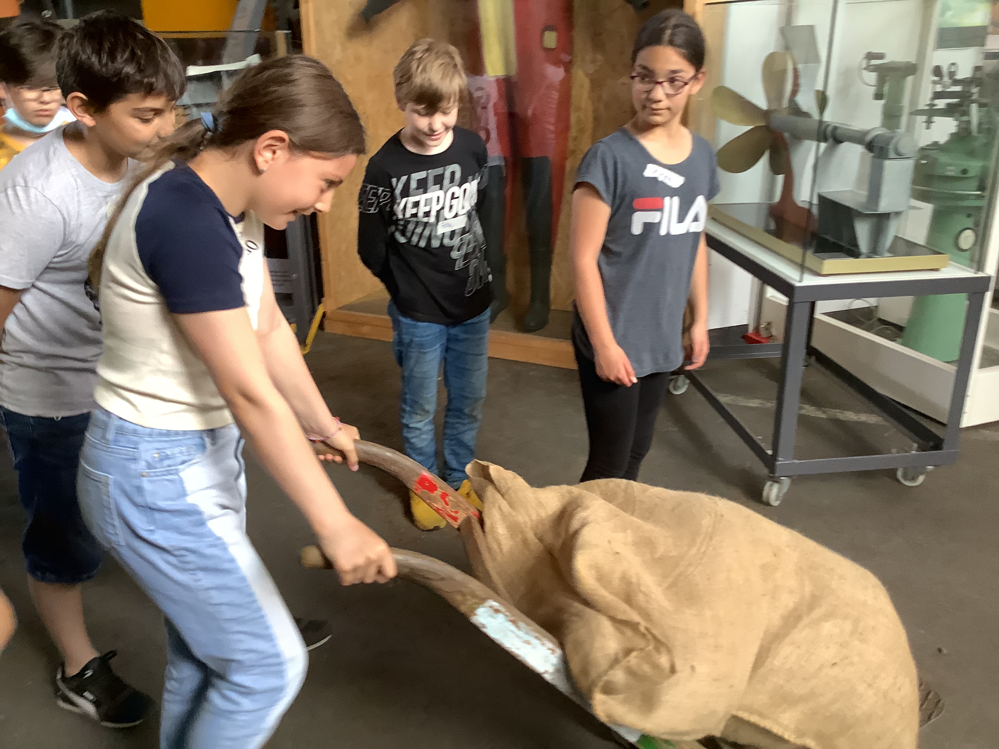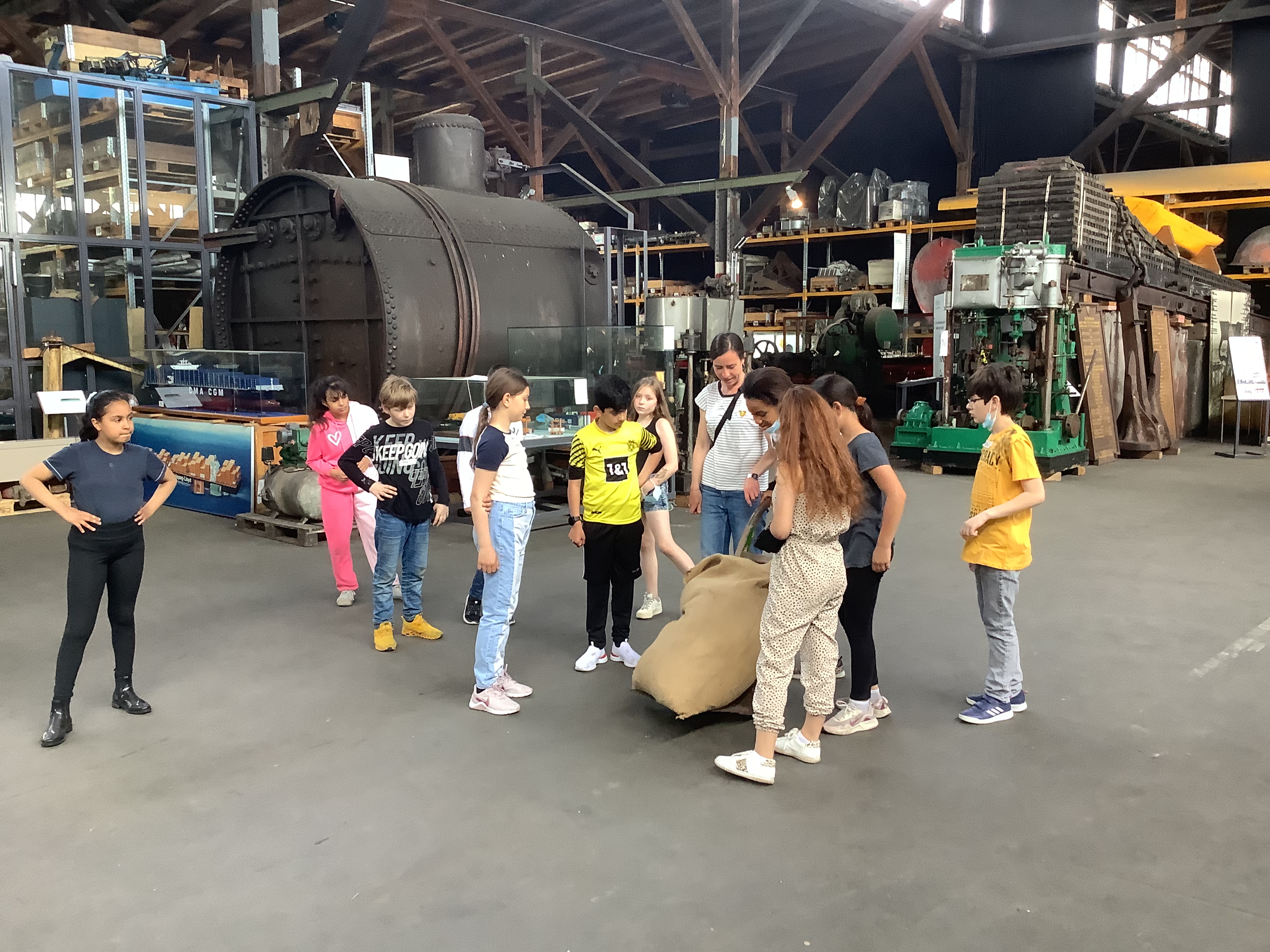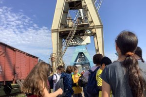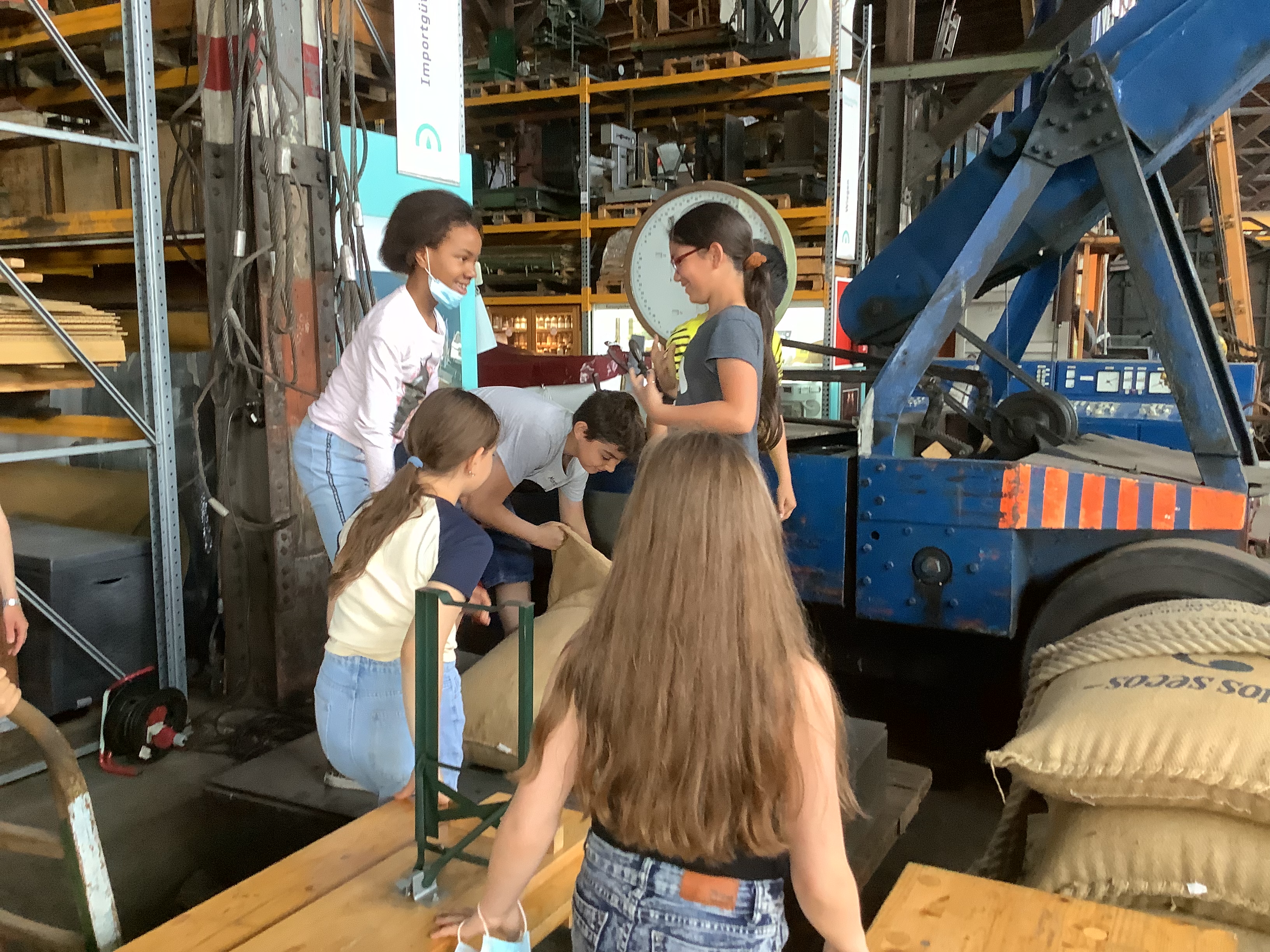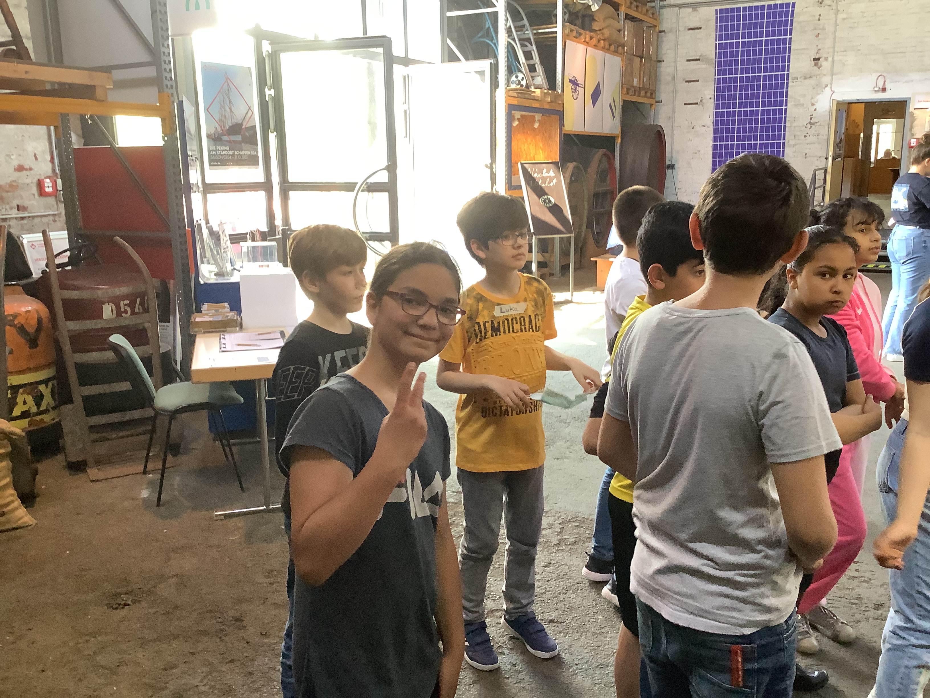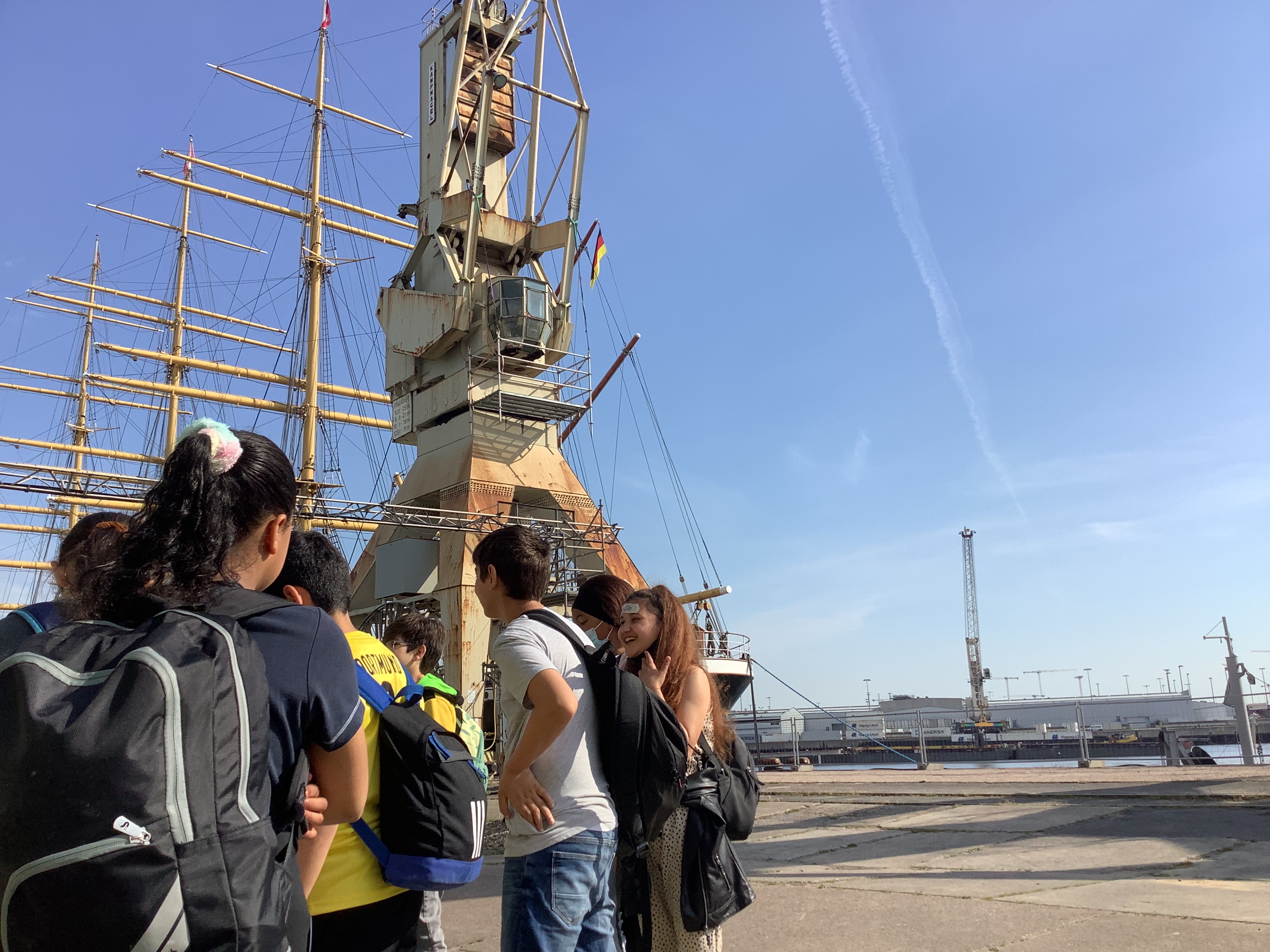 „Wir, die 4c und 4b, sind heute zum Hamburger Hafen gefahren. Wir haben uns um 7:40 Uhr am Schultor getroffen. Als Nächstes sind wir zu der Bushaltestelle am Born Center gegangen und haben mit der 4b auf den Bus gewartet. Dann hat uns ein Bus abgeholt und wir sind zum Hafenmuseum gefahren. Dort haben wir in drei Gruppen mehrere Stationen besucht. Wir haben uns ein Segelboot namens Peking angeguckt und darüber gesprochen. Dann sind wir in eine alte Lagerhalle gegangen. Wir haben Modelle von Schiffen gesehen, einen Sack angeschaut, der mit Kakao gefüllt war und haben ihn abwechselnd geschoben, um ihn in wiegen zu können. Er hat 53 Kilogramm gewogen.
