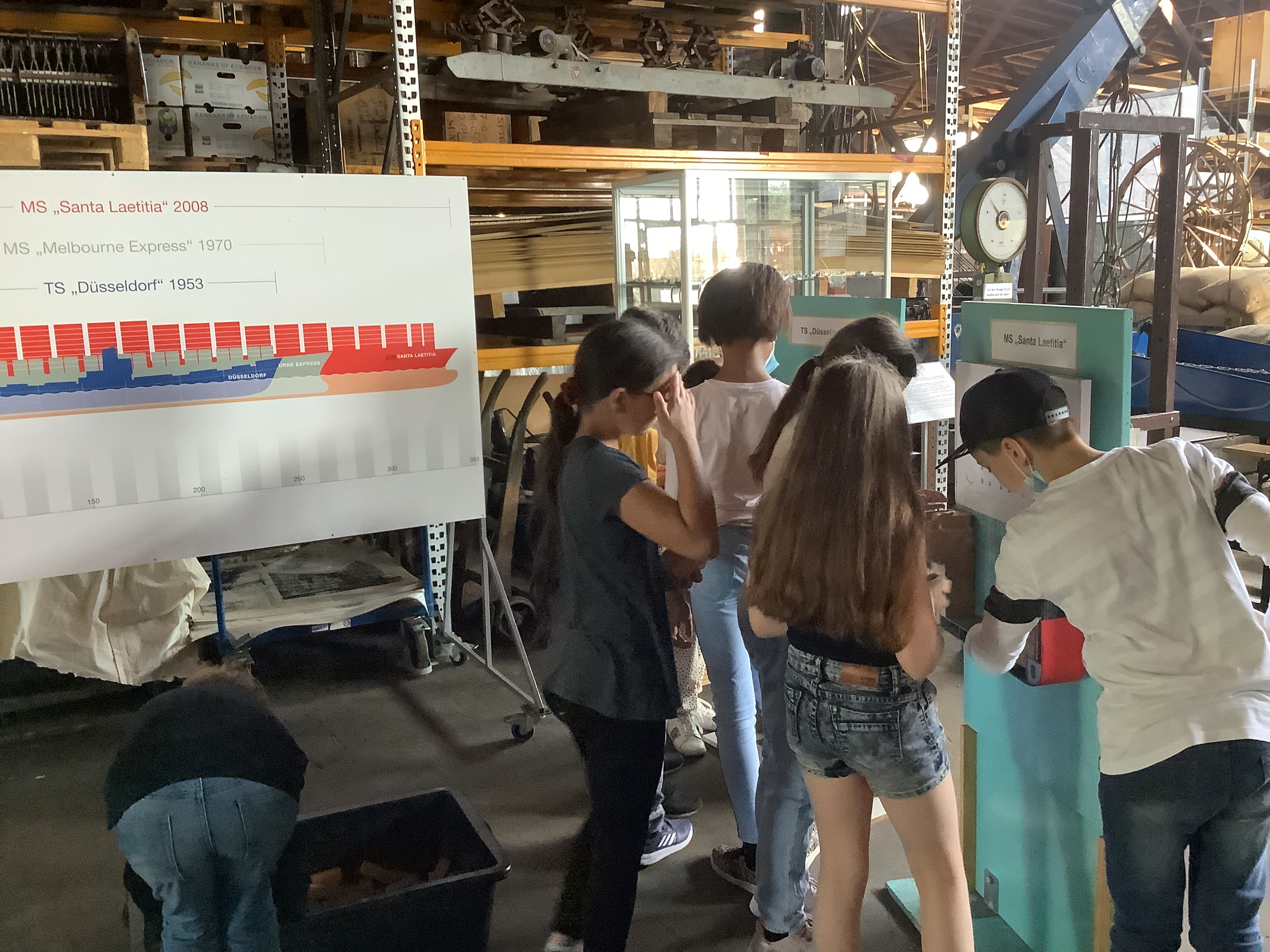 Wir sind zu Modellen von Schiffen gegangen und mussten sie mit kleinen Blöcken sicher beladen, damit sie so losfahren könnten, wie wenn sie echt wären.