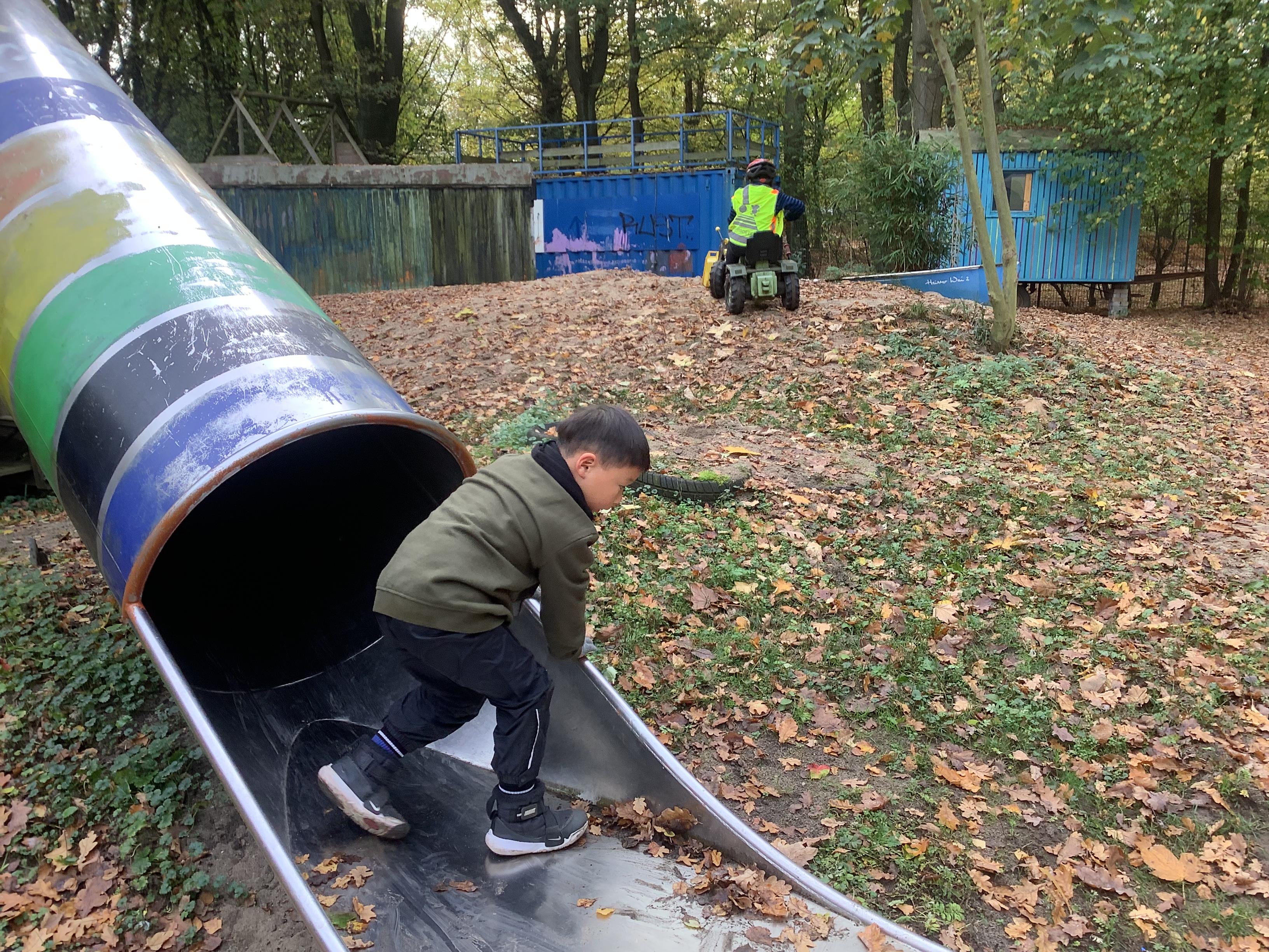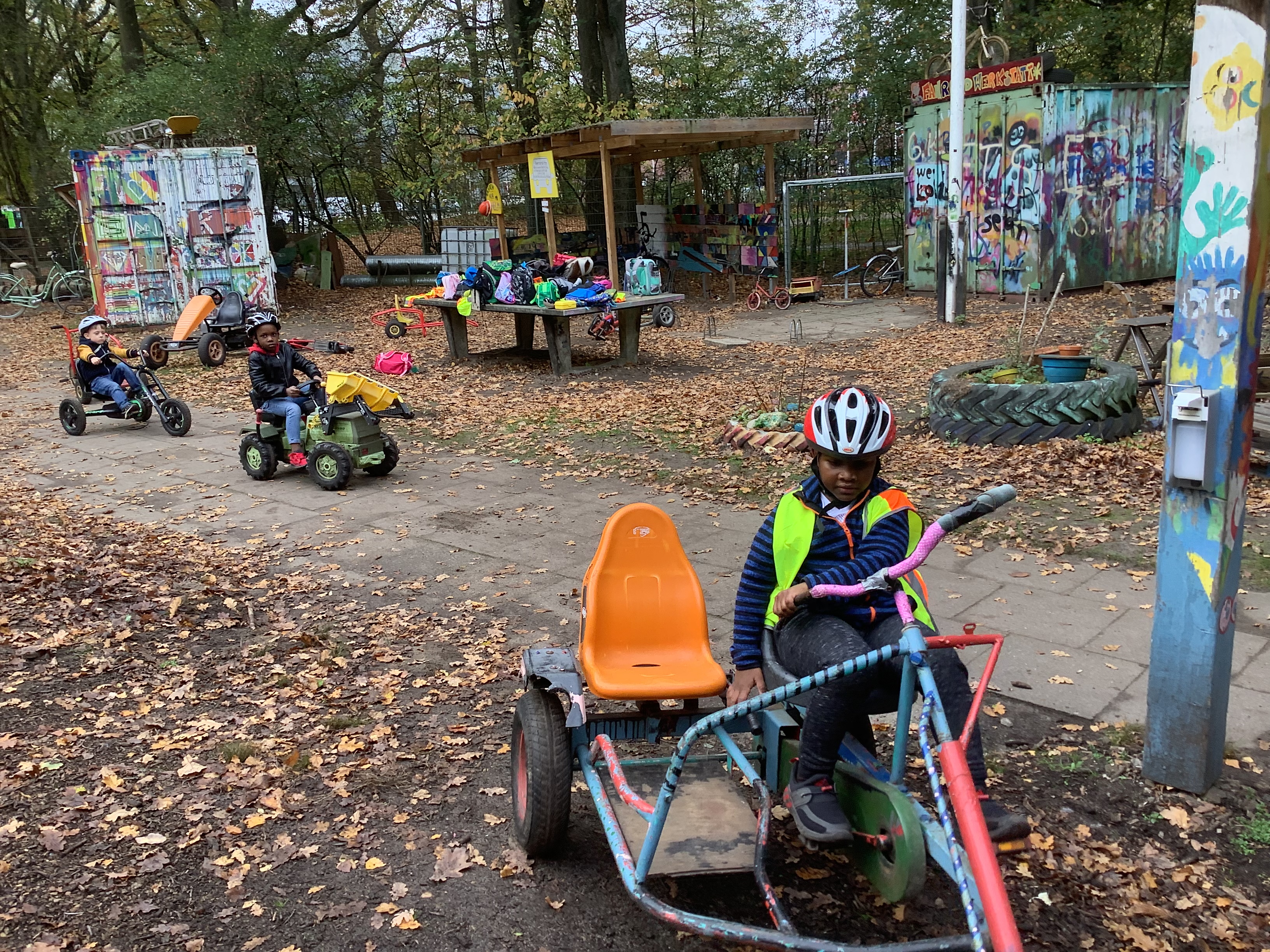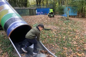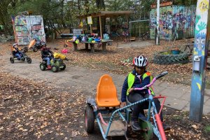 Bereits vor den Herbstferien waren wir bei einer Aktion des Klick Kinder Museum im Stadtteil unterwegs. Nun machte sich die 1a zusammen mit Frau Danner und Herrn Röseler auf den Weg zum Elbe Aktiv Spielplatz, einem in den 1970er- Jahren geschaffenen Bauspielplatz in Alt- Osdorf.