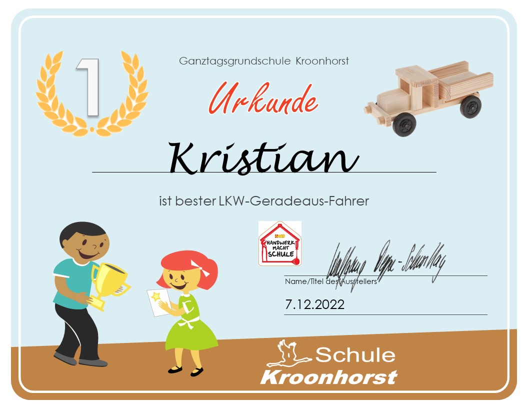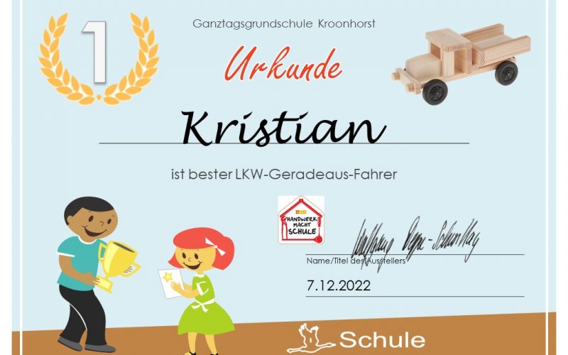 Am 7. Dezember 2022 haben 9 Schüler ihre selbst gebauten Lastwagen für ein besonderes Rennen an den Start geschickt. Die Schüler haben einen Werkvorschlag der Firma Opitec umgesetzt und dabei gelernt, wie man mit Zollstock, Säge und Raspel sachgerecht umgeht. Das Ergebnis kann sich sehen lassen, denn die Lastwagen sind gut gelungen.