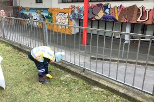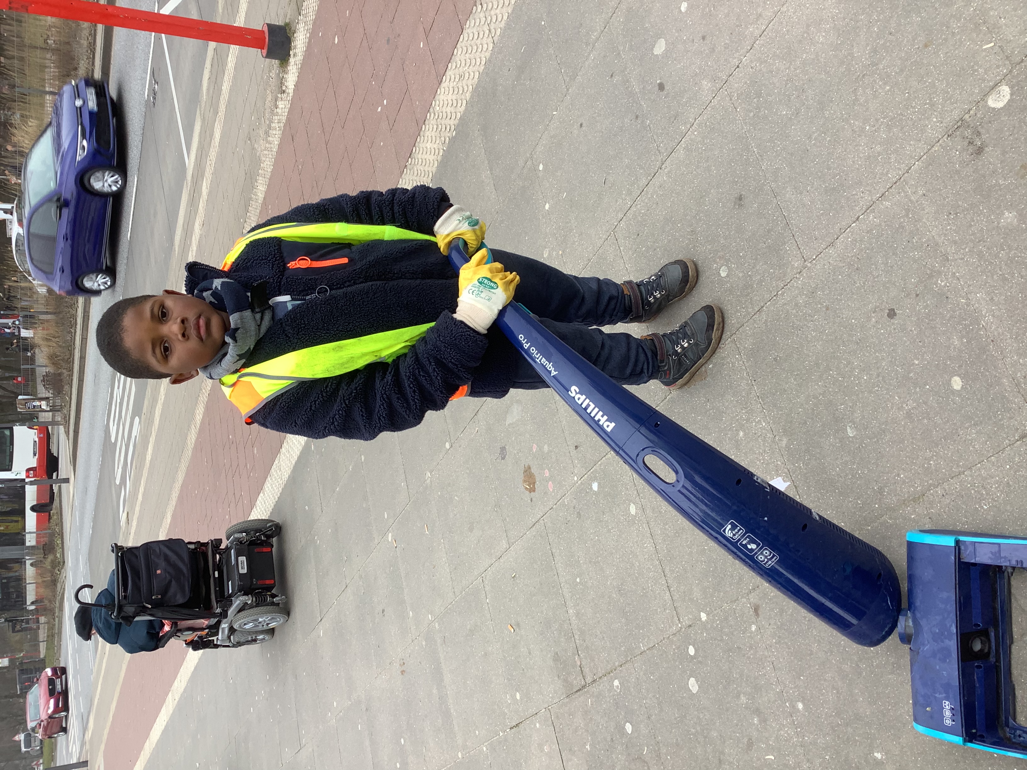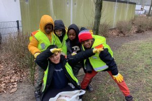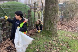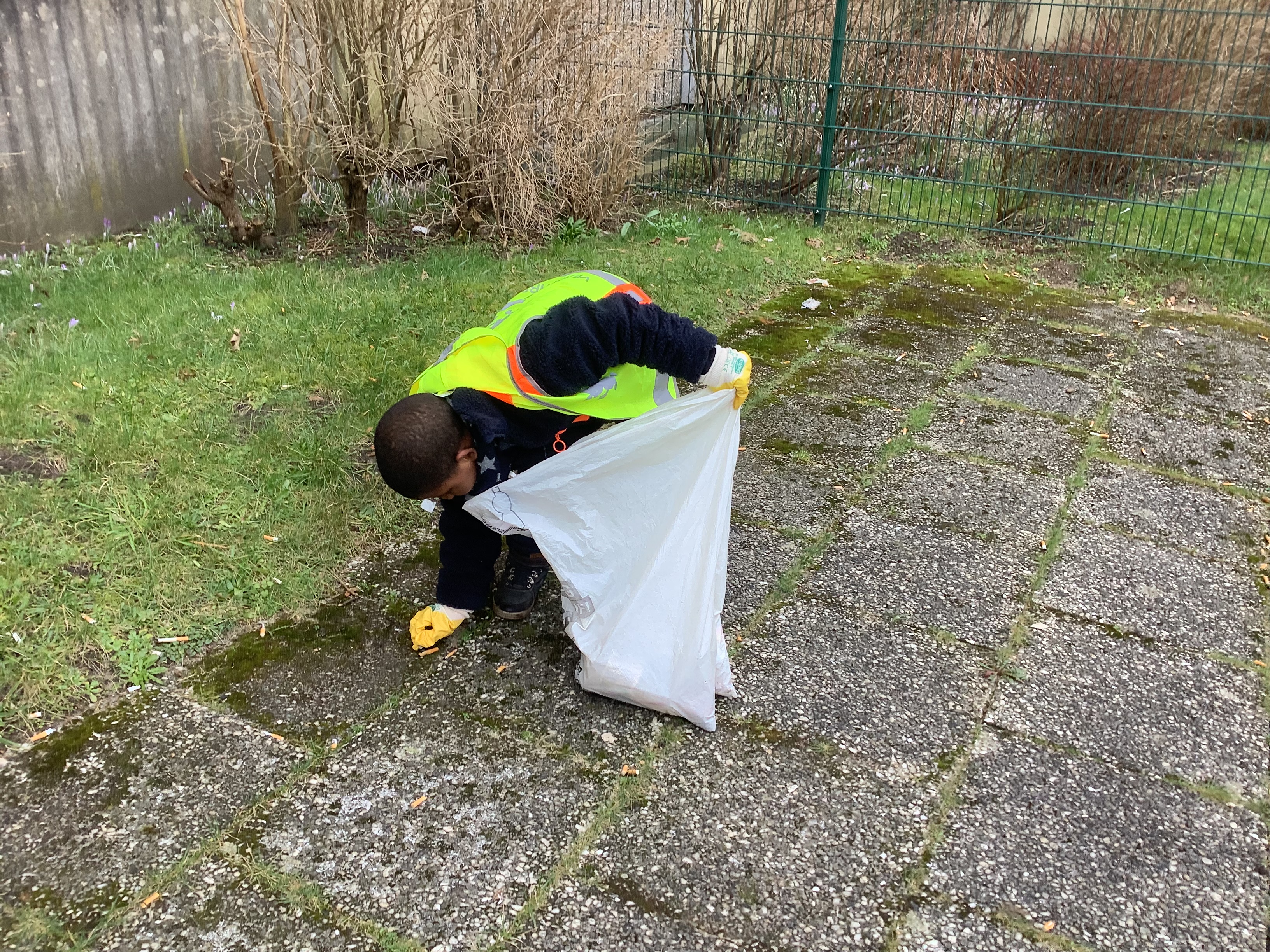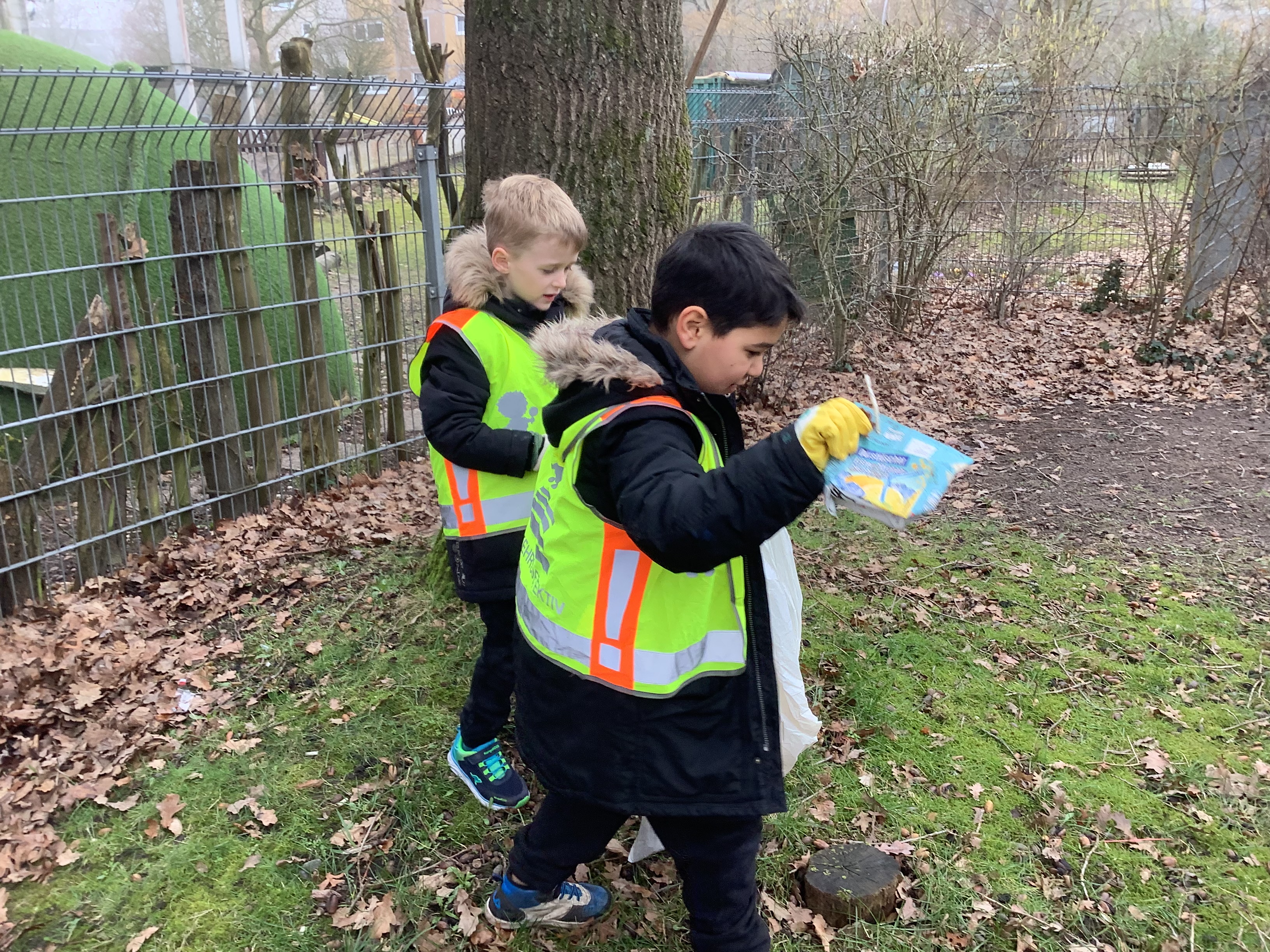 Schon morgens nach dem Frühstück starteten wir die ersten Aufräumarbeiten auf dem so genannten Außengelände, dem Spielplatz, der unmittelbar an unsere Schule angrenzt. Dort gab es erwartungsgemäß viel zu tun, so dass wir uns im Anschluss daran zunächst einmal im Klassenraum aufwärmten und für die zweite Tour stärkten. Als nächstes wählten wir einen Weg um das Borncenter vorbei am Kindermuseum bis zur Bushaltestelle am Achtern Born. Unterwegs trafen wir auf allerlei Fundstücke am Wegesrand, und fanden sogar einen alten Staubsauger. Die mitgeschleppten Müllsäcke wurden nun mehr immer weiter gefüllt. Zum Abschluss machten die fleißigen Helfer der 1a einen verdienten Halt auf dem Inlinerspielplatz, um von dort aus rechtzeitig zum Mittagessen wieder in die Schule zurückzukehren.