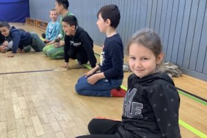 Hier stellte sich das Team auf Englisch vor - die Künstler stammten aus Israel und Südkorea - und die Schüler berichteten, was sie wahrgenommen hatten. Spinne, Qualle, Hund sowie Schmetterling waren nur einige der genannten Wesen, die auf das herrlich große Vorstellungsvermögen unserer Kinder schließen lassen.