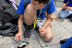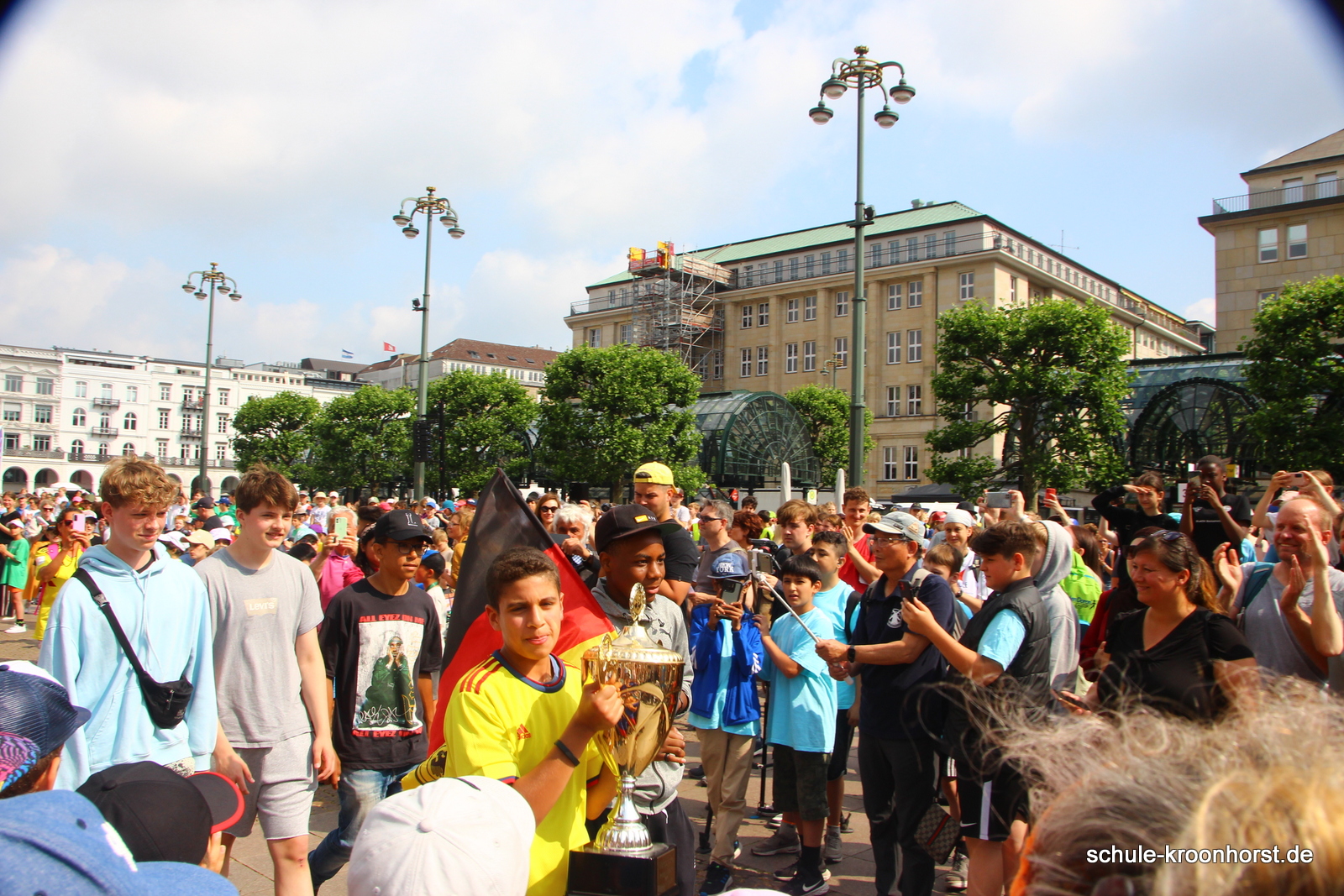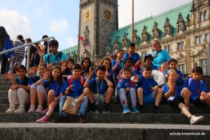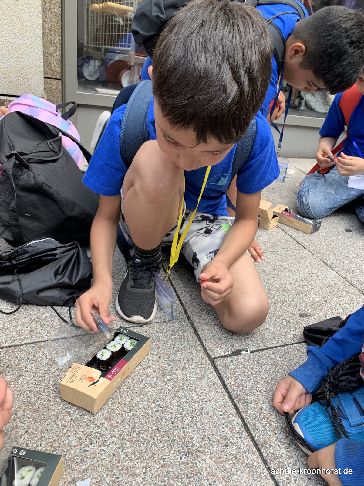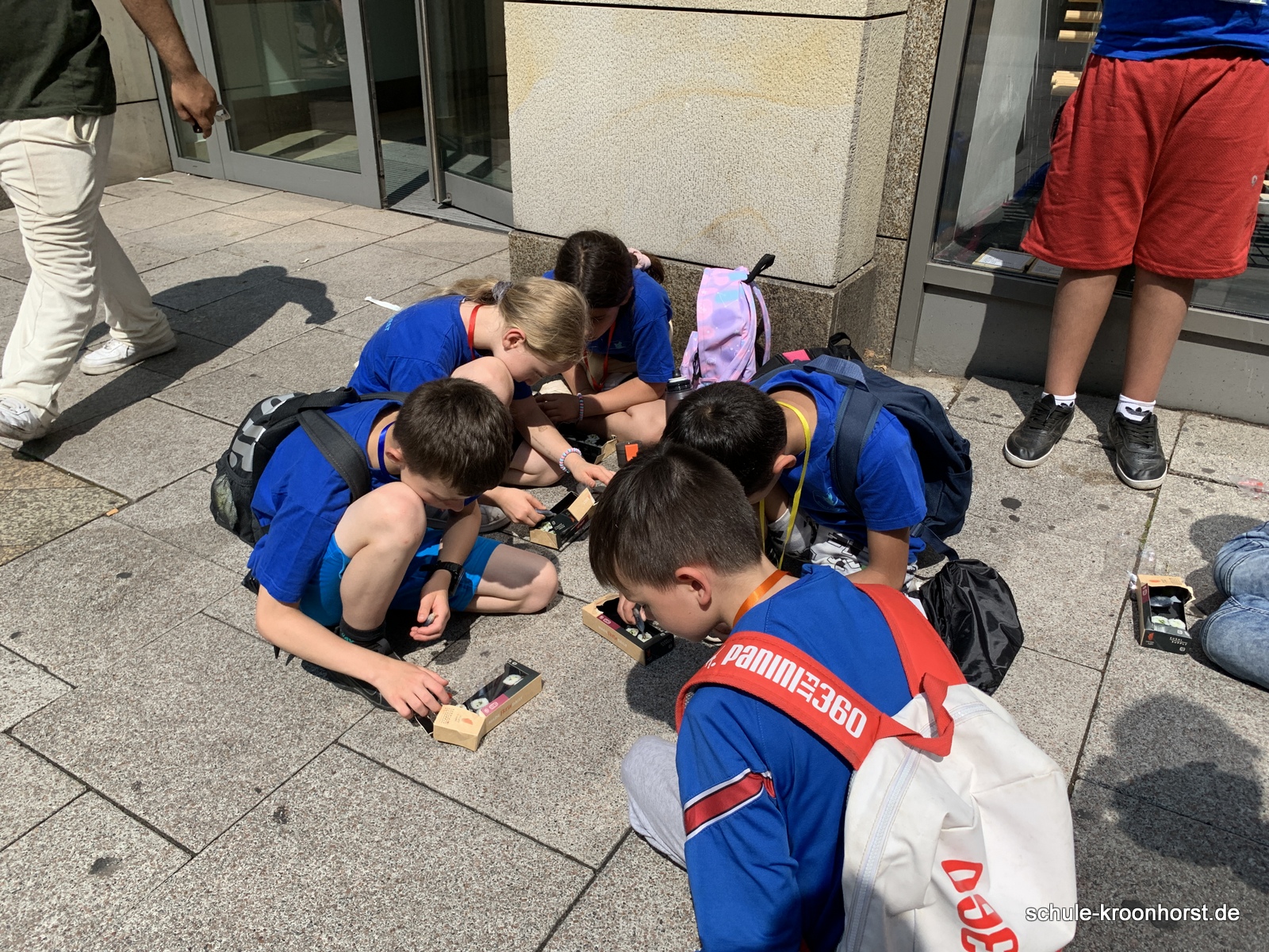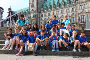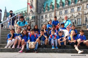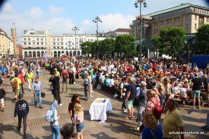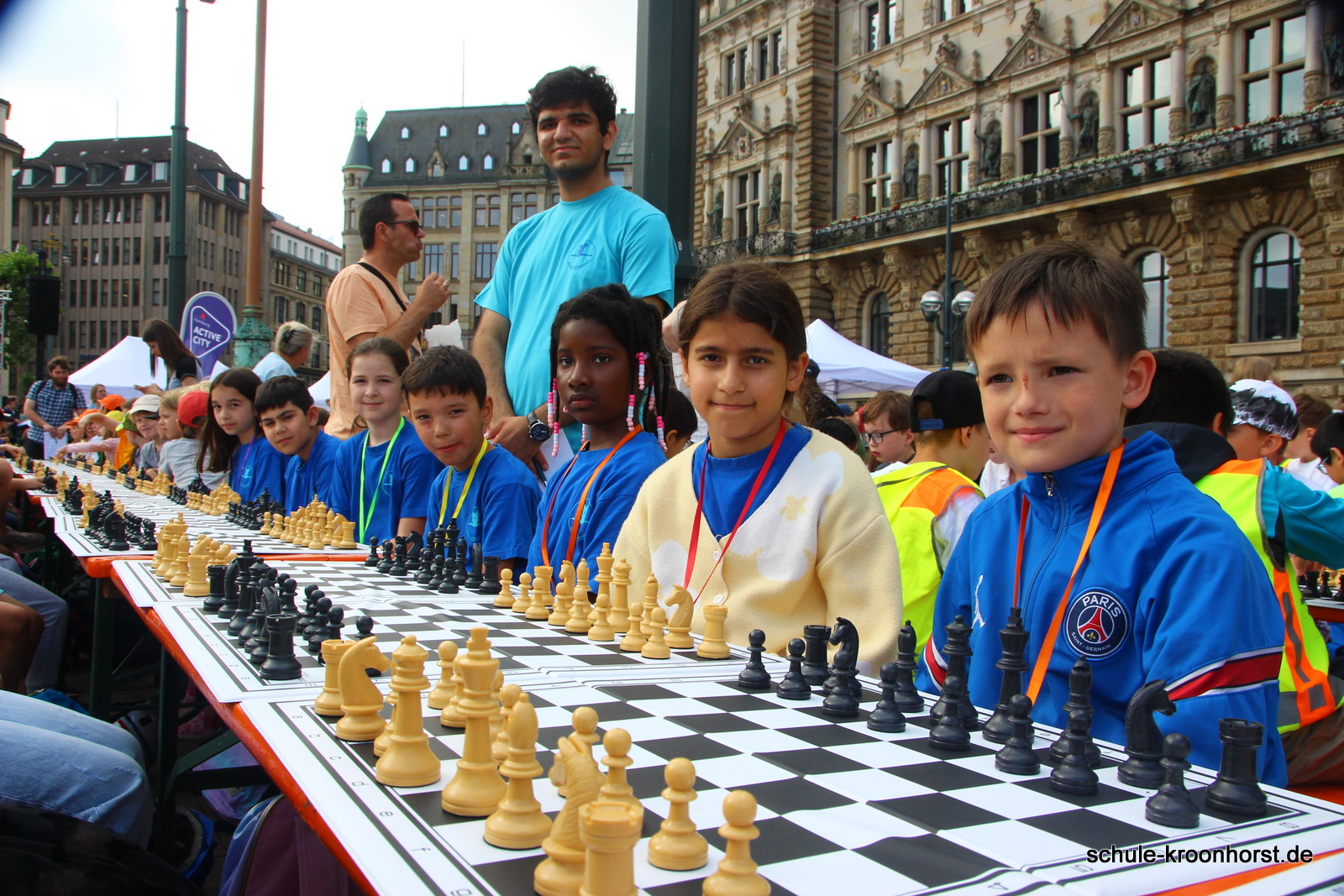 Rund 3.600 Schülerinnen und Schüler kämpften um Ruhm und Ehre. Schon seit 1968 findet jährlich das weltgrößte Schachturnier statt und diesmal mit dabei: Die Klasse 3c. An zwei Tischen mit je 8 Schachbrettern begannen die jungen Schachfreunde noch etwas unsicher, konnten aber die Nervosität im zweiten Match ablegen und am Ende ein achtbares Ergebnis erzielen. Das Schachspielen haben Sie bei ihrer Klassenlehrerin Frau Puls gelernt. Bei allem Ehrgeiz stand der Spaß natürlich im Vordergrund, aber mit einem Auge wurde auch immer auf die Statistik geschielt. Am Ende gewann zwar das linke Alsterufer - also die anderen. Aber das war nicht so wichtig, denn obendrauf gab's noch eine leckere Sushi-Box und ein Eis für jeden. Besser hätte der Tag nicht enden können.