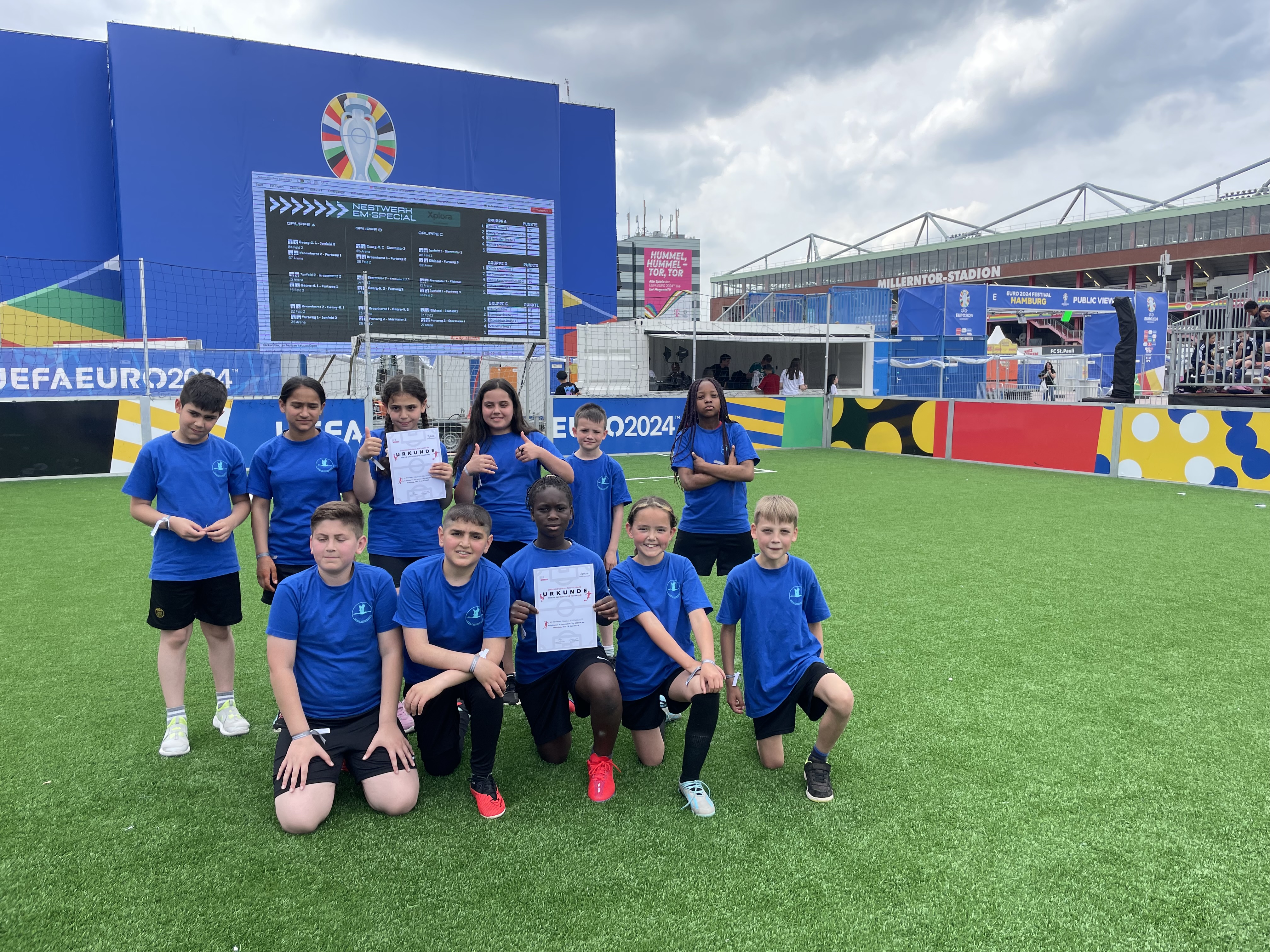 Nachdem in diesem Monat bereits unsere Klasse 3a an einem tollen Fußballturnier auf St. Pauli teilnahm, so war nun - an fast gleicher Stelle - jeweils ein Team der 4b und der 4c an der Reihe.